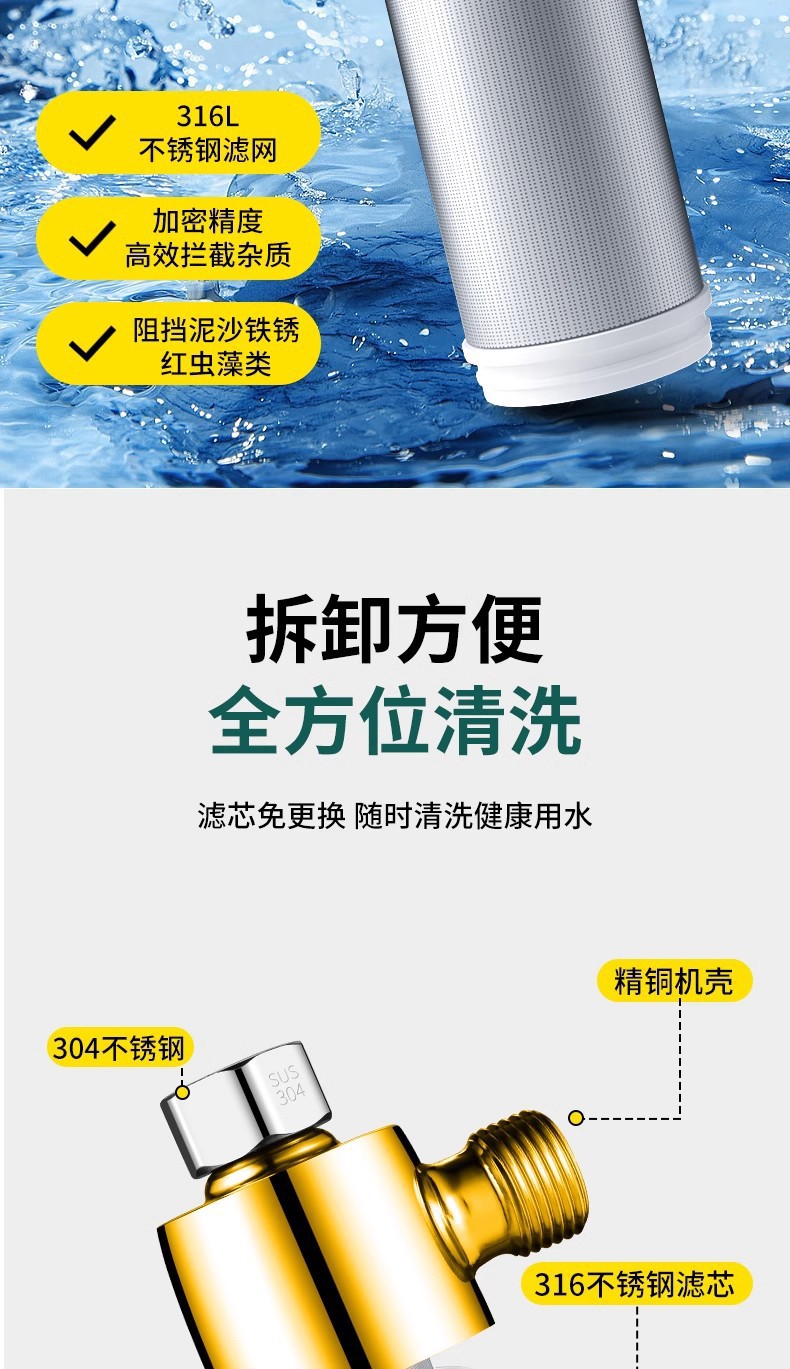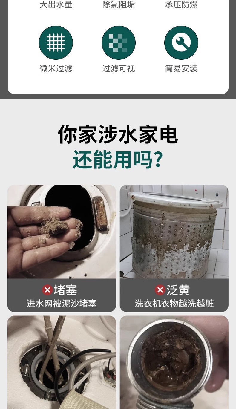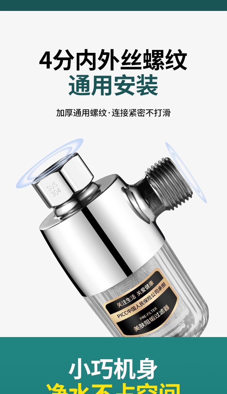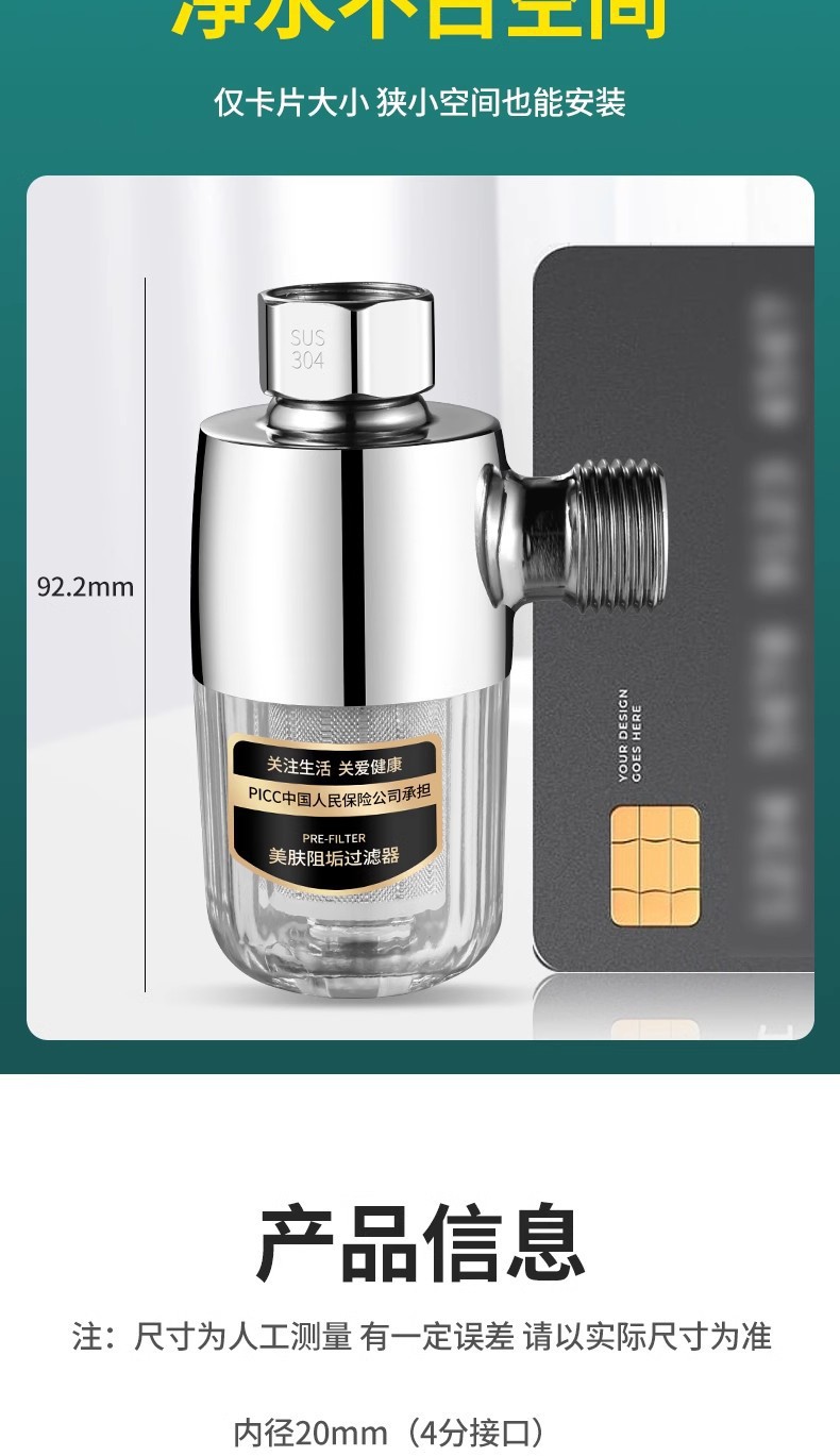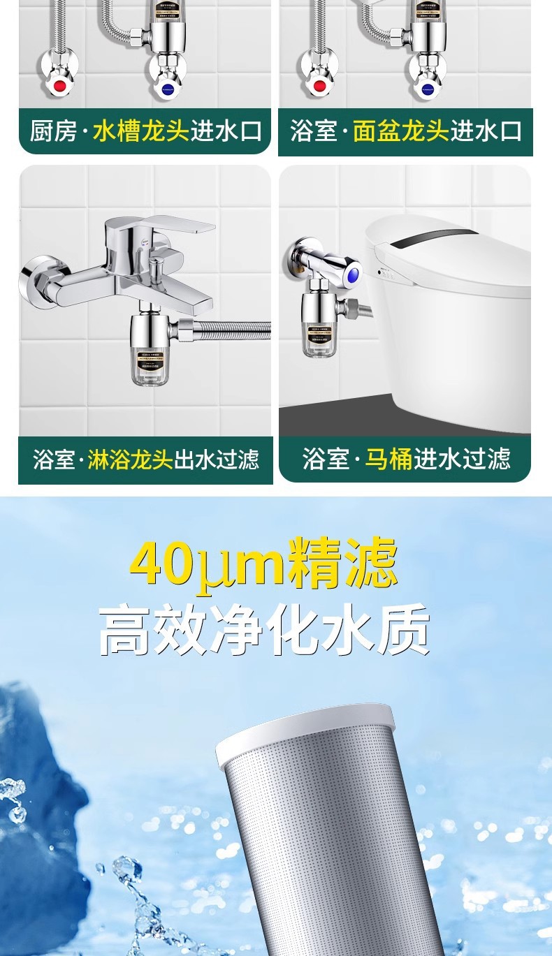 电热水器前置过滤器家用免换滤芯壁挂炉进水自来水花洒阻垢净水器