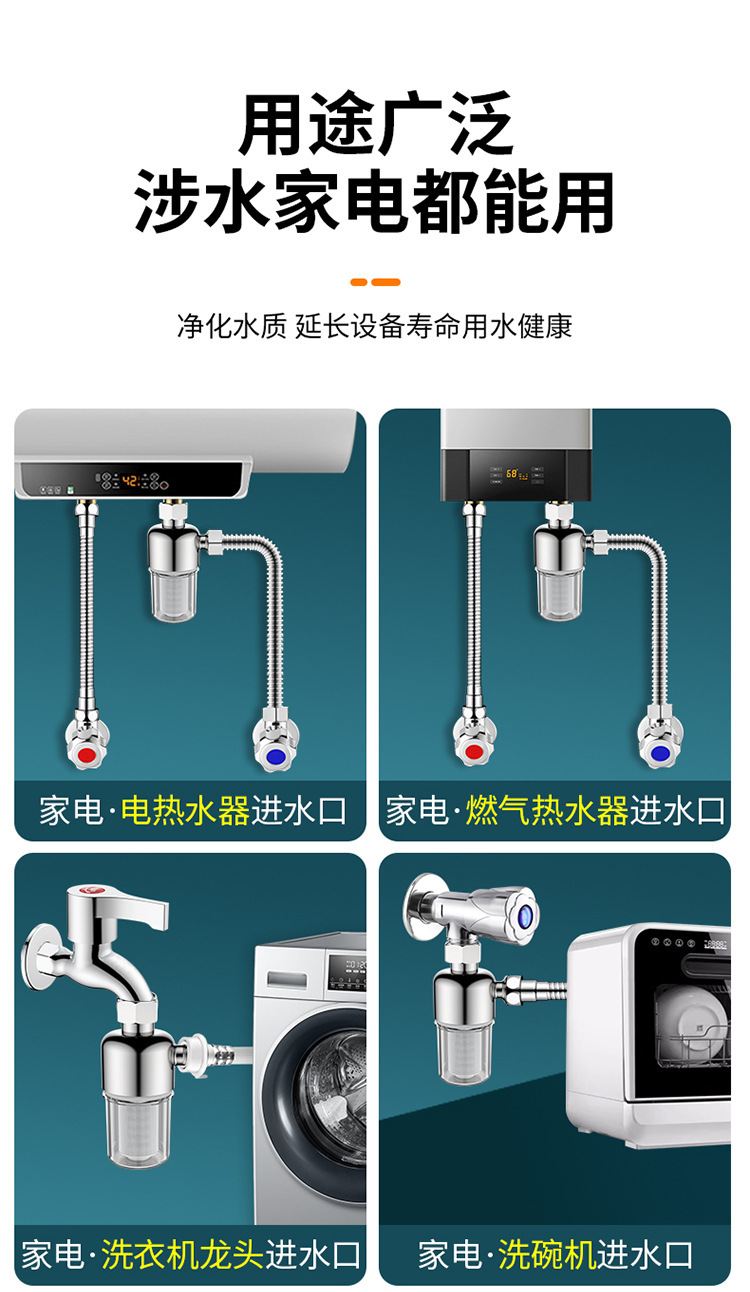 跨境代发家用免换滤芯进水自来水花洒管水龙头电热水器前置过滤器