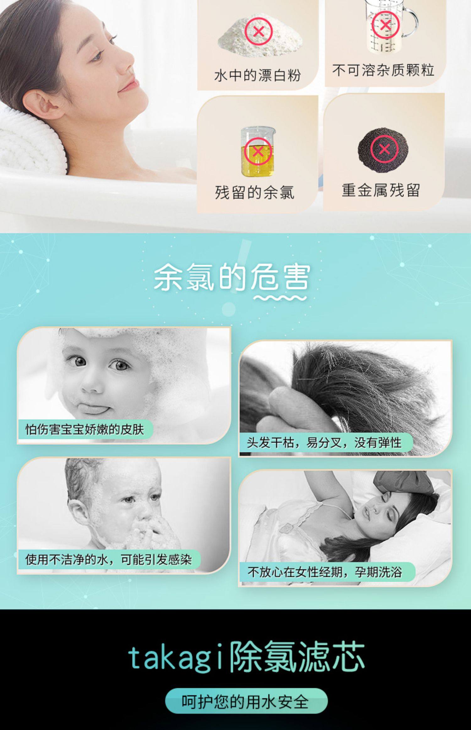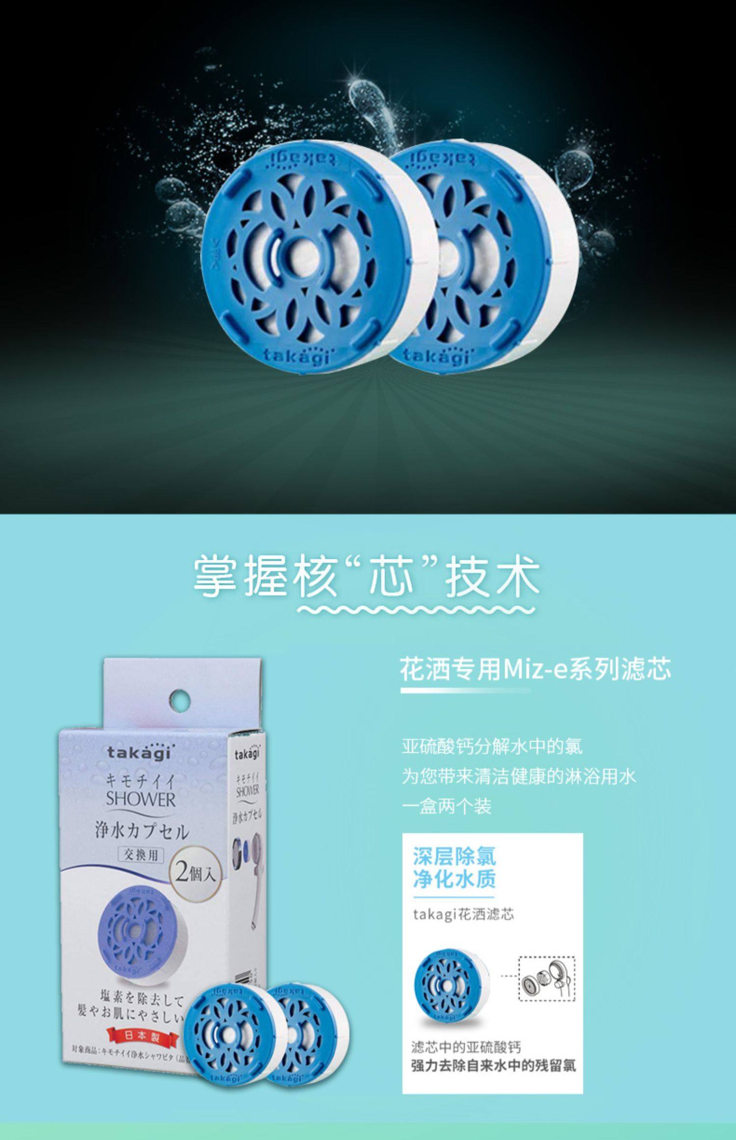 日本TAKAGI滤芯沐浴除氯护发滤芯2个装浴室家用洗澡净水花洒配件
