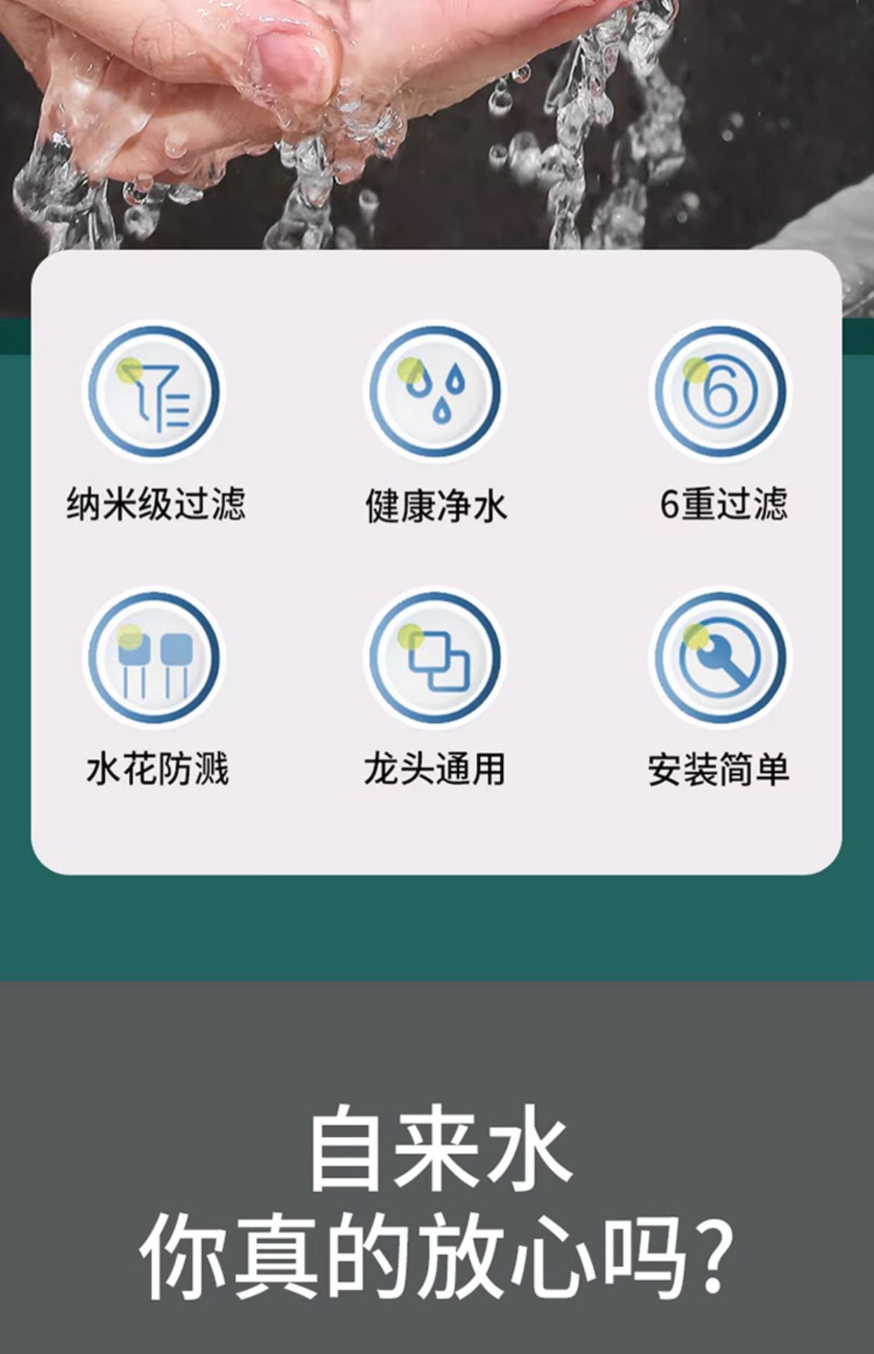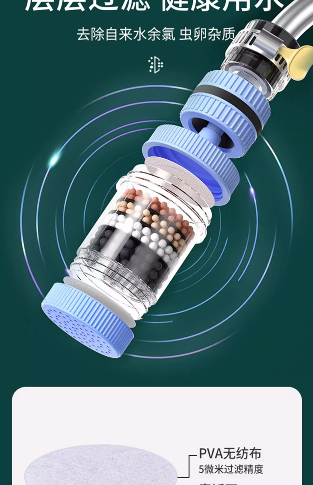 水龙头过滤器通用防溅嘴厨房净水神器家用自来水净化花洒增压滤芯