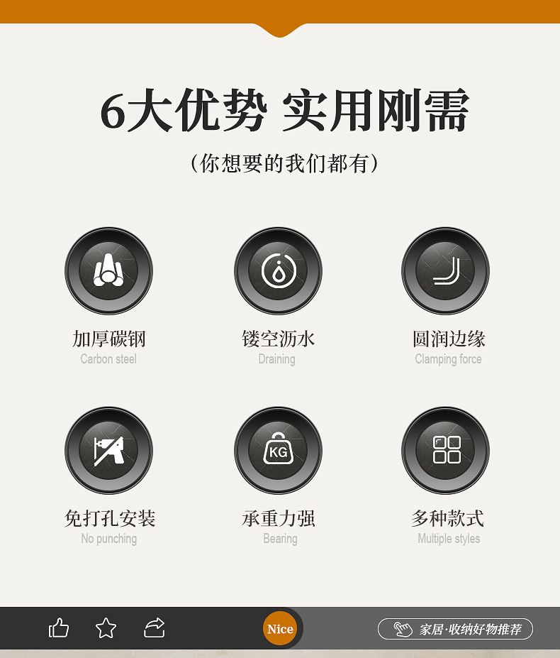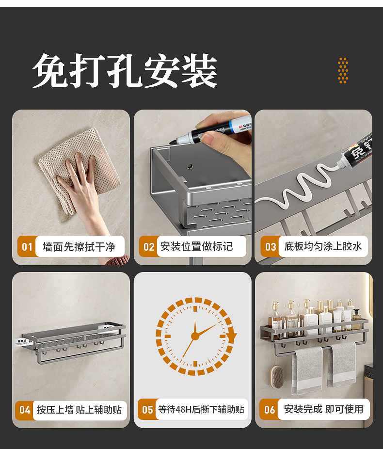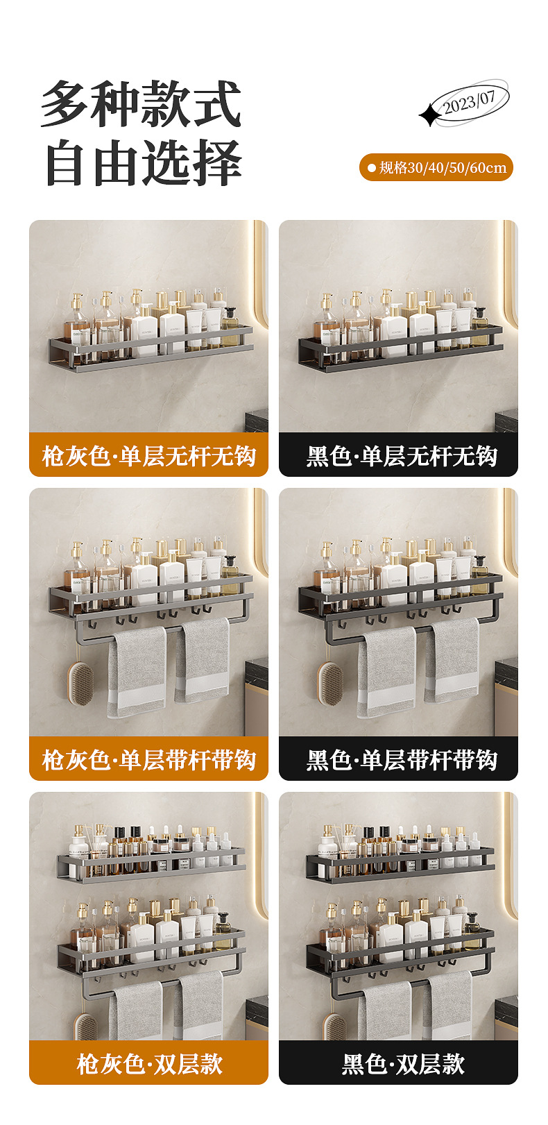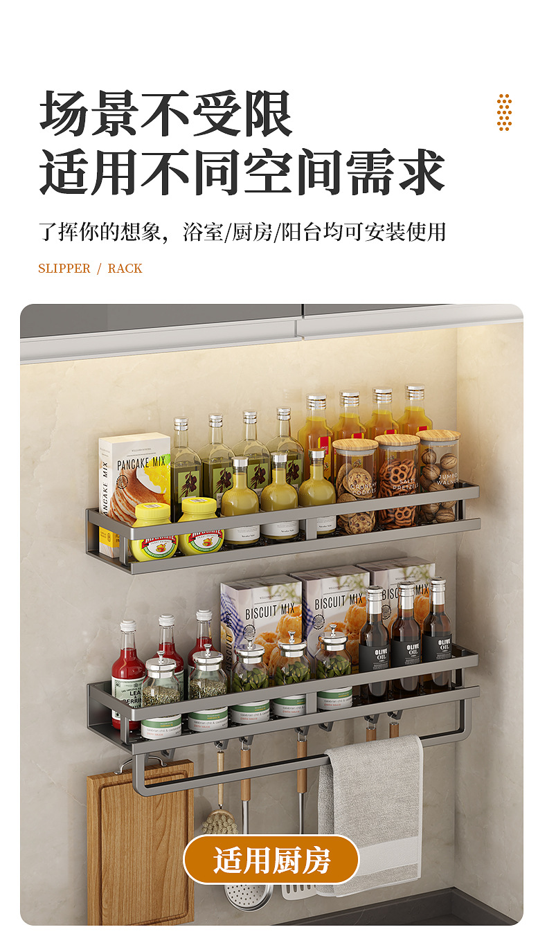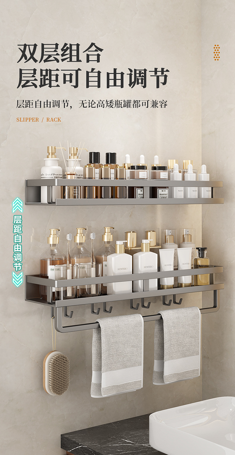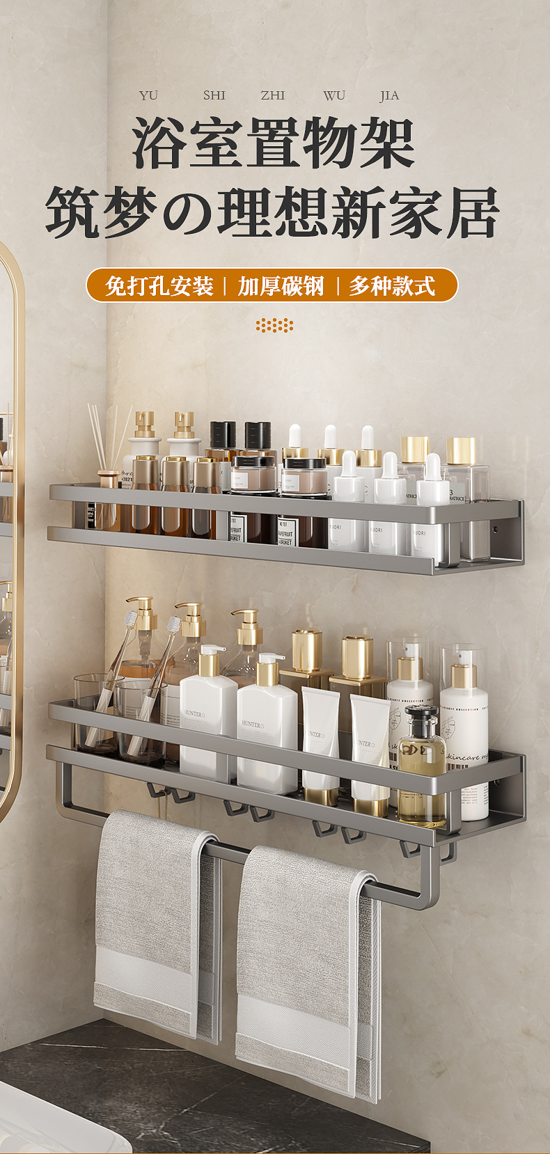 跨境免打孔挂架家用厨房调料品收纳架浴室洗漱用品毛巾壁挂置物架