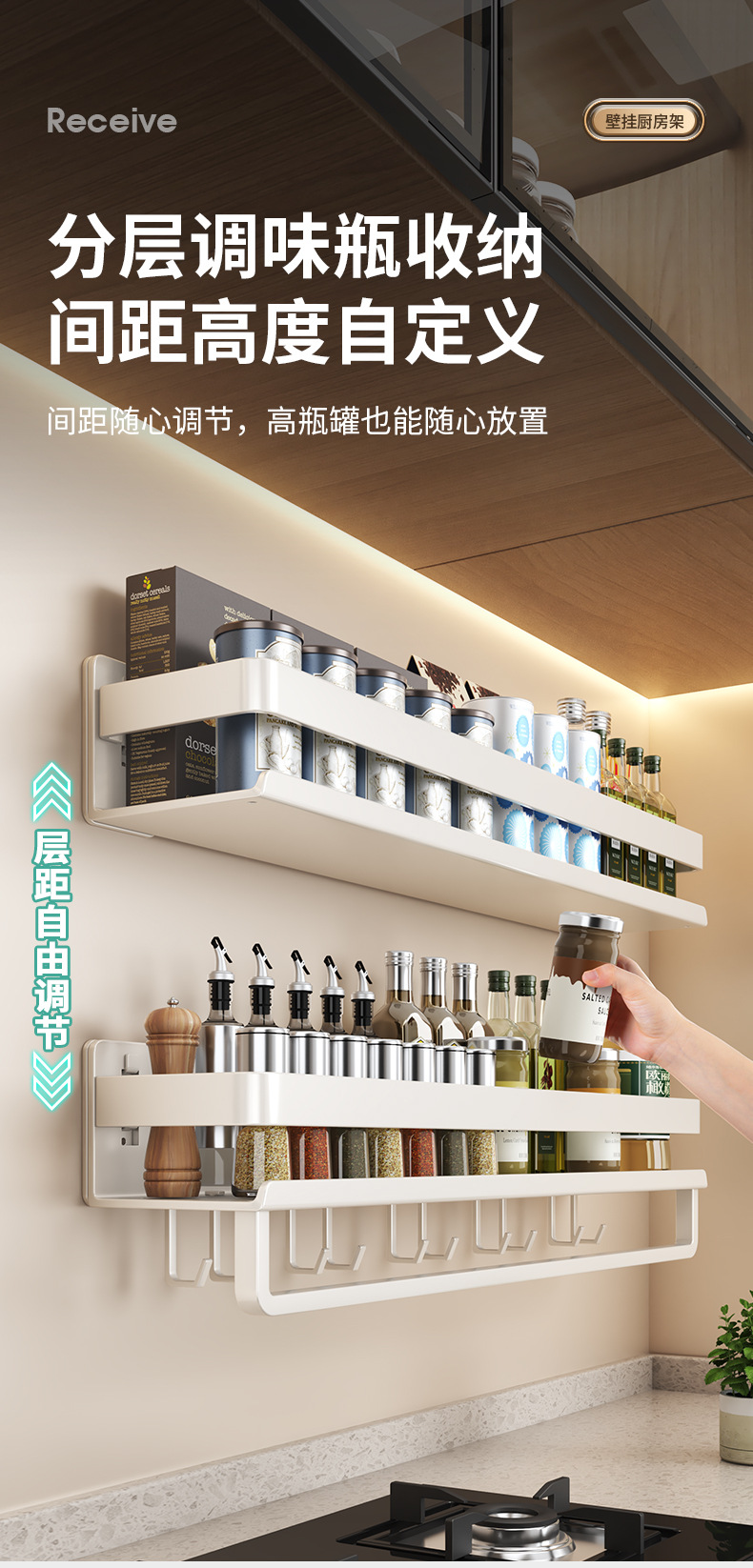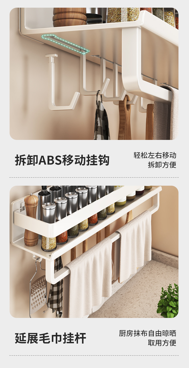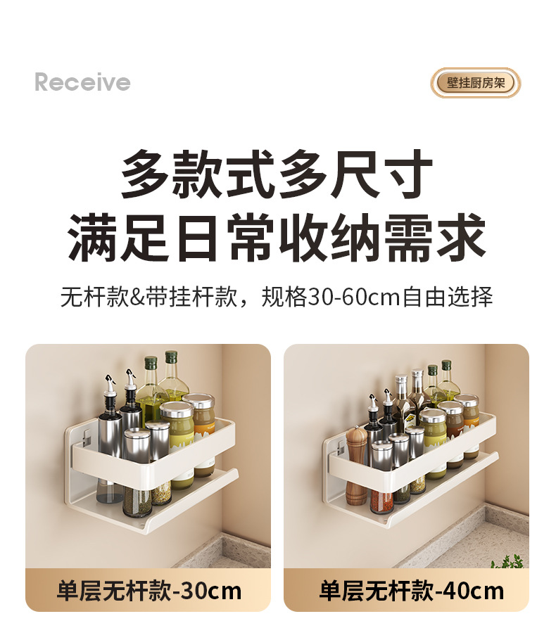 跨境厨房置物架免打孔带杆调料品双层收纳架浴室洗漱用品摆放架