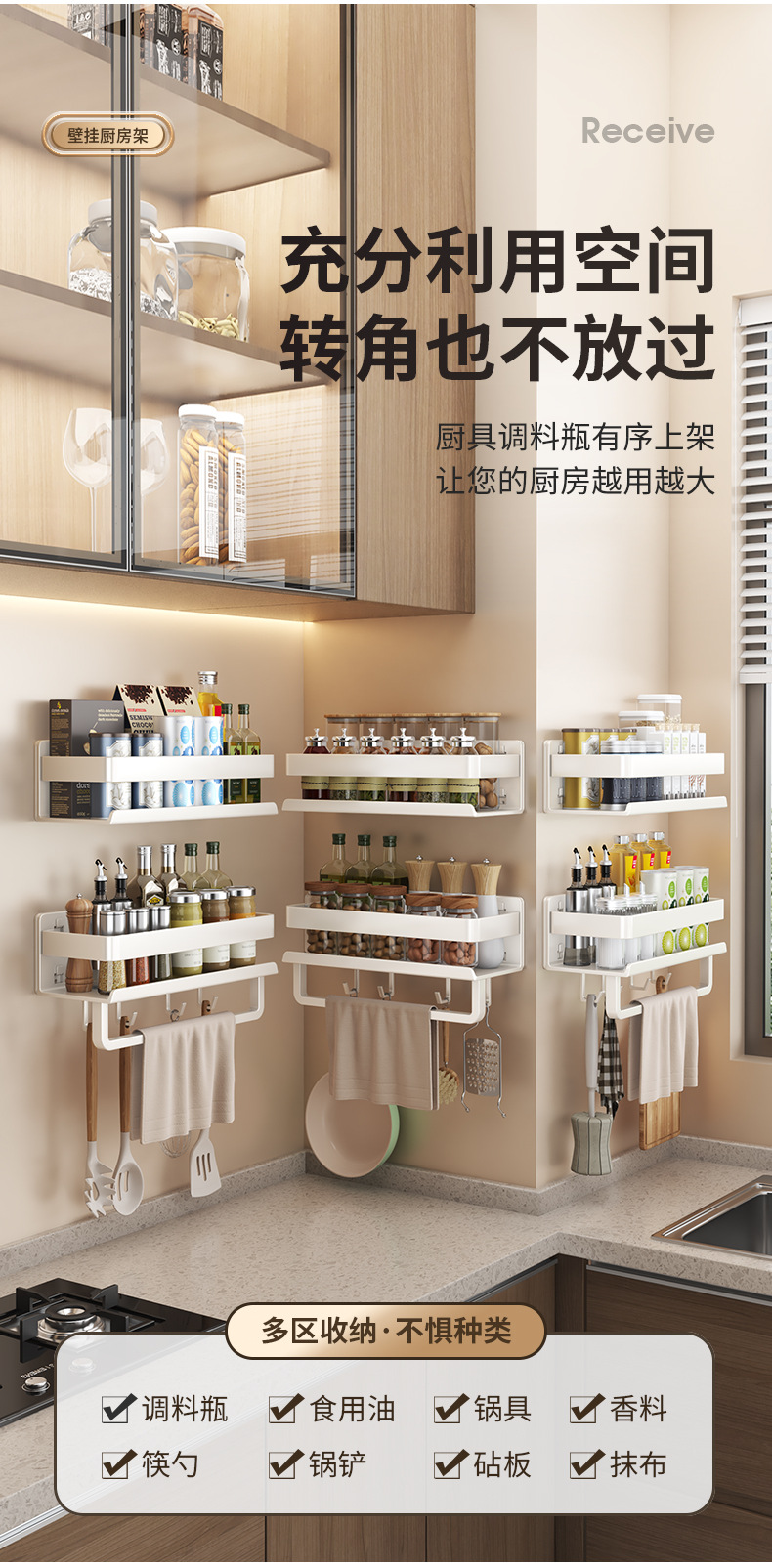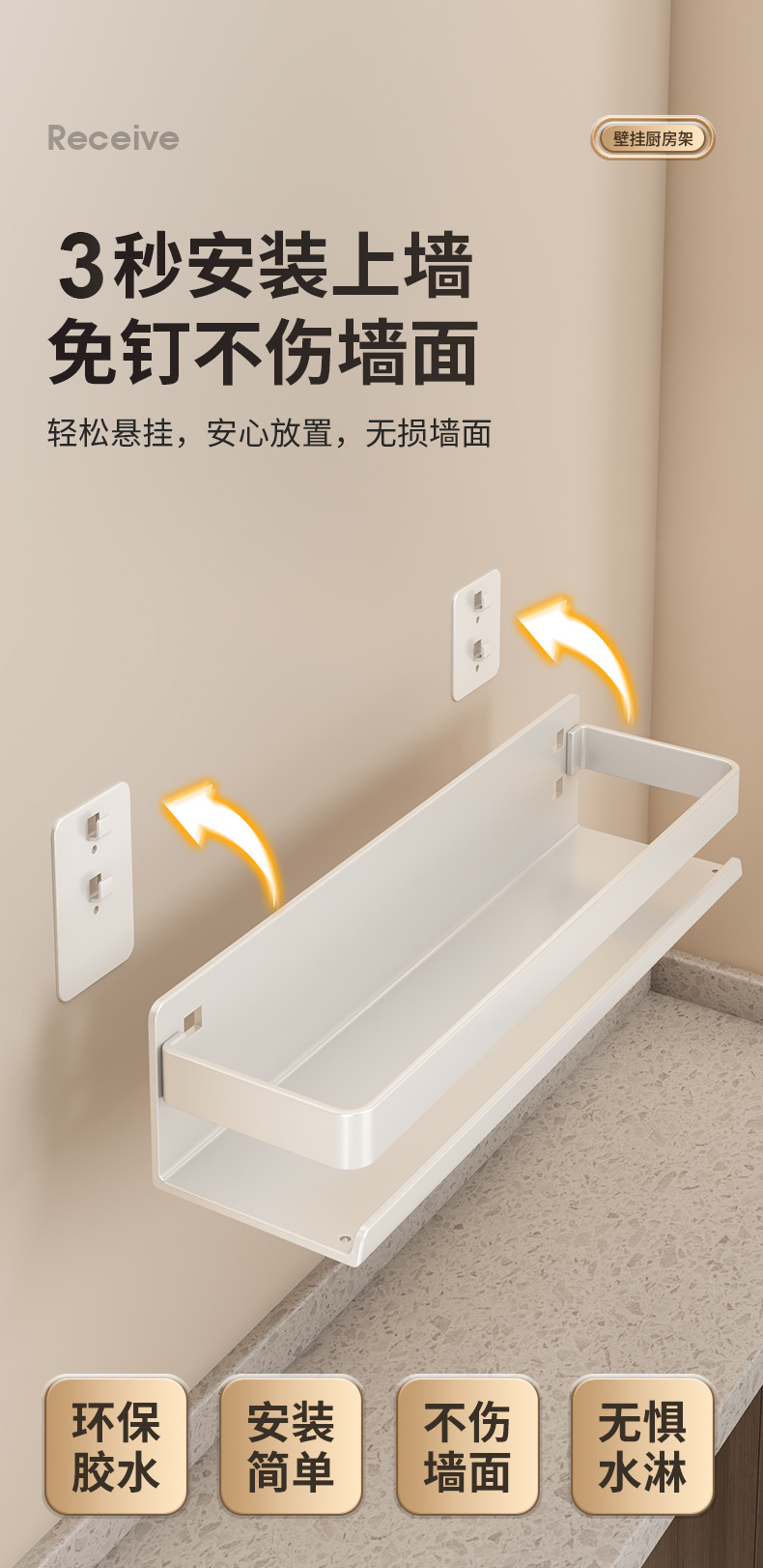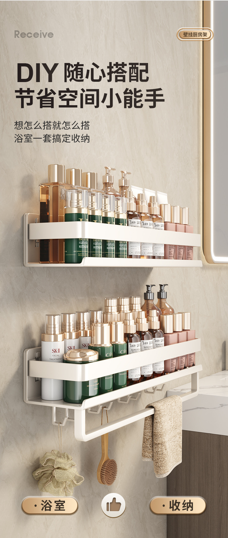 跨境厨房置物架免打孔带杆调料品双层收纳架浴室洗漱用品摆放架