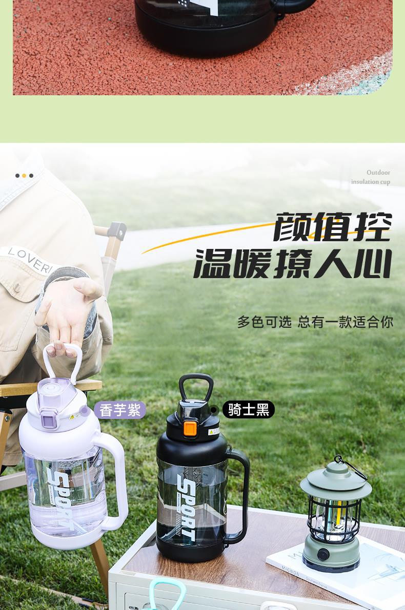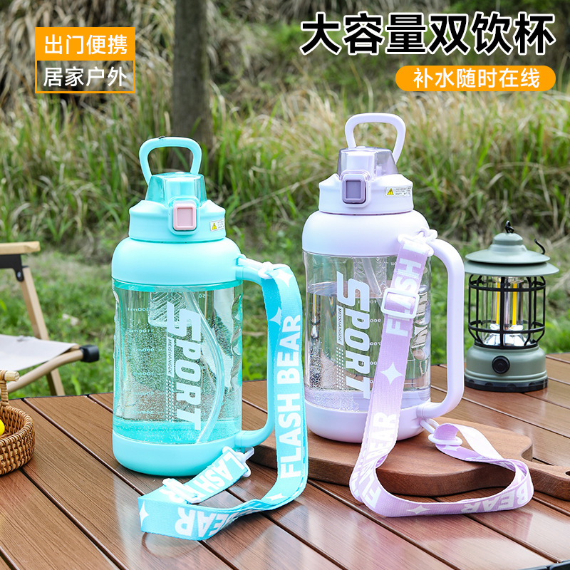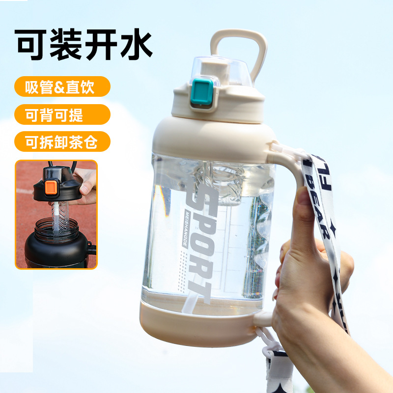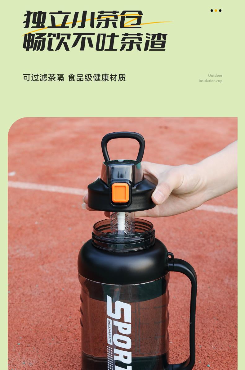 2024新款爆品大容量直饮吸管带茶隔茶仓花茶杯带把手吨吨桶塑料杯