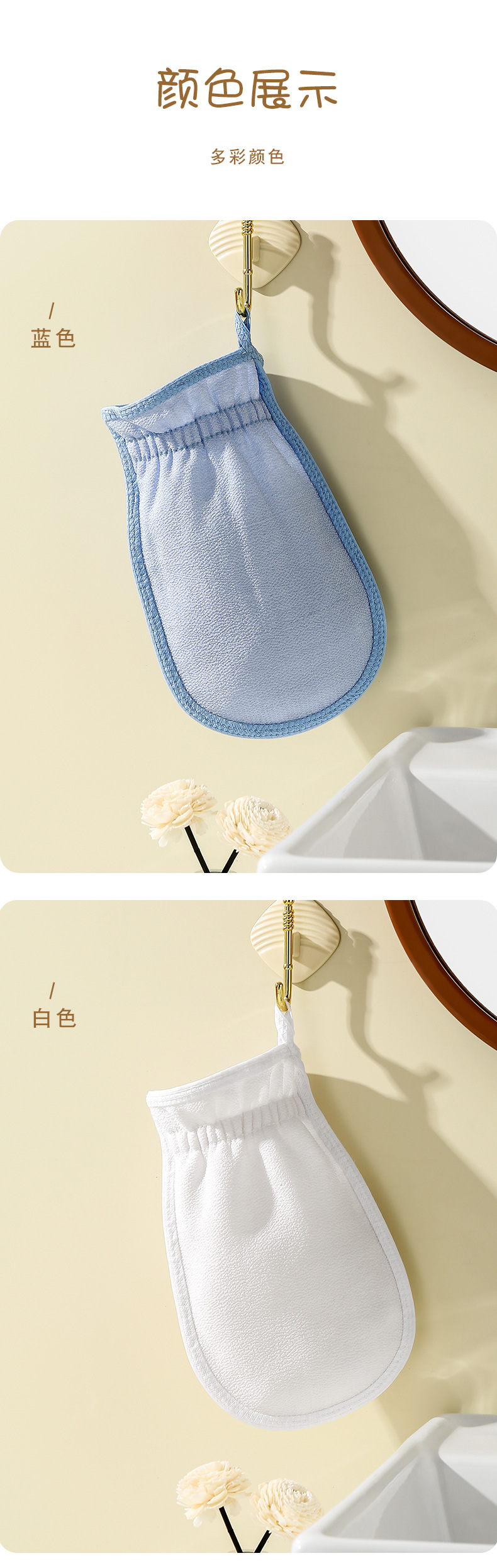 搓澡巾细砂素色女士搓泥去污成人双面搓背手套下泥家用洗澡巾批发
