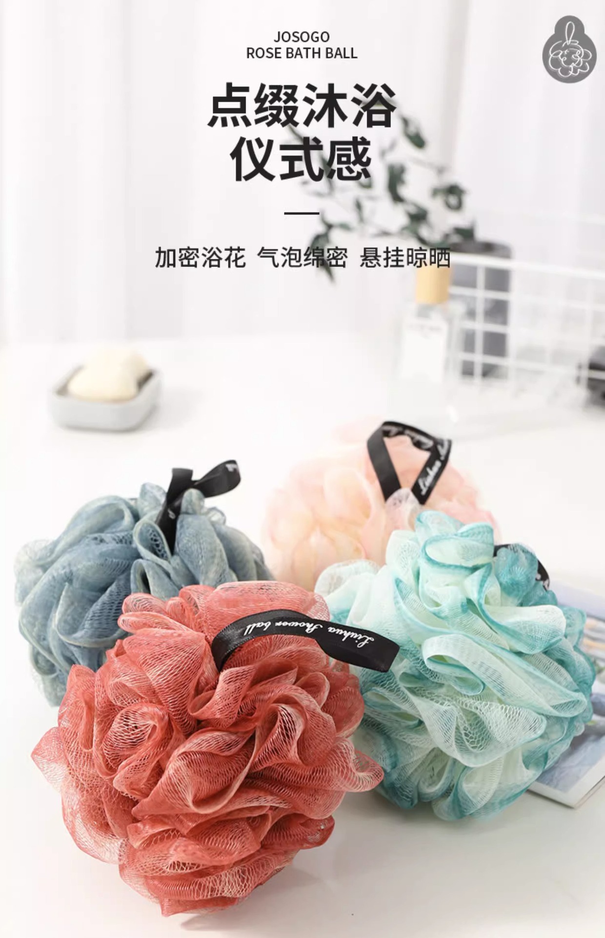 沐浴球高档浴花球不散搓澡巾浴室用品洗浴球女洗澡神器现货批发