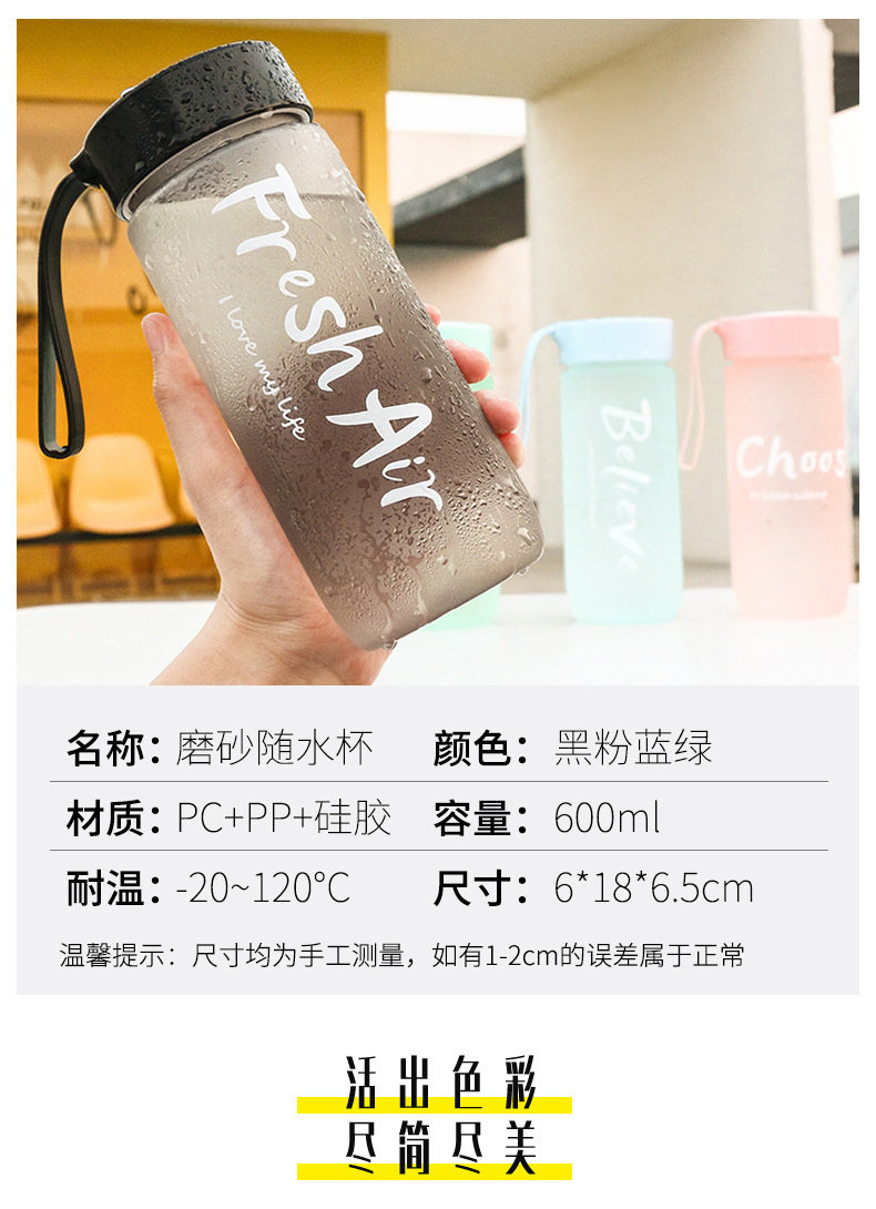 运动水杯女生学生塑料新款2024男生高颜值磨砂塑料防摔便携随手杯