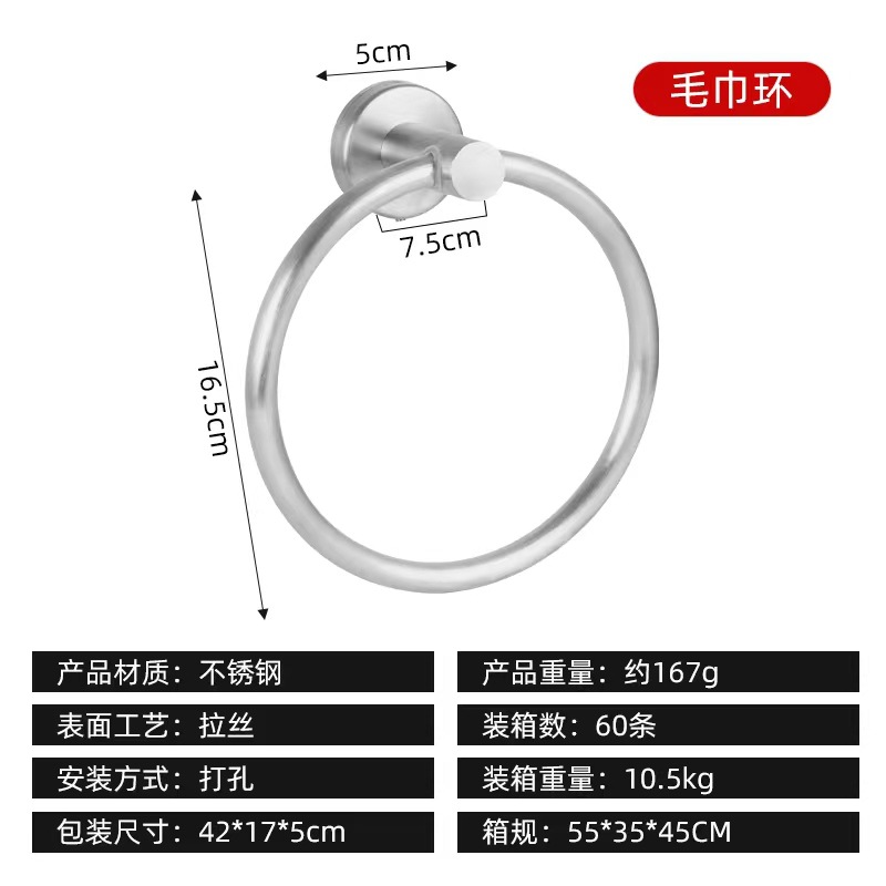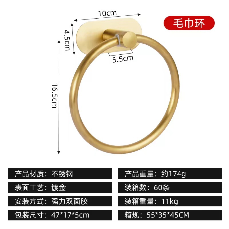 跨境不锈钢毛巾环免打孔毛巾挂环浴室卫生间免钉椭圆形圆形毛巾架