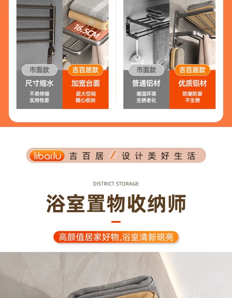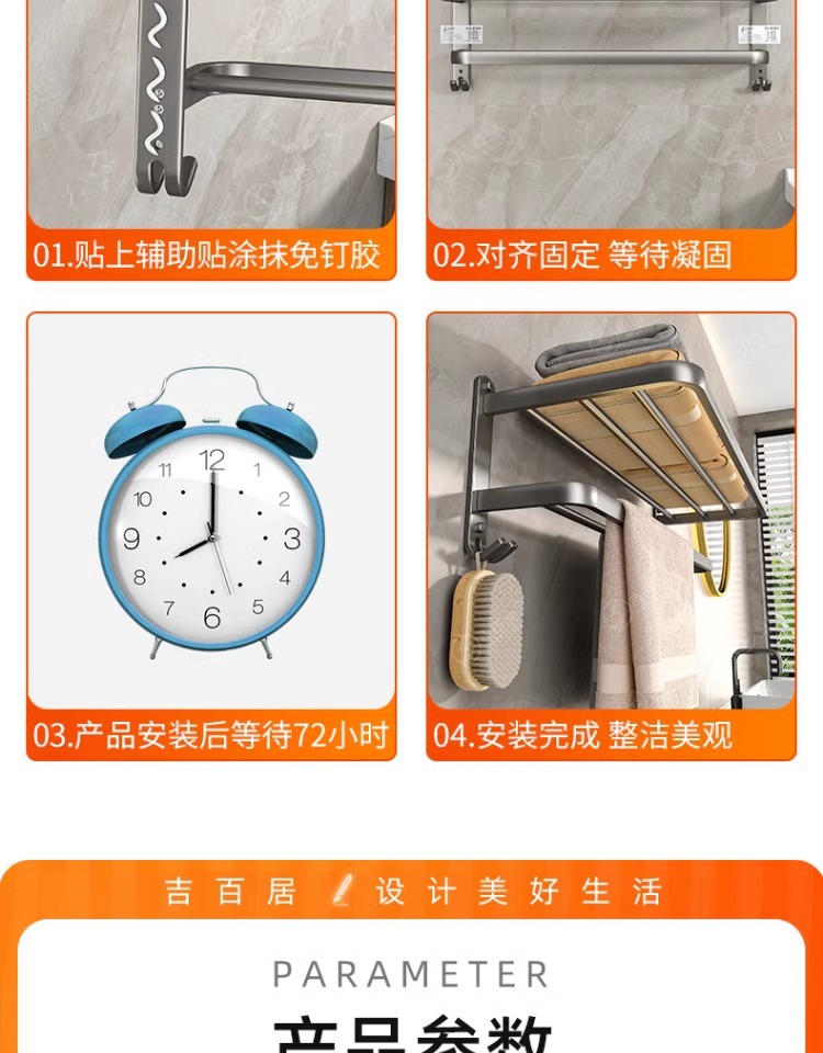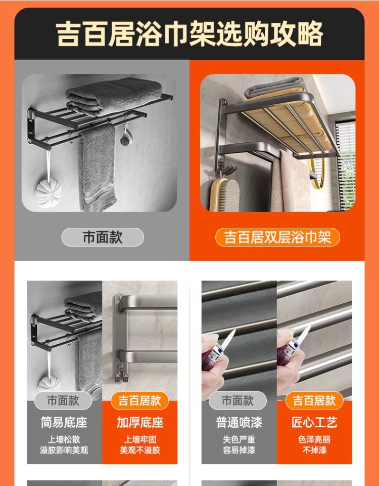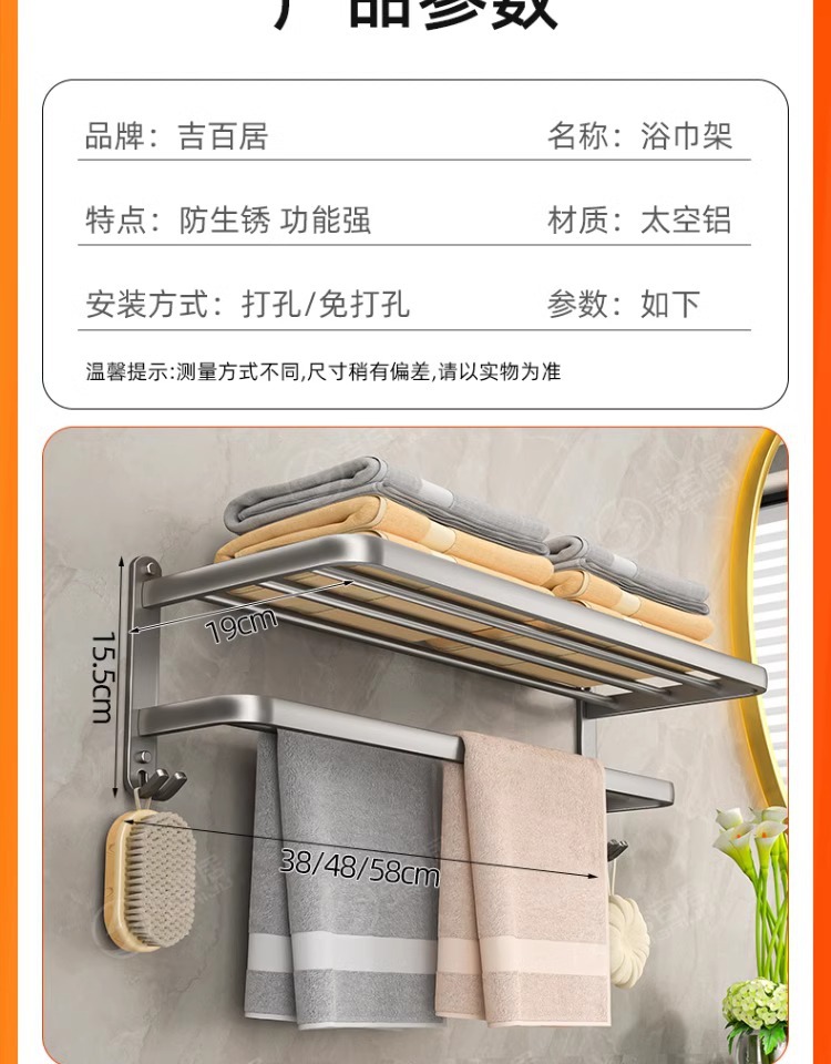 厂家供应浴室免打孔毛巾杆 浴巾架 卫生间太空铝厨卫挂件置物架
