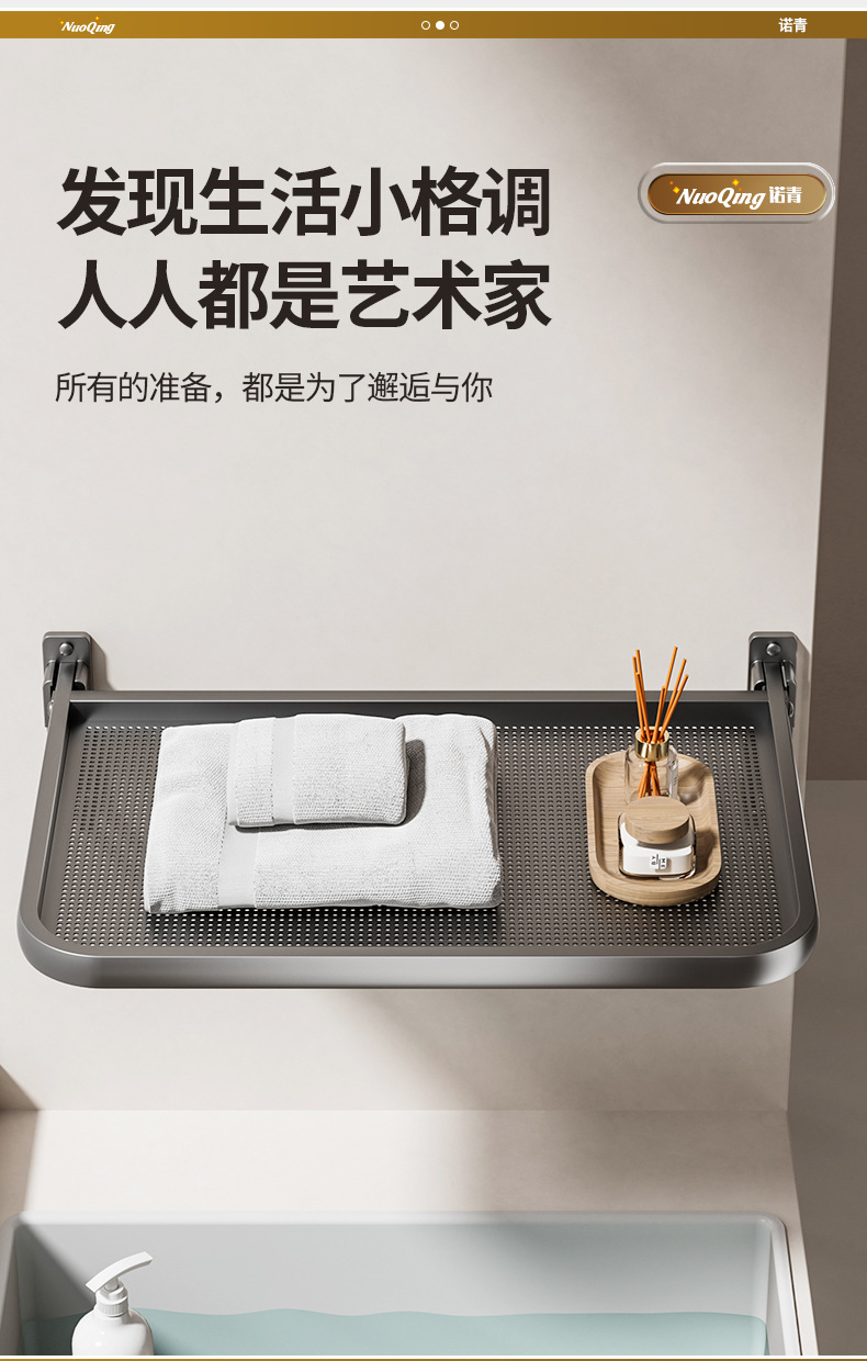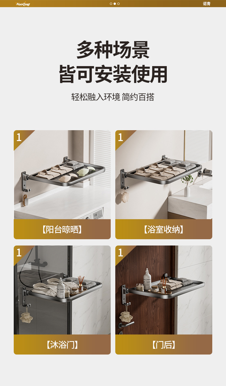 枪灰色浴室隐形折叠浴巾架免打孔卫生间壁挂毛巾架置物架收纳架子