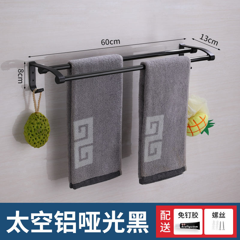 浴室毛巾置物架双杆式加厚太空铝毛巾杆卫生间置物架免打孔浴巾架