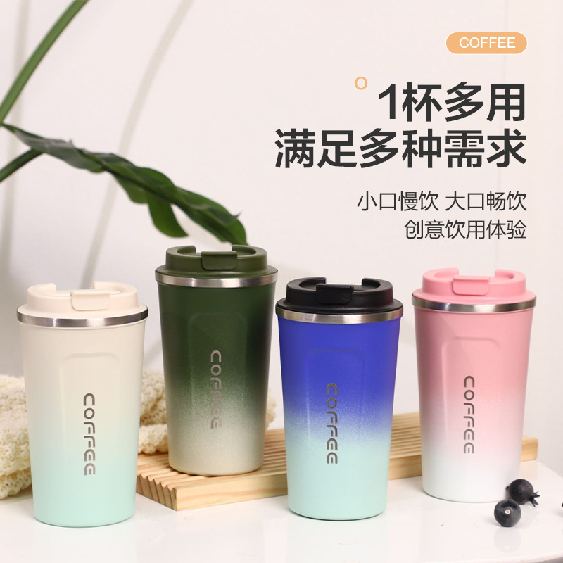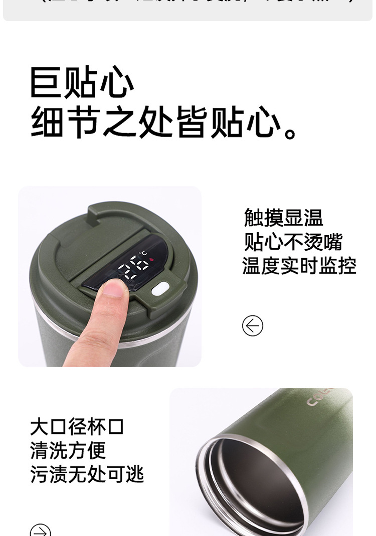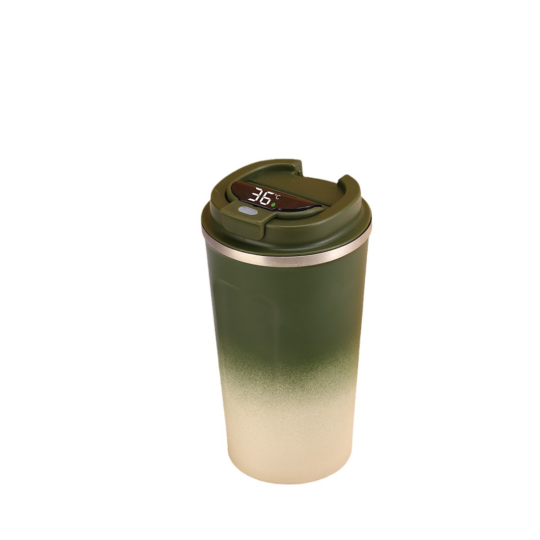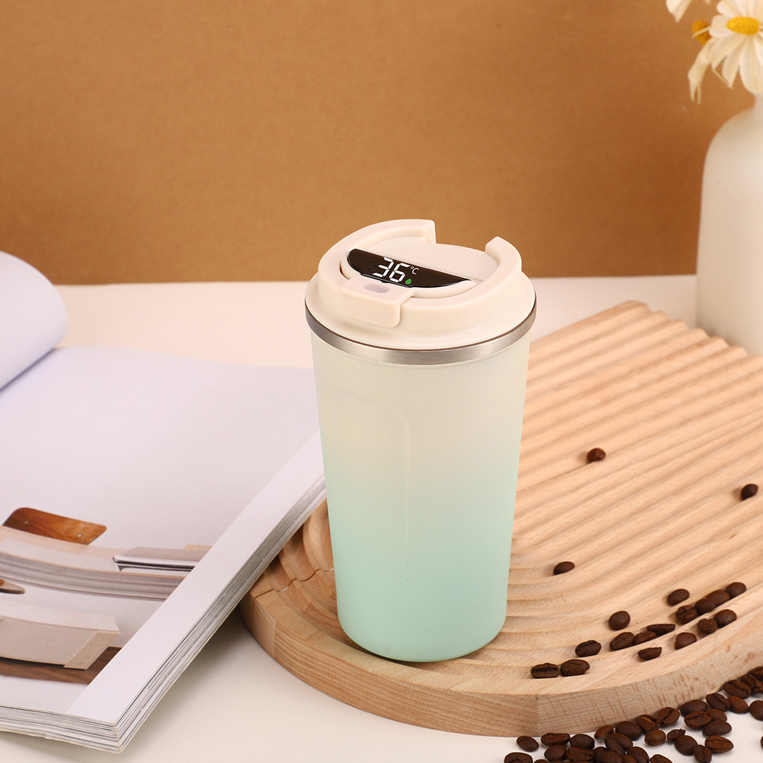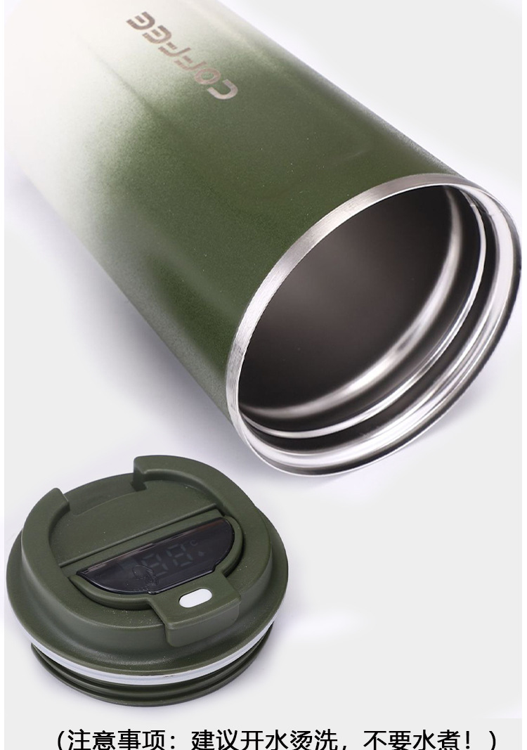 欧式新款磨砂不锈钢咖啡杯智能显温水杯保温杯户外便携车载随手杯