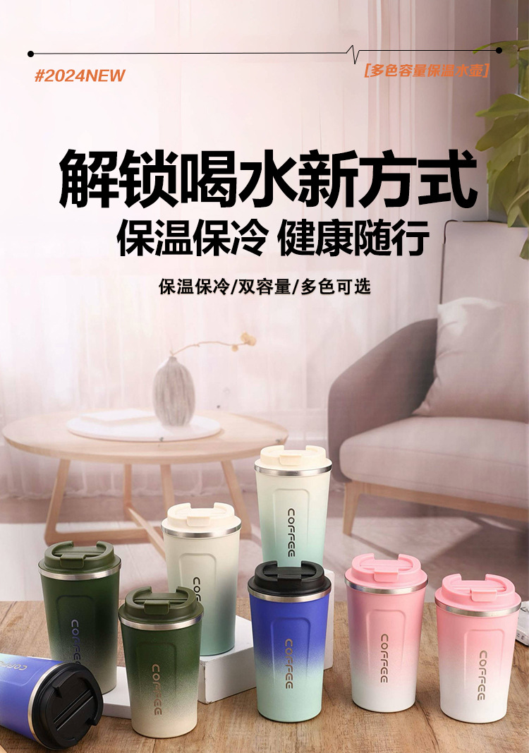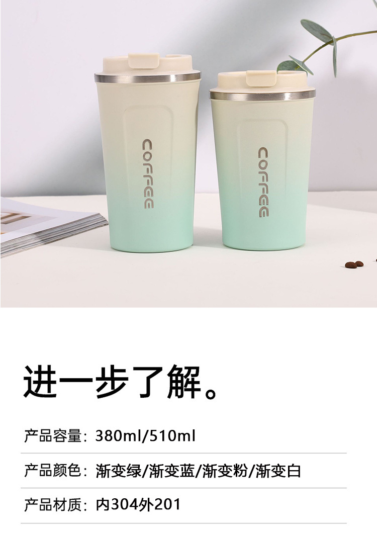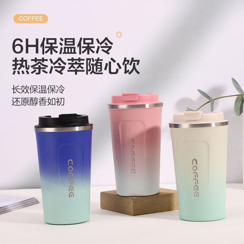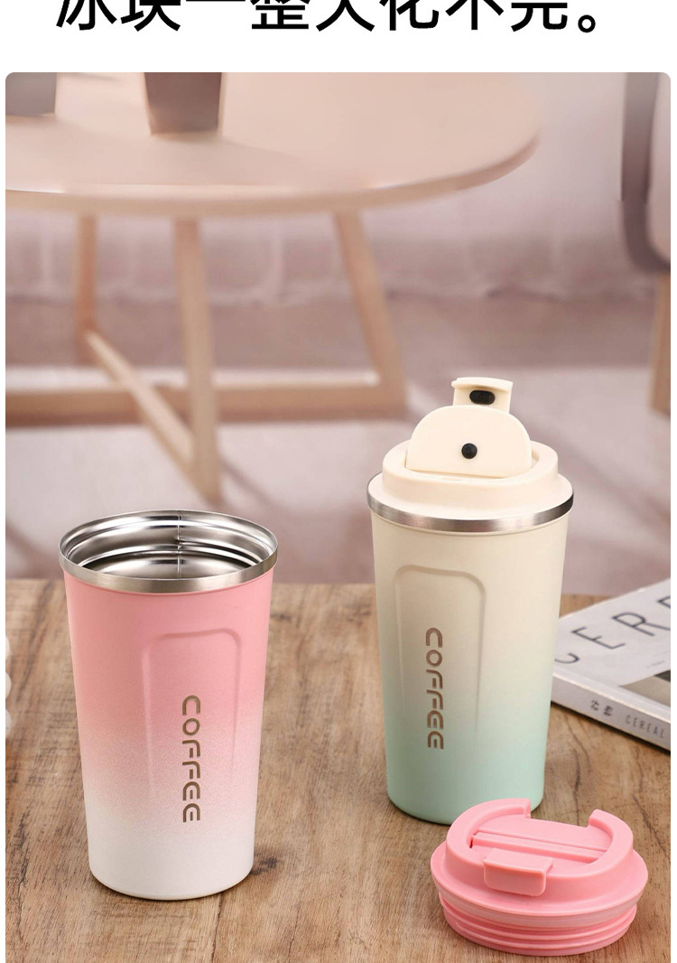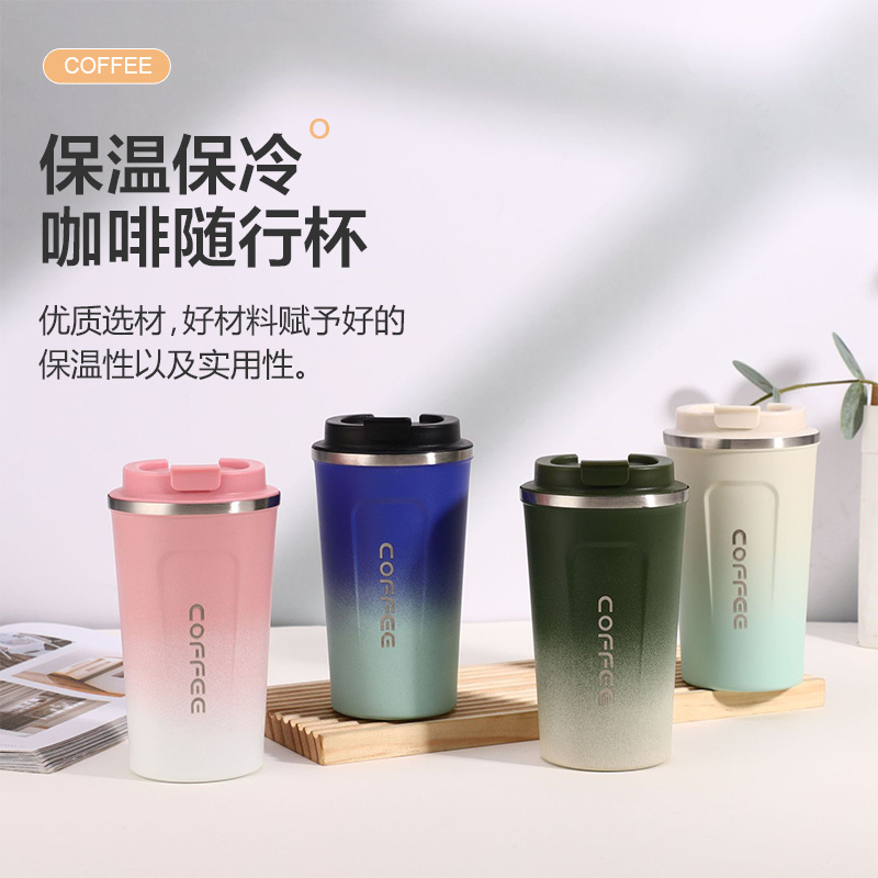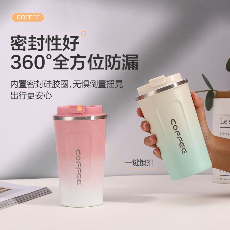 欧式新款磨砂不锈钢咖啡杯智能显温水杯保温杯户外便携车载随手杯