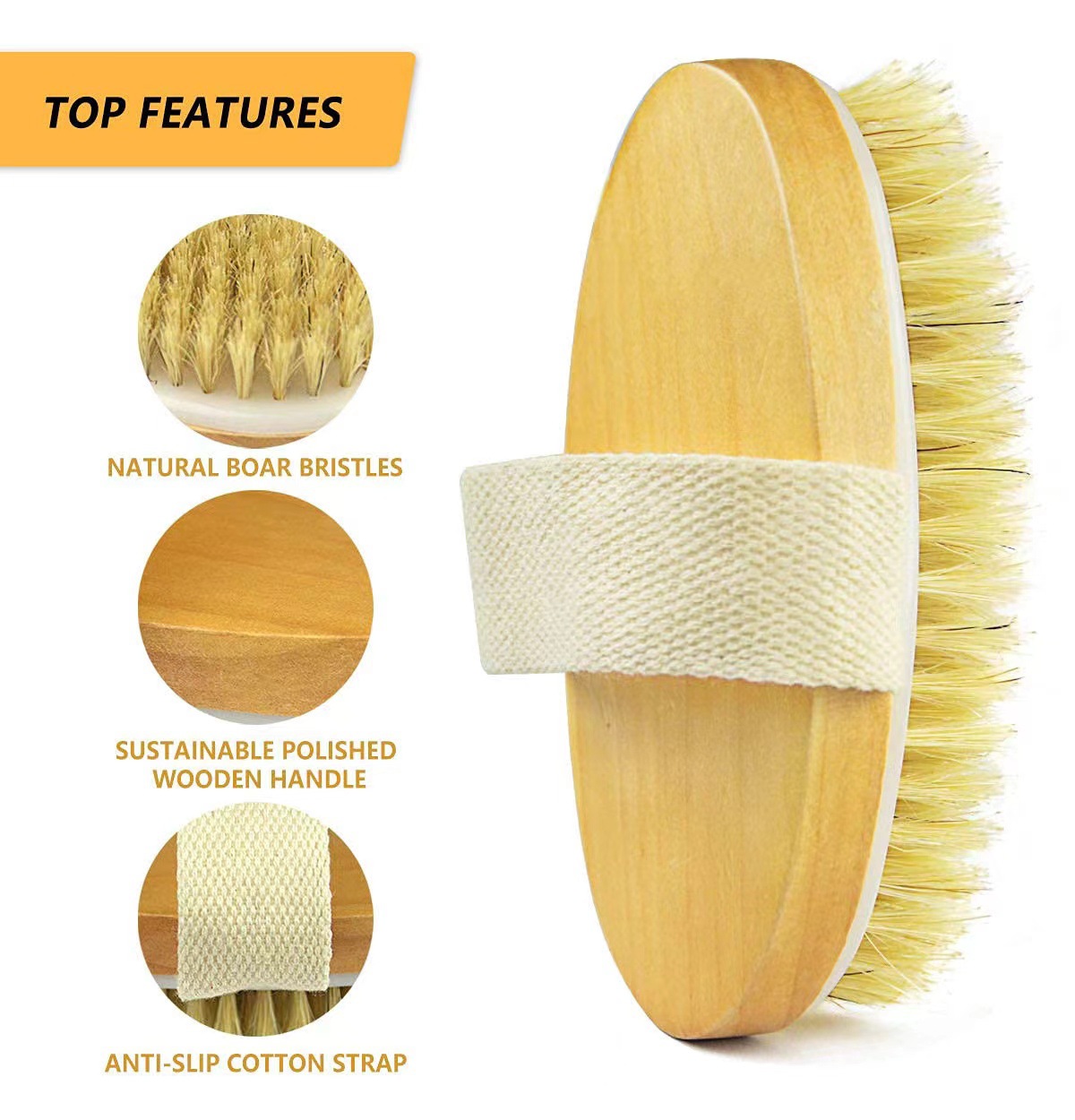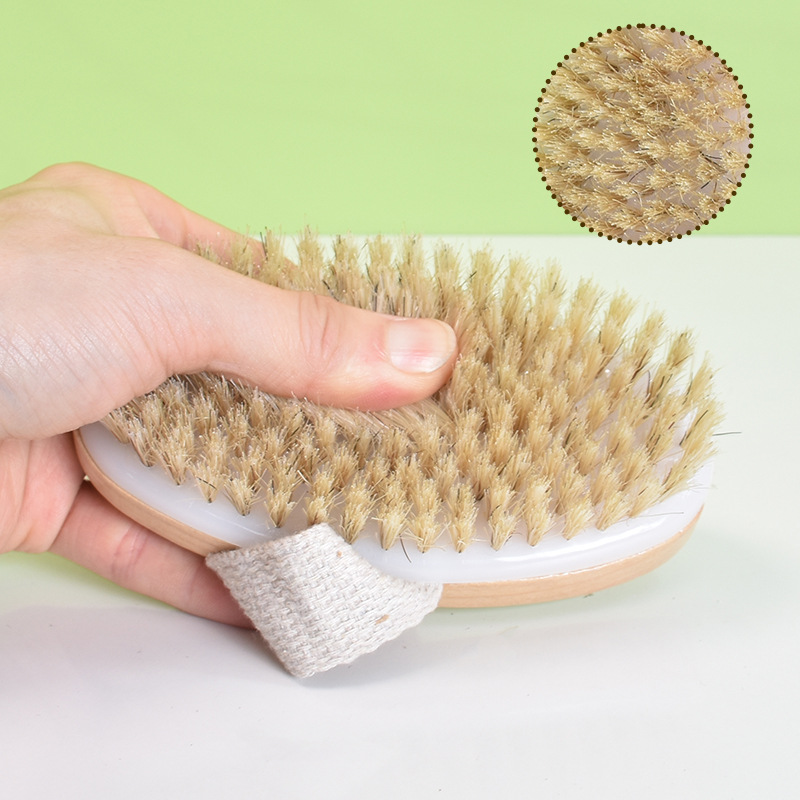 猪鬃刷身体干刷子去角质身体按摩刷搓澡刷猪鬃毛浴刷木质洗澡刷子