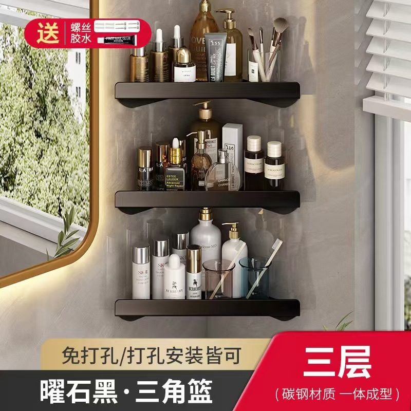 卫生间转角架浴室碳钢三角形收纳层架浴室壁挂式化妆品置物架跨境