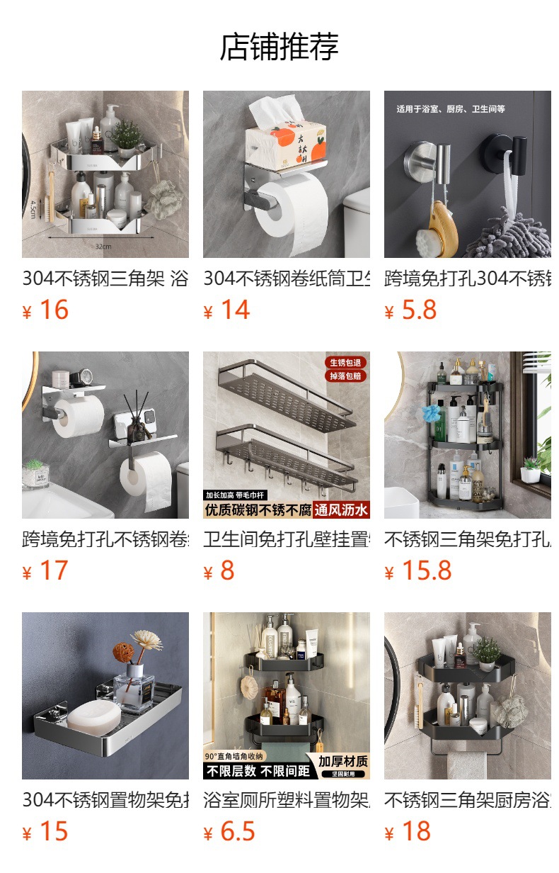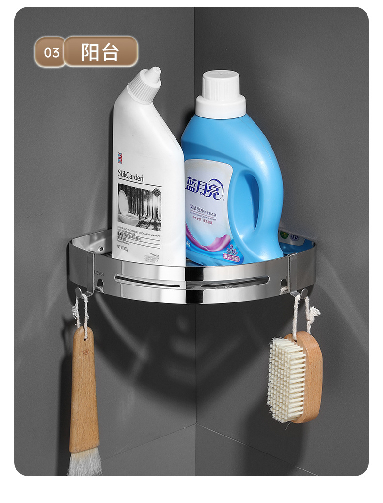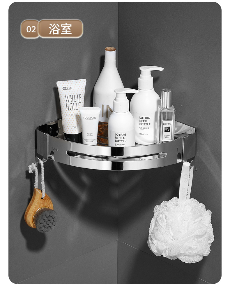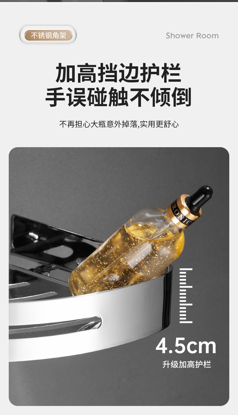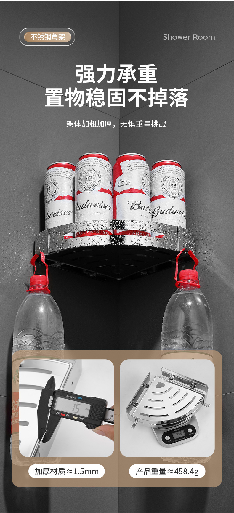 跨境 不锈钢卫生间浴室三角架方架转角架免打孔黑色收纳架置物架