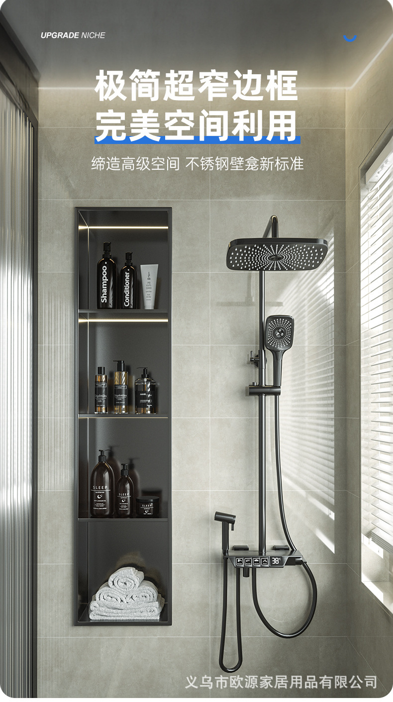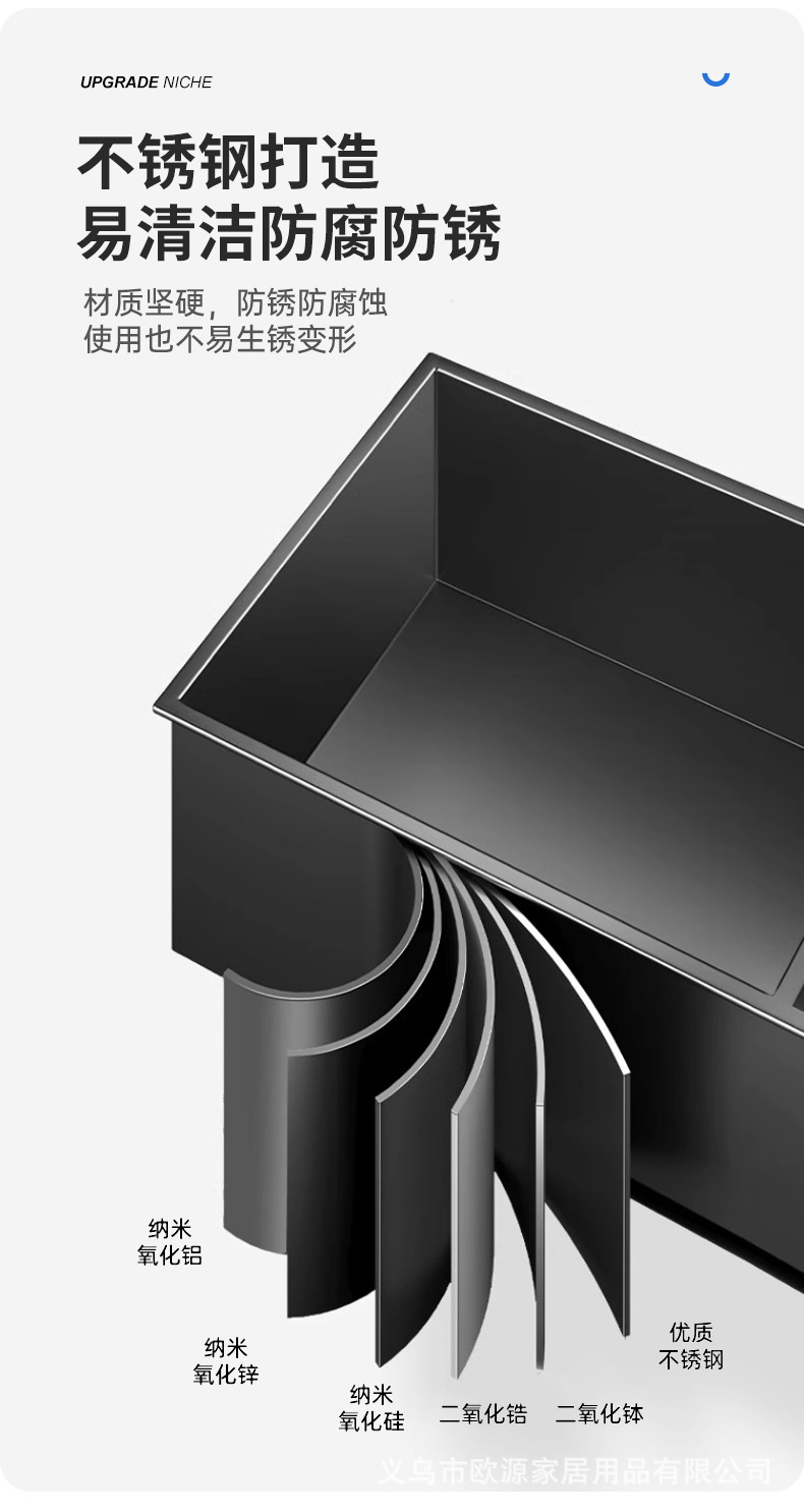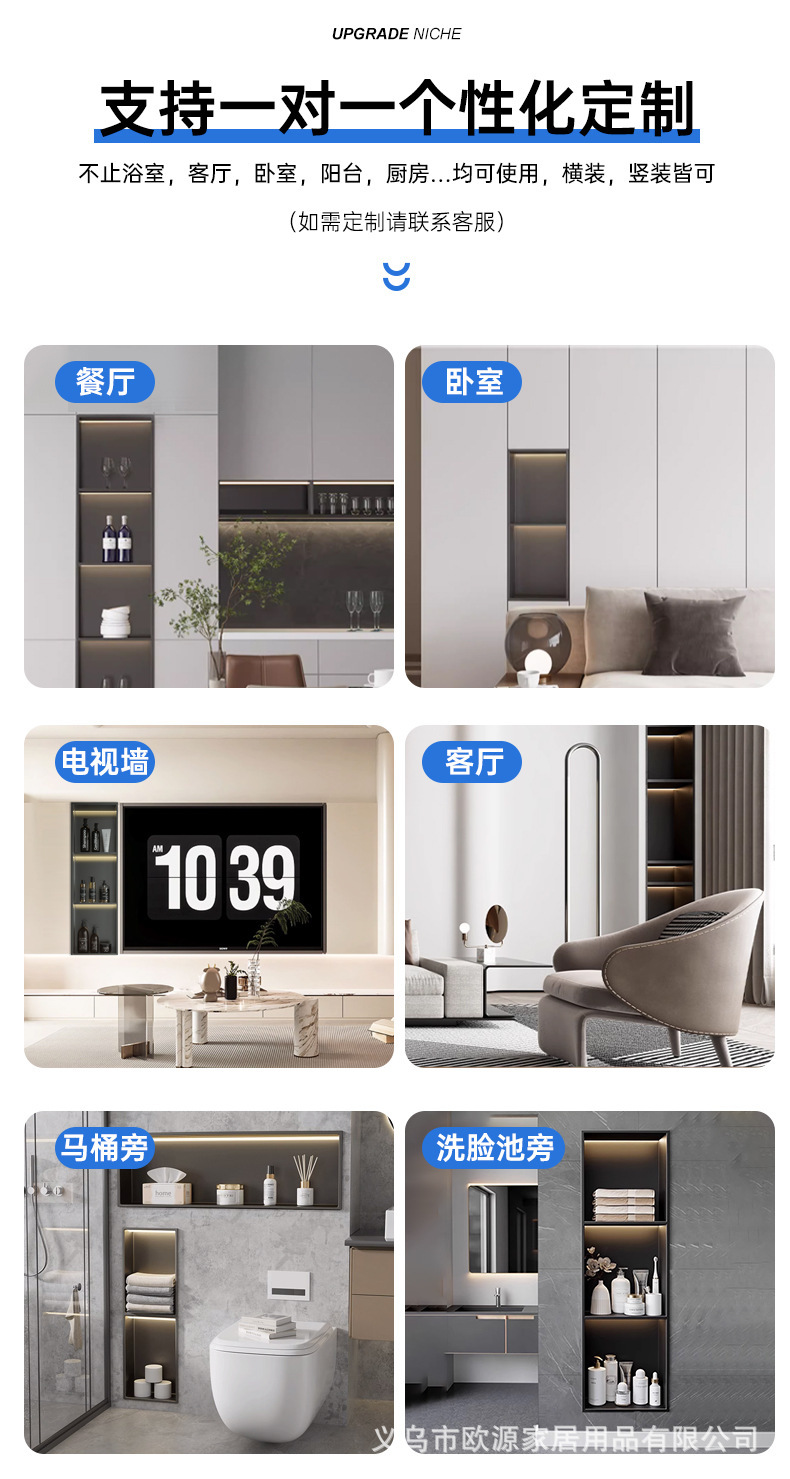 跨境不锈钢壁龛柜隔板金属电视背景墙展示嵌入式卫生间浴室置物架