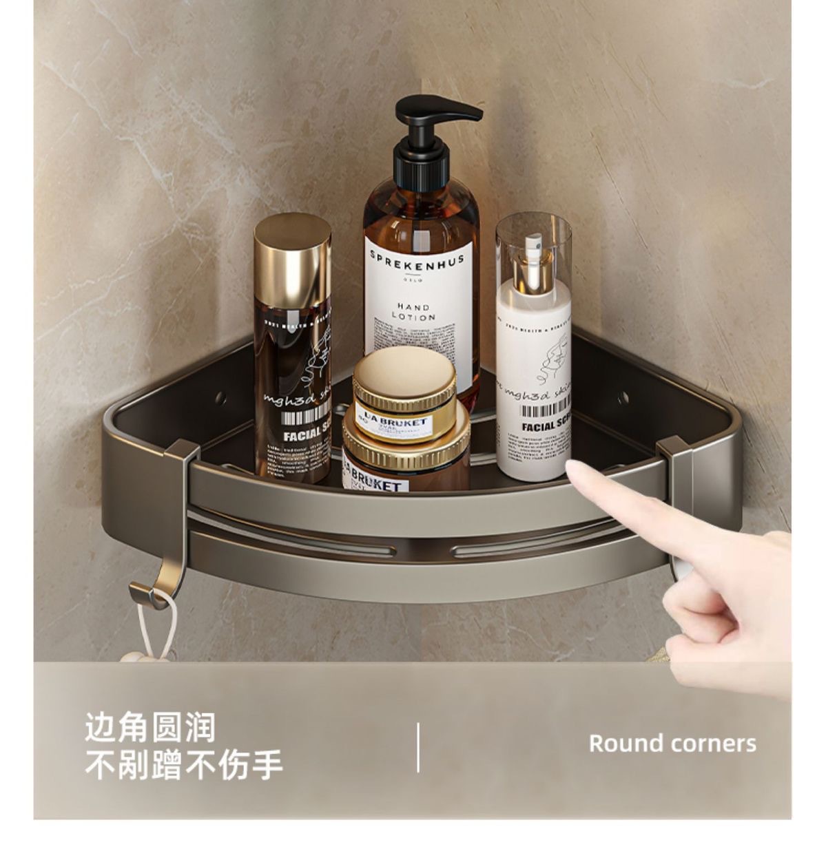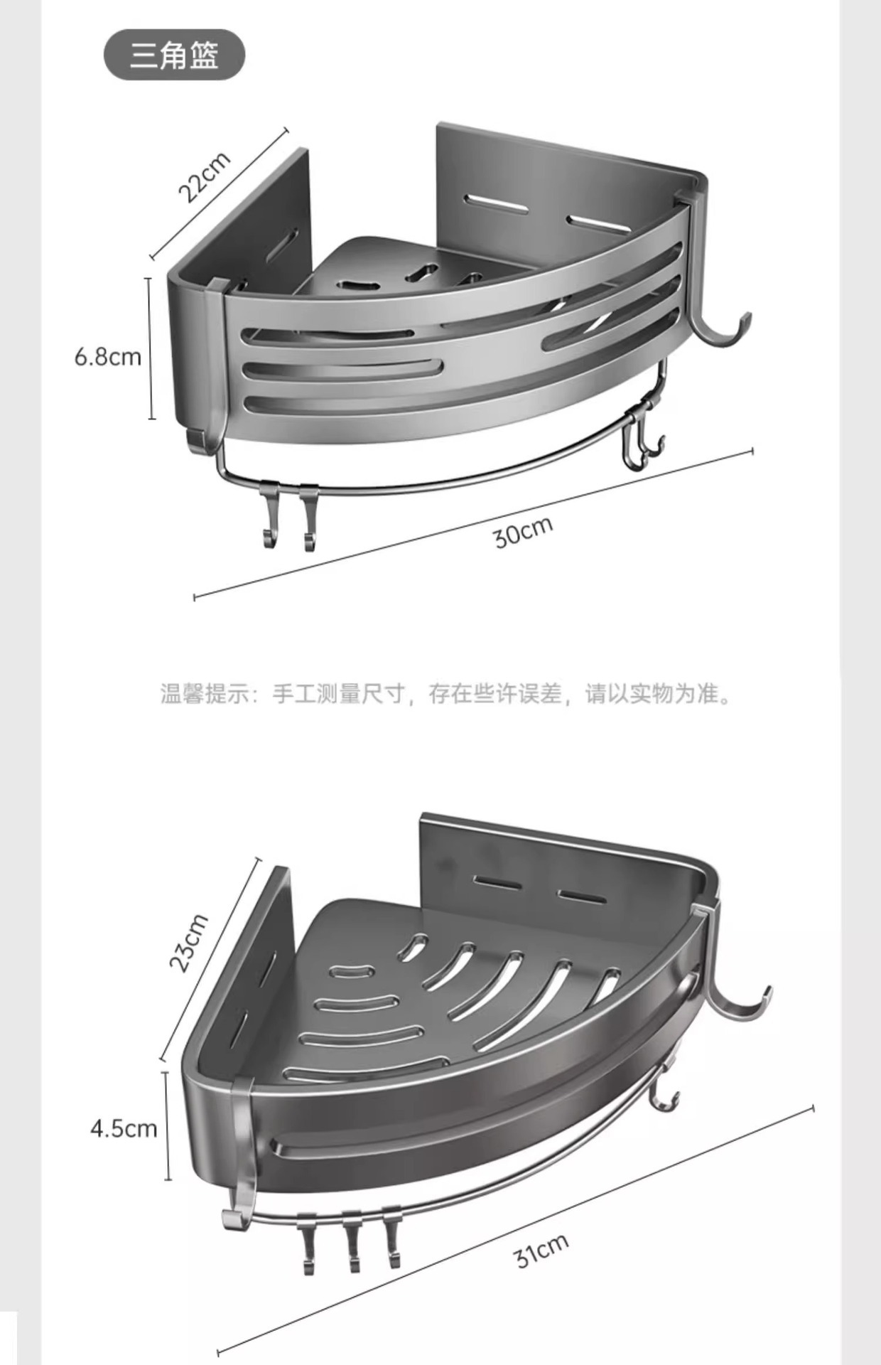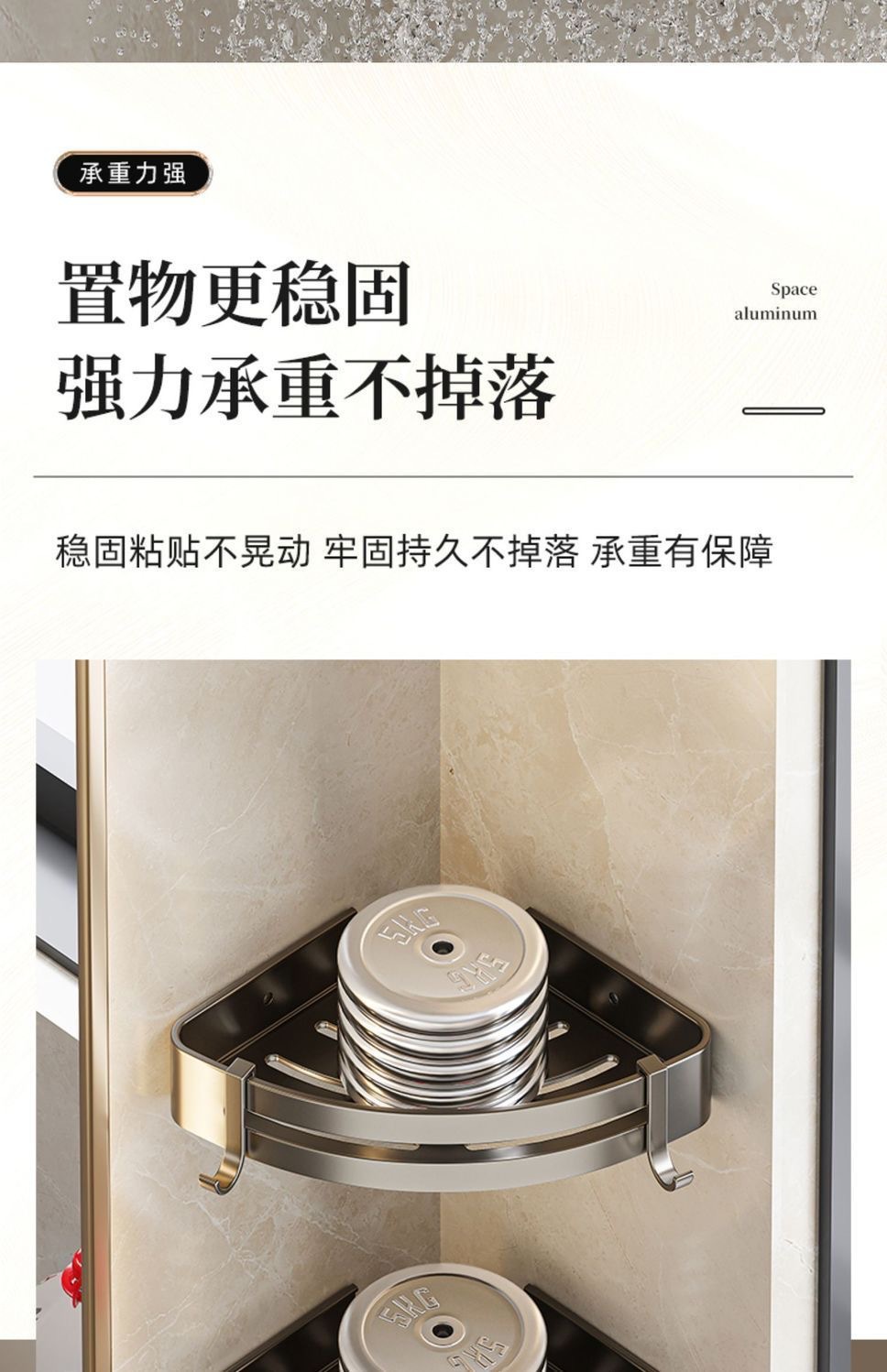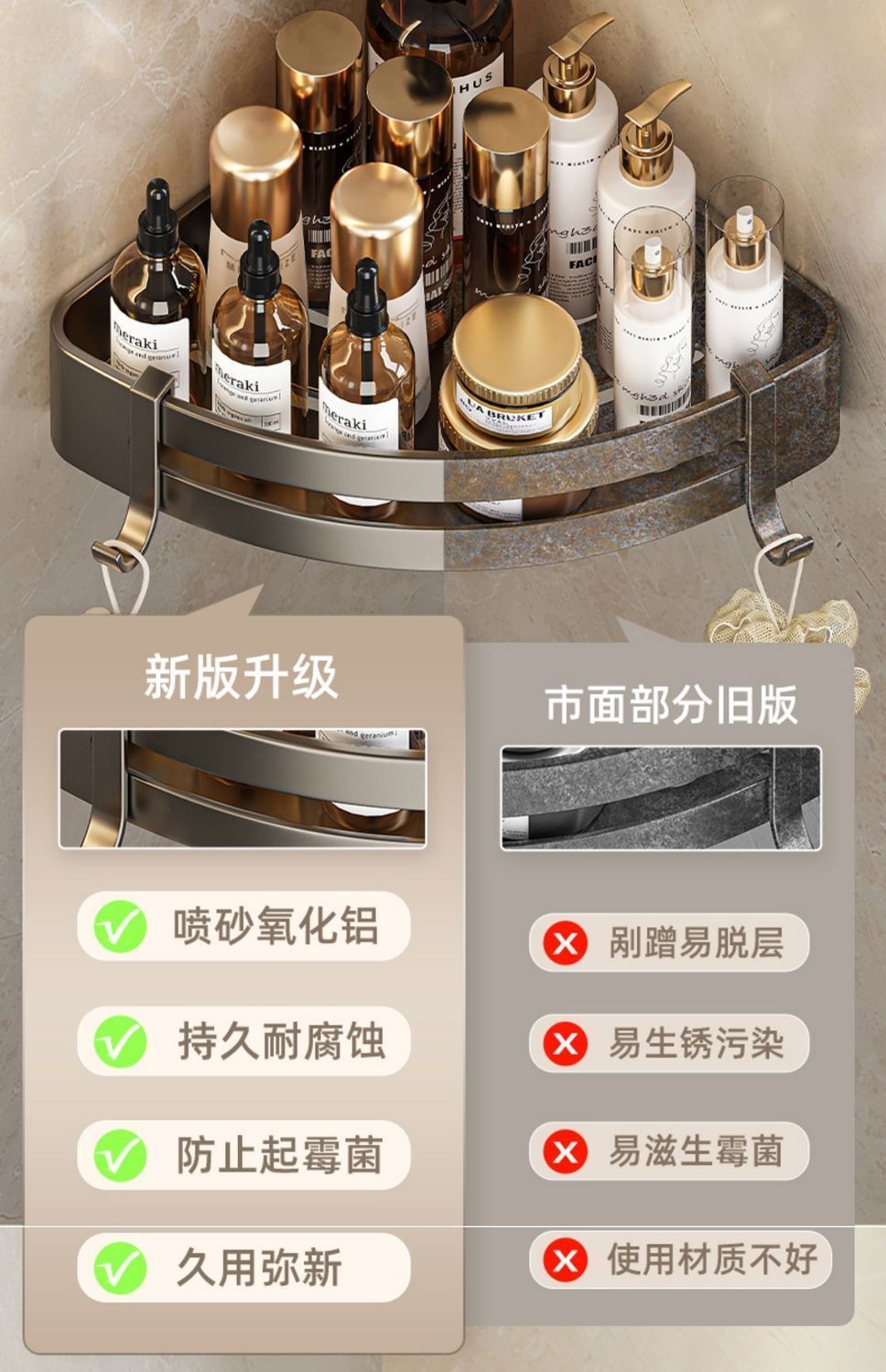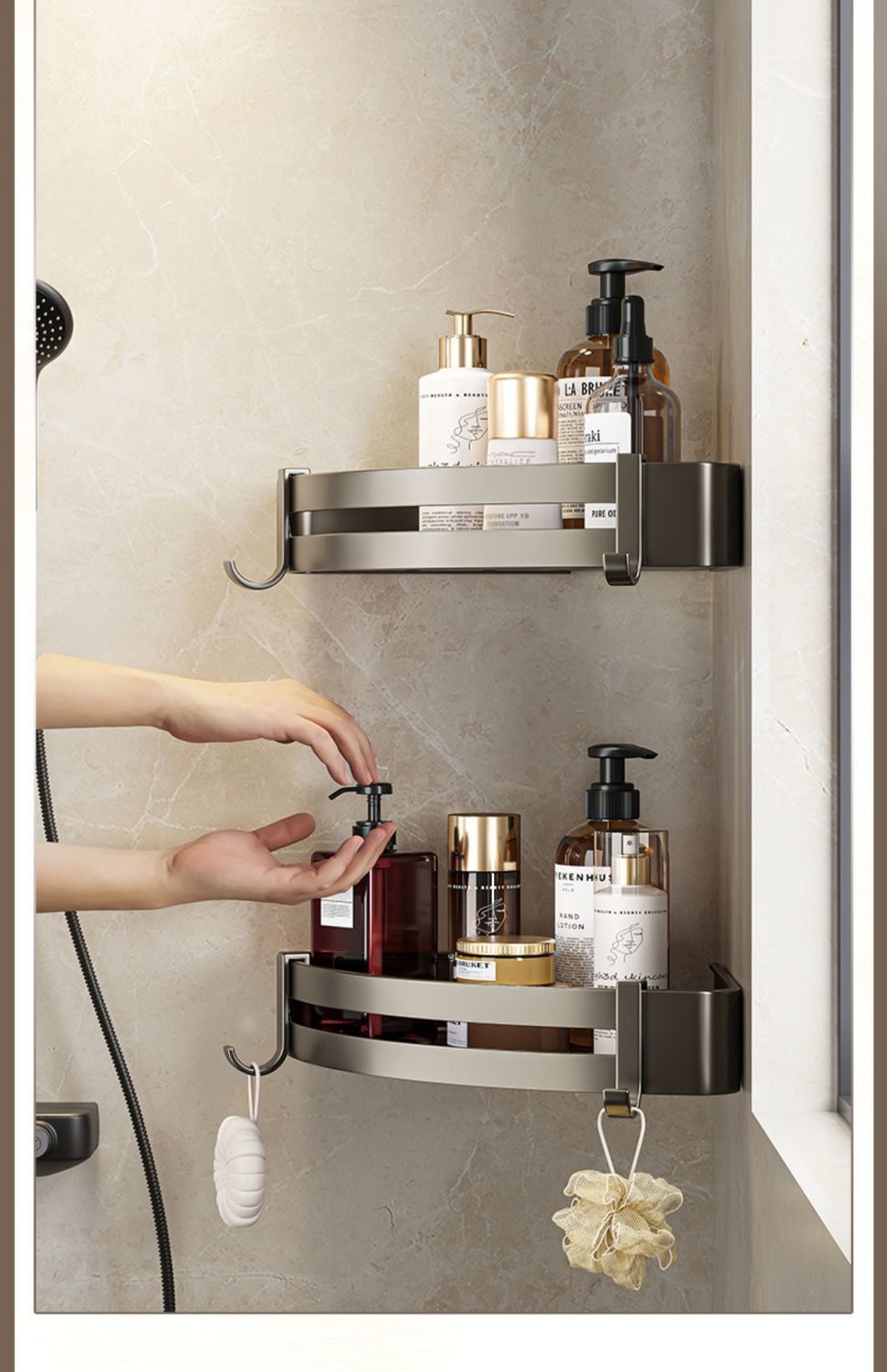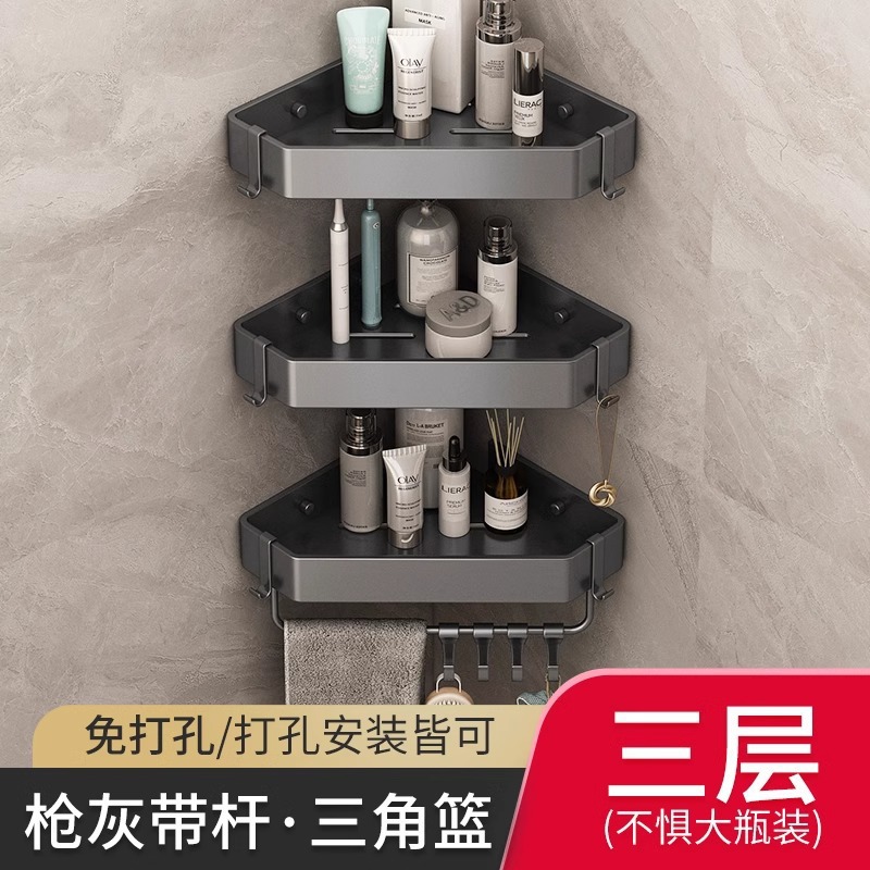 枪灰卫生间浴室置物架三角免打孔墙角厕所洗漱台淋浴房洗澡间收纳