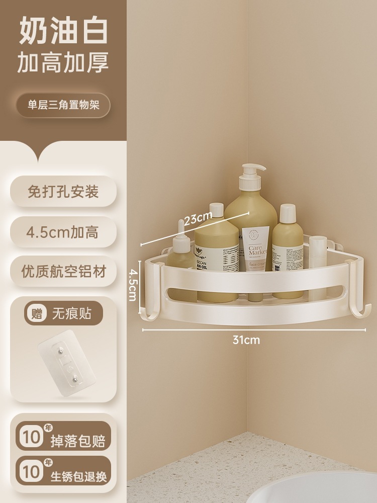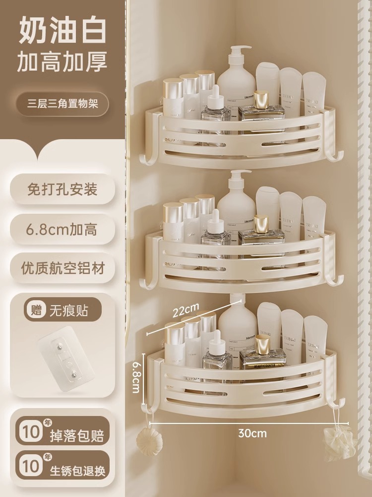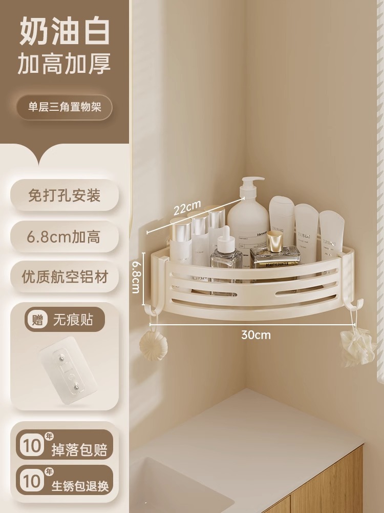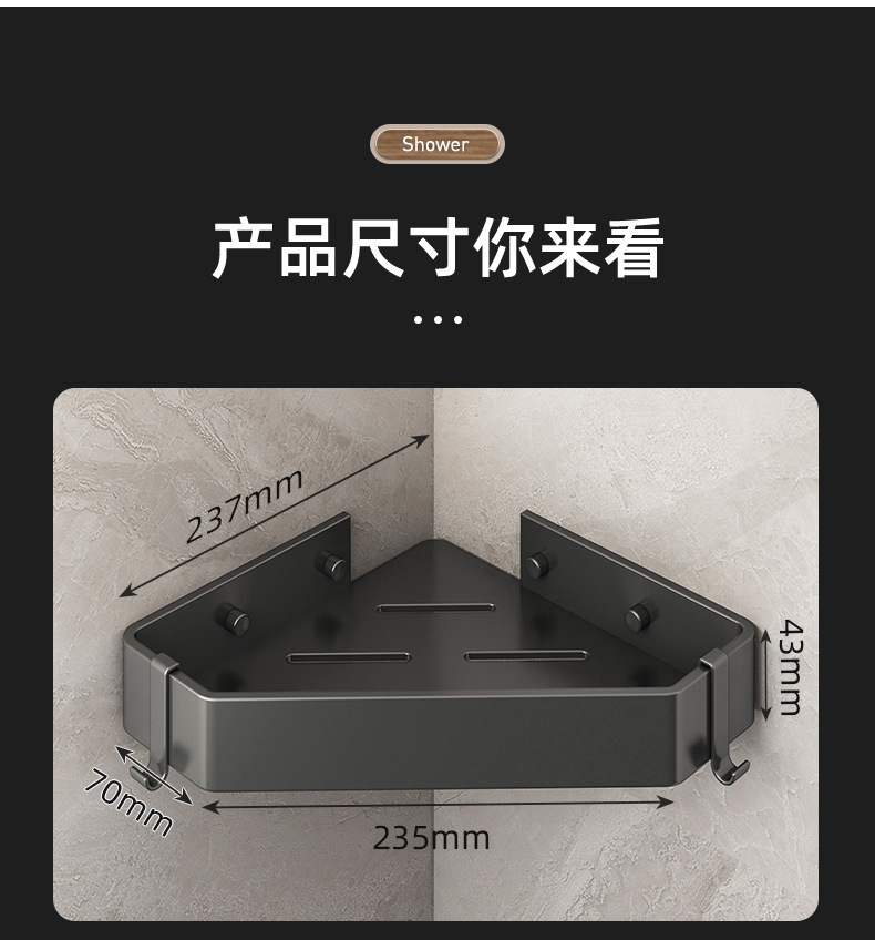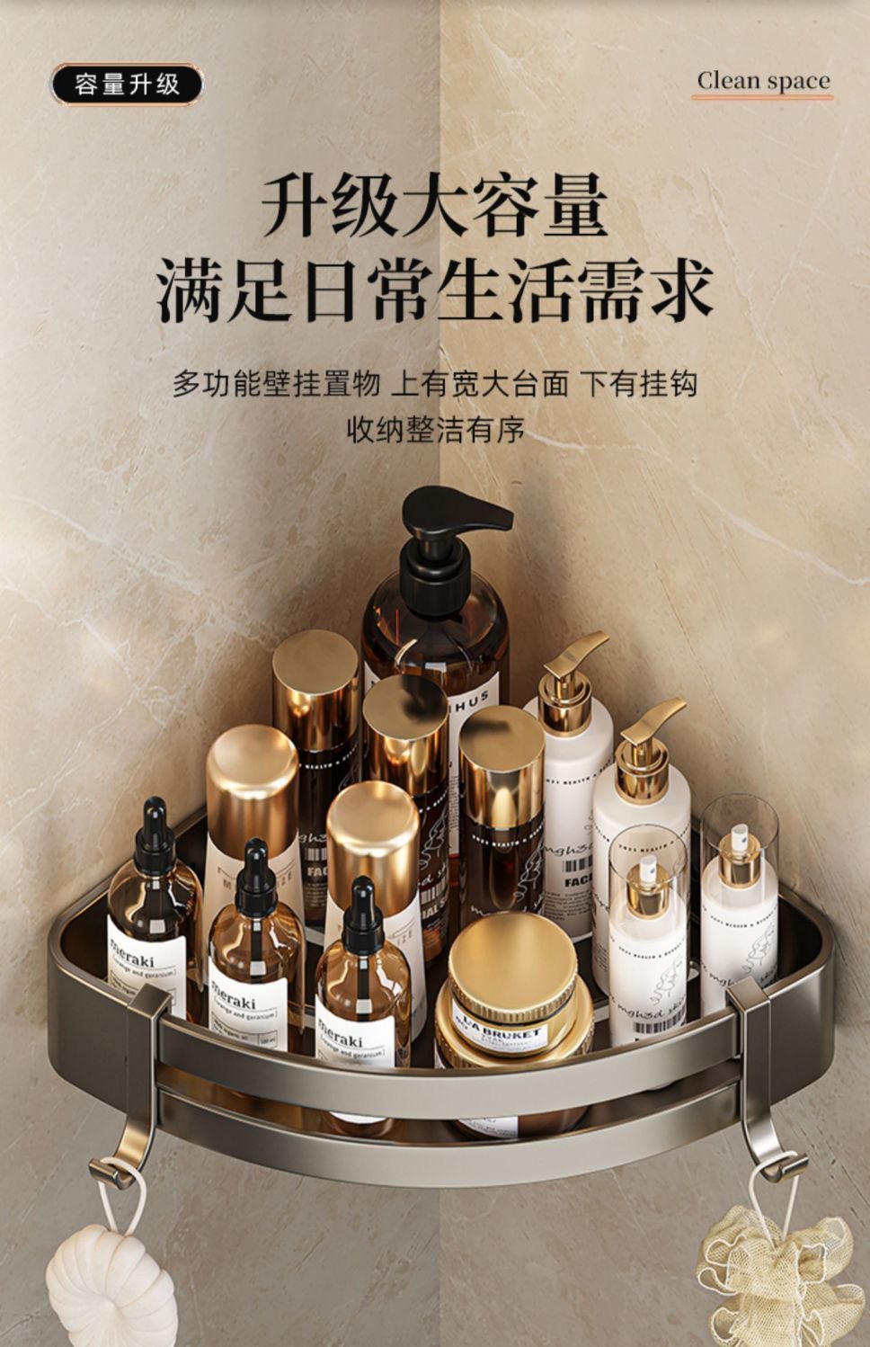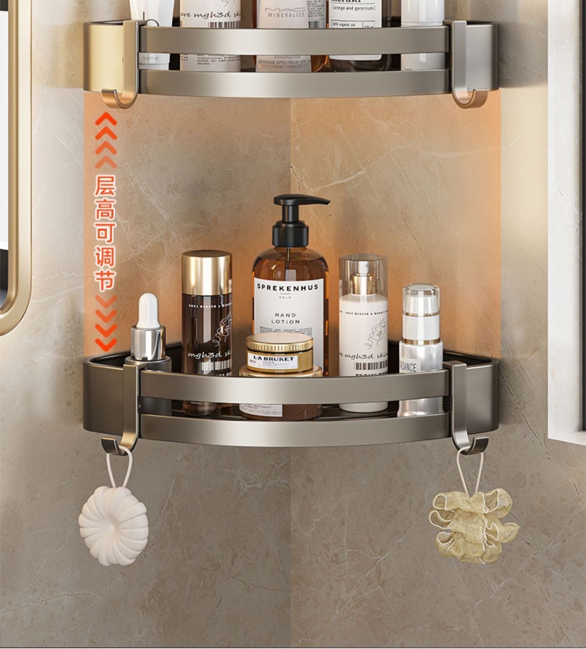 枪灰卫生间浴室置物架三角免打孔墙角厕所洗漱台淋浴房洗澡间收纳