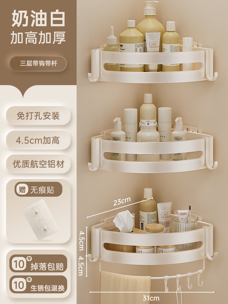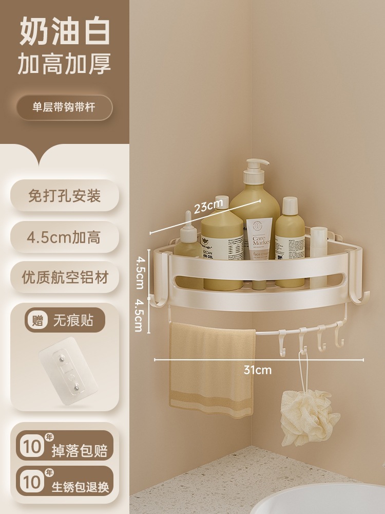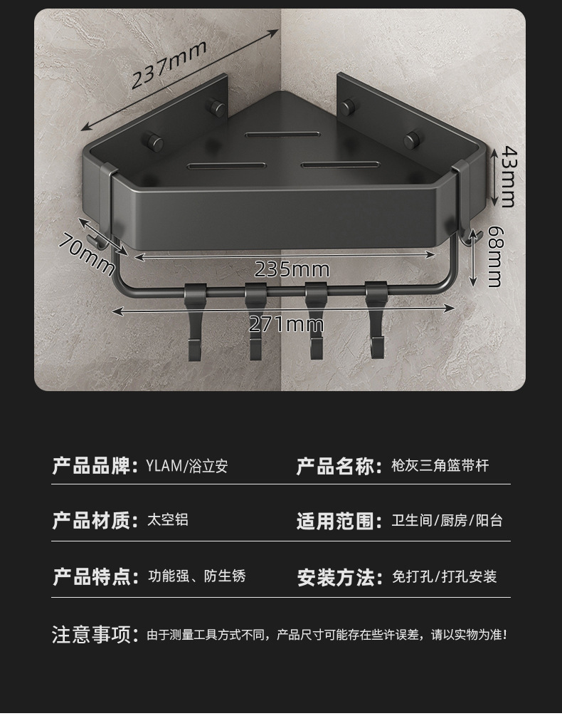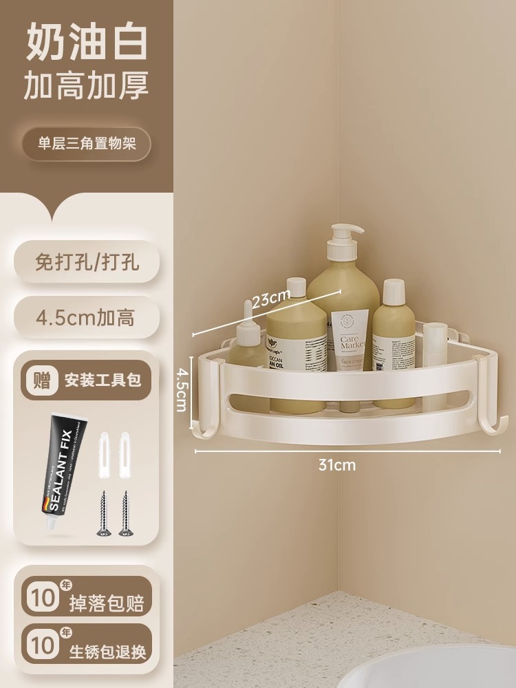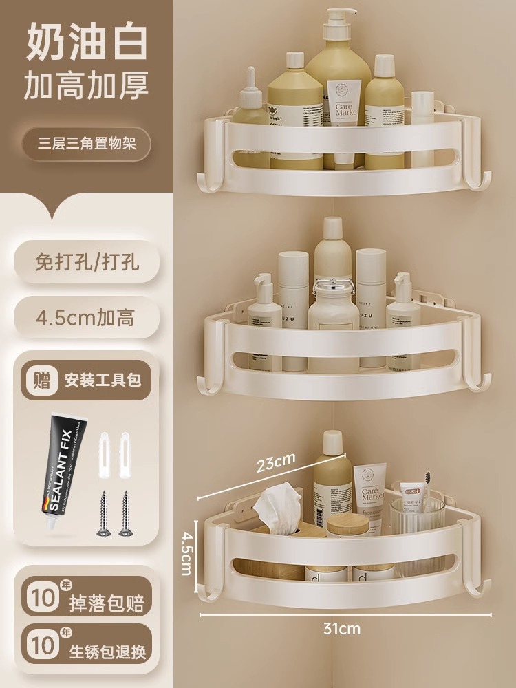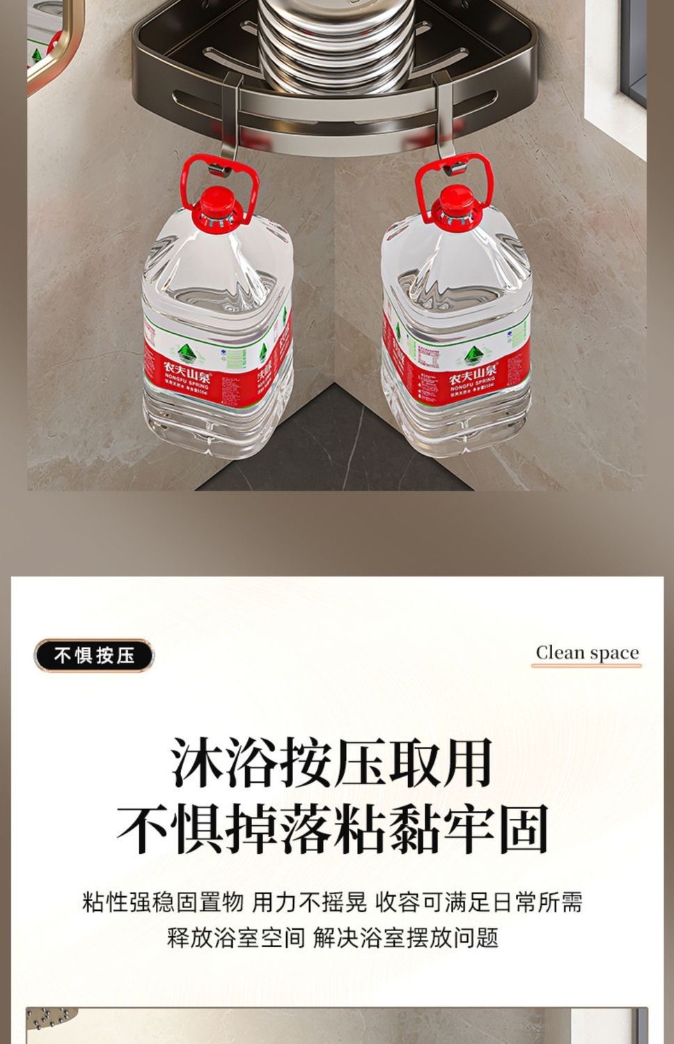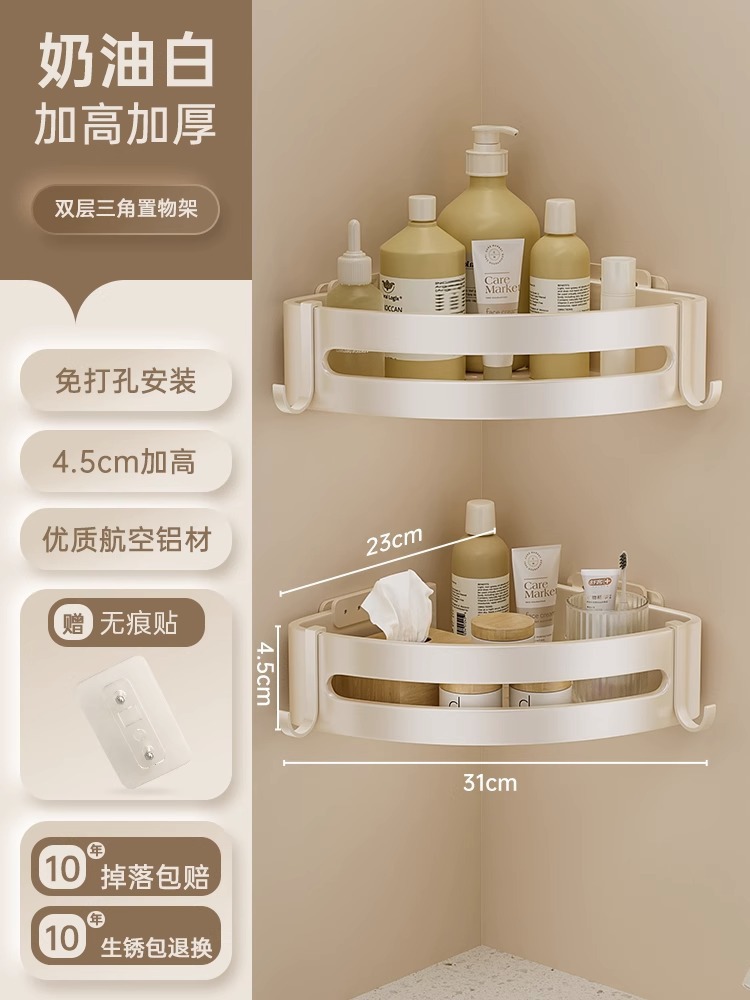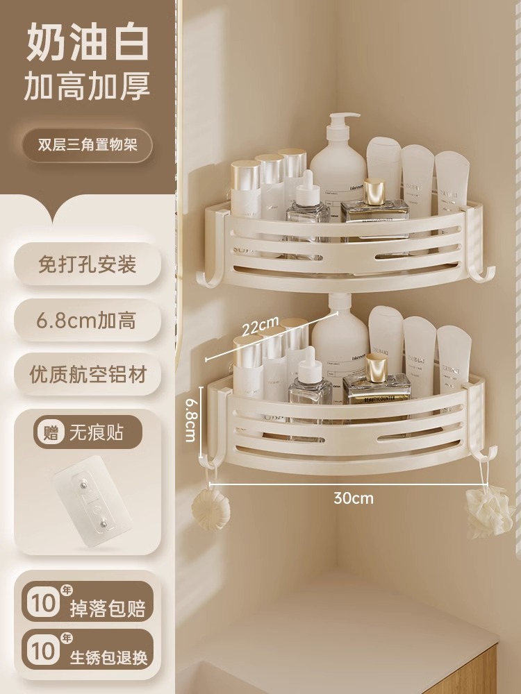 枪灰卫生间浴室置物架三角免打孔墙角厕所洗漱台淋浴房洗澡间收纳