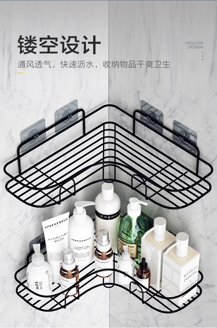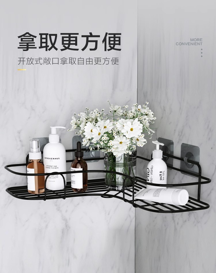 跨境贴标三角置物架免打孔浴室置物架厨房收纳架三角置物架免打孔