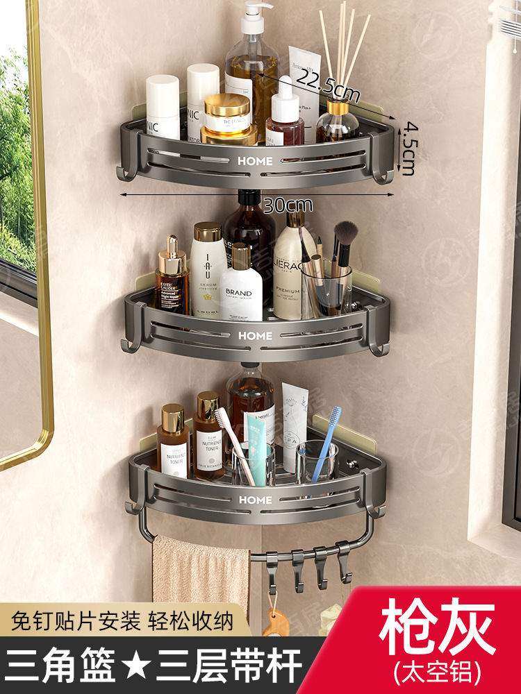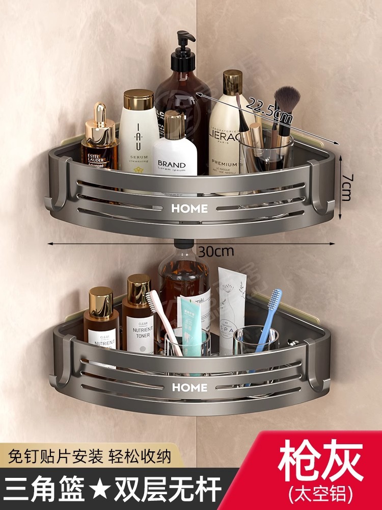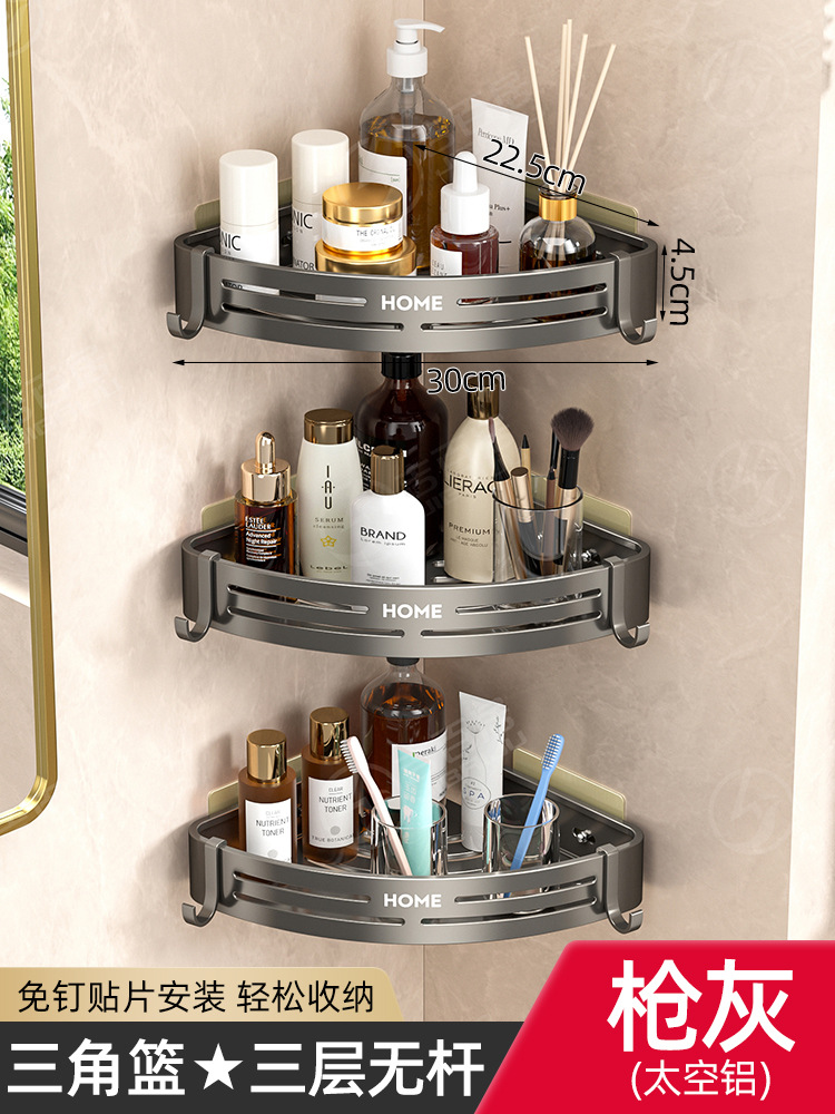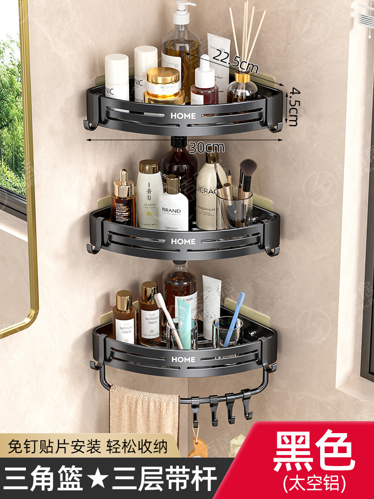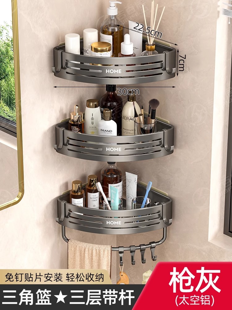 厂家供应卫生间置物架子免打孔浴室淋浴房三角篮厕所转角收纳架
