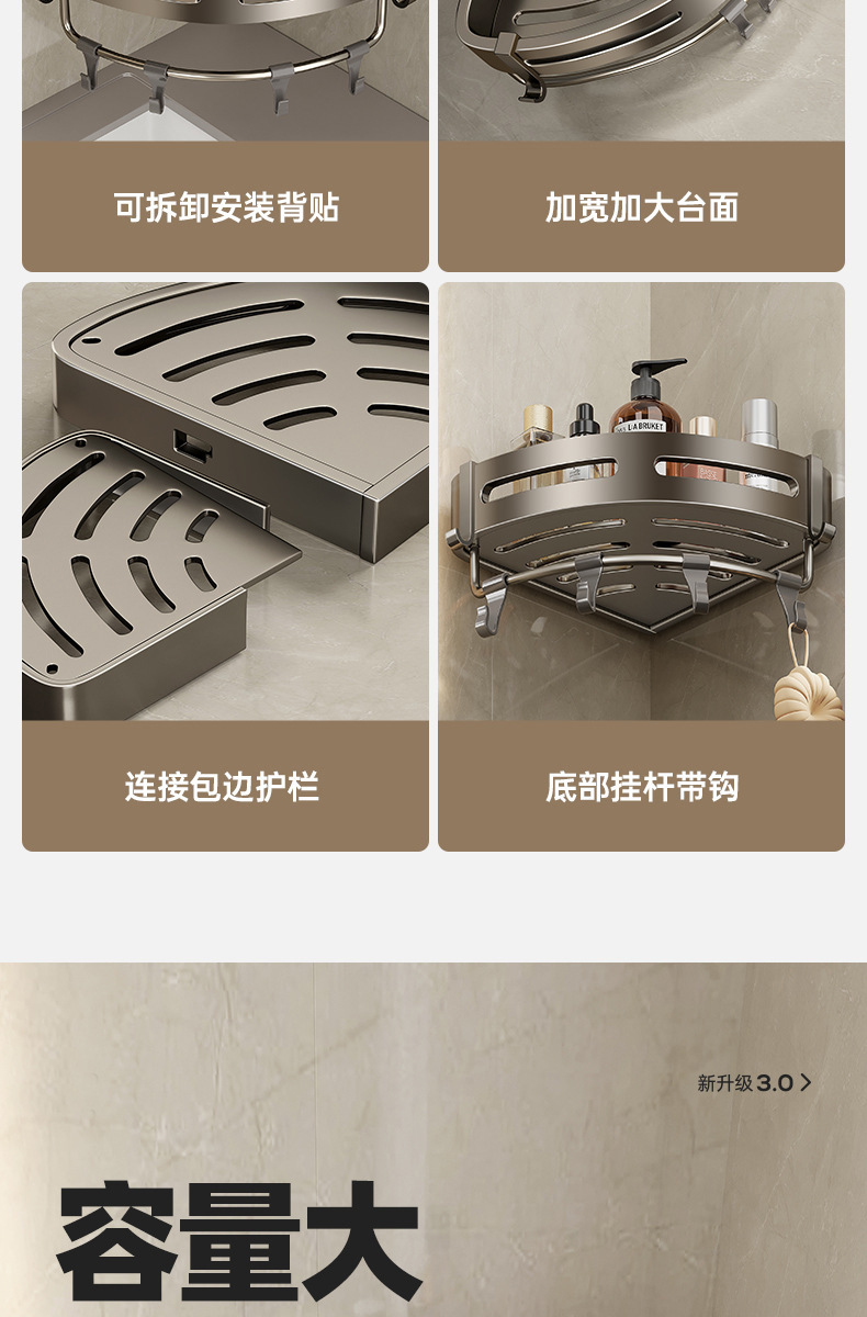 可拆卸卫生间置物架三角浴室墙角架子免打孔厕所壁挂式洗手间收纳