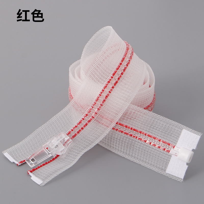 工厂批发3#5#8#号透明牙树脂拉链网纱边开尾拉锁防晒服门襟拉链条