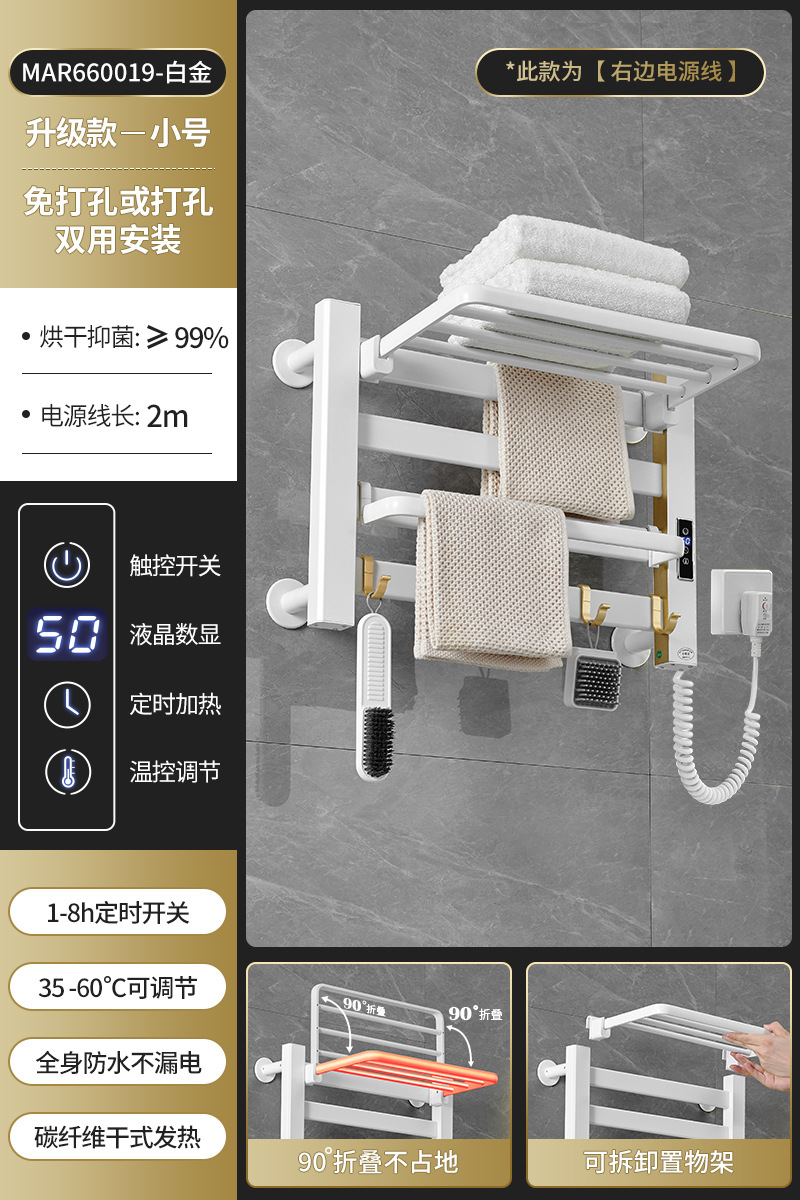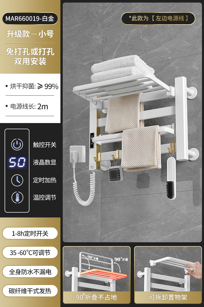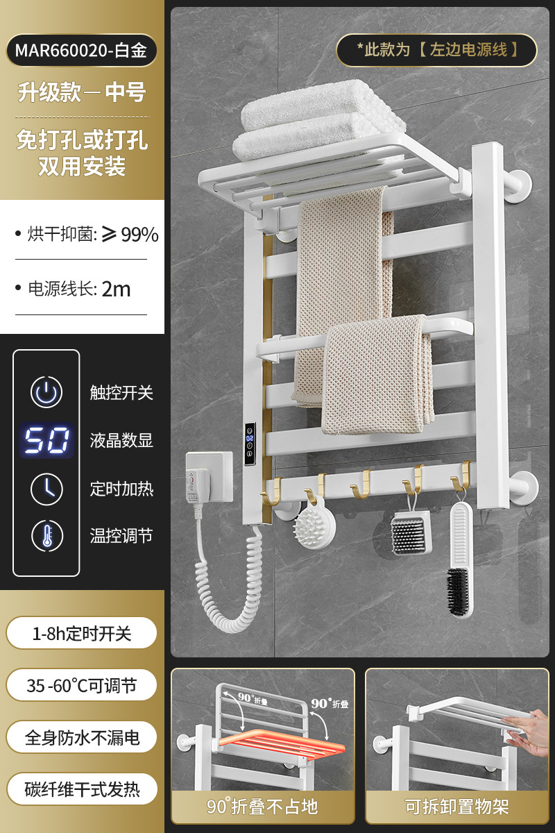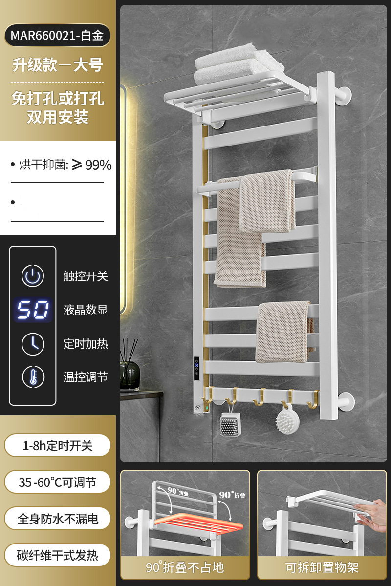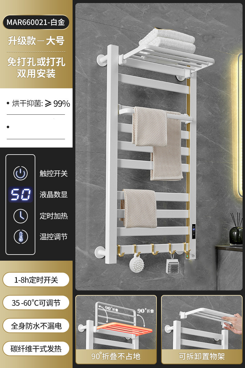 跨境电热毛巾架浴室置物架白色碳纤维酒店卫生间智能烘干架神器
