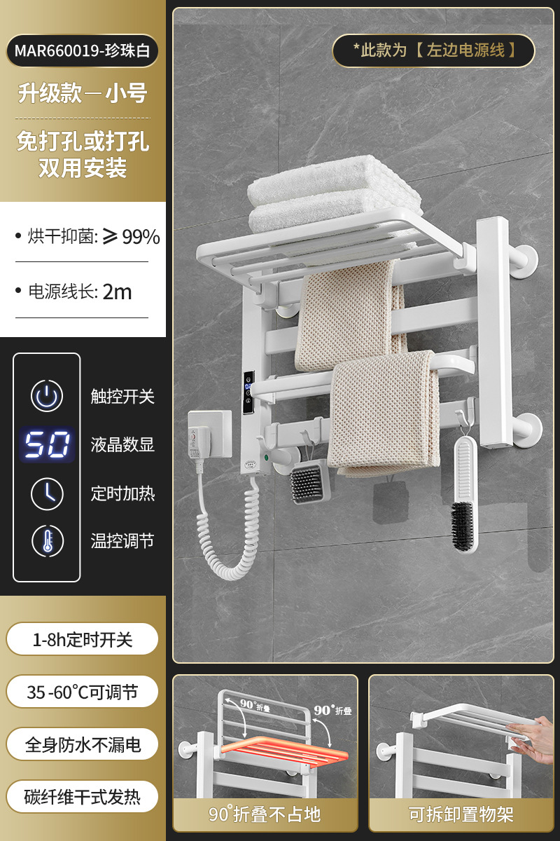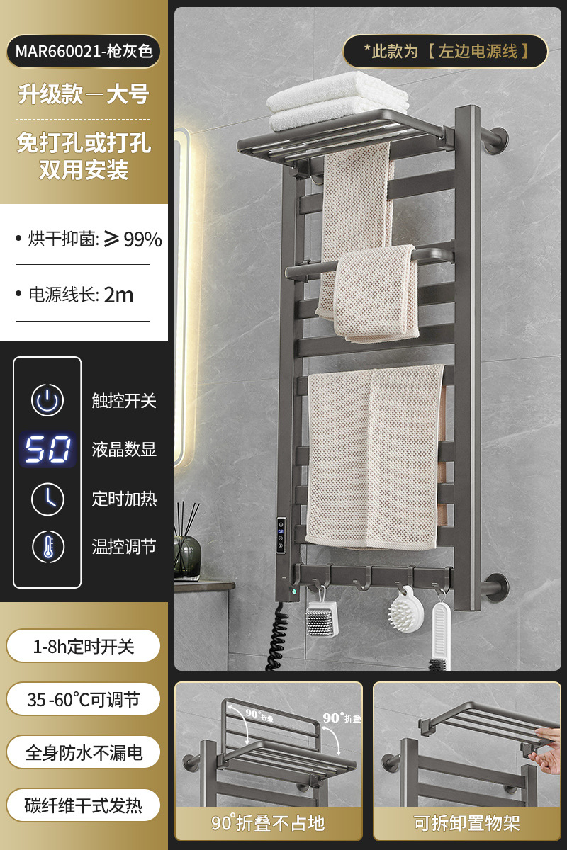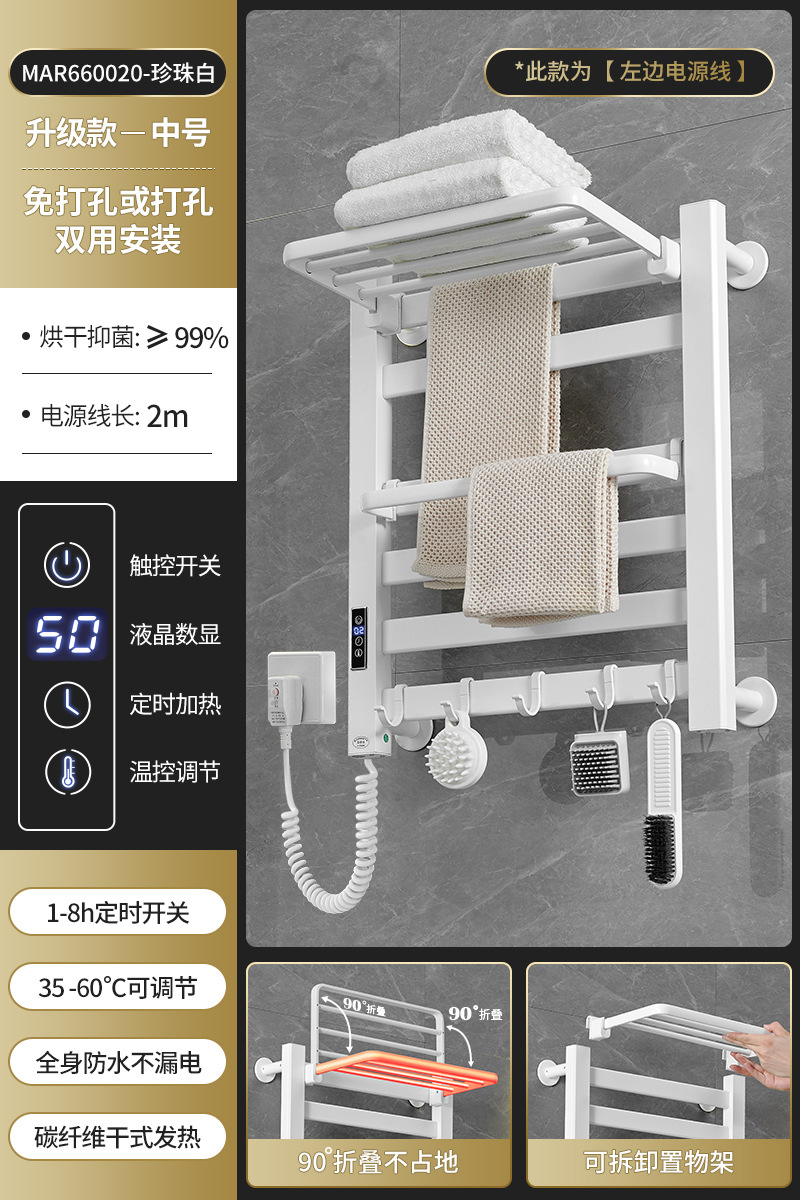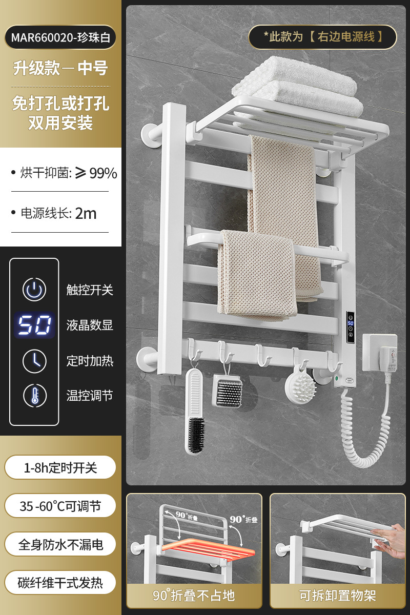 跨境电热毛巾架浴室置物架白色碳纤维酒店卫生间智能烘干架神器