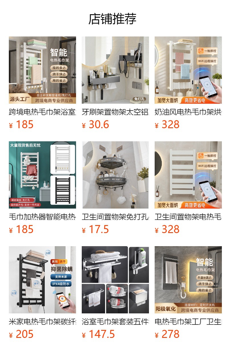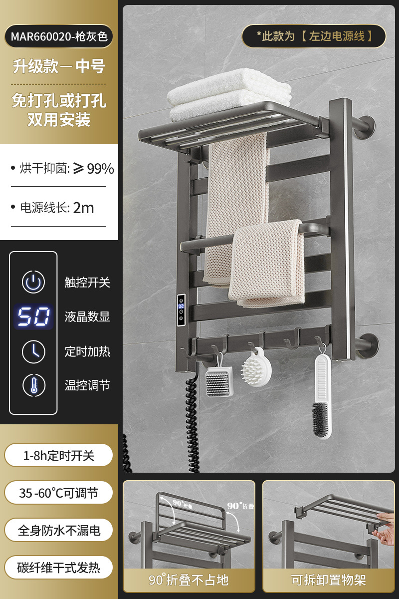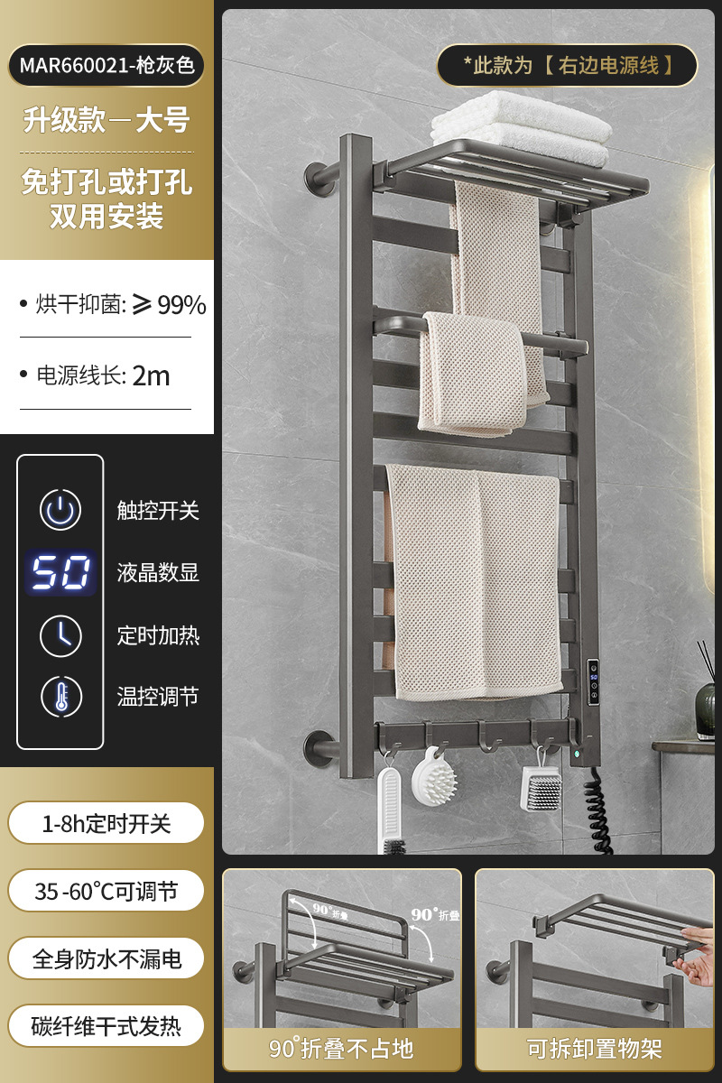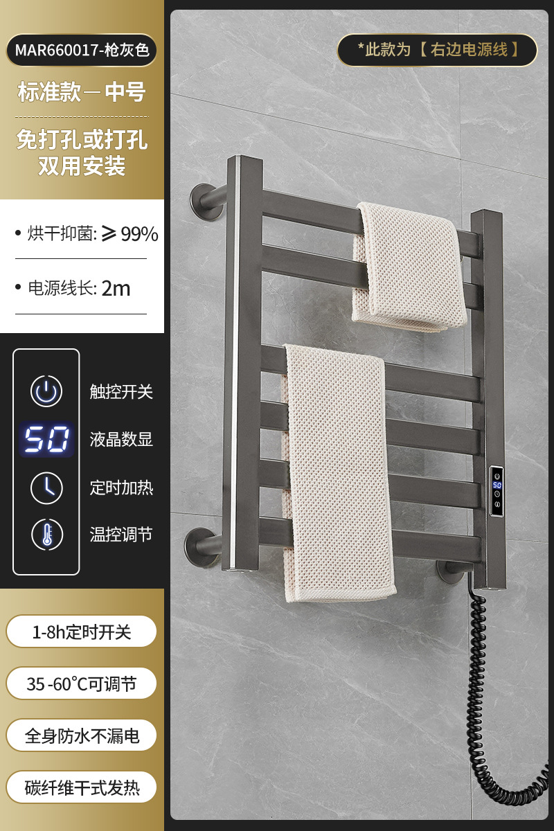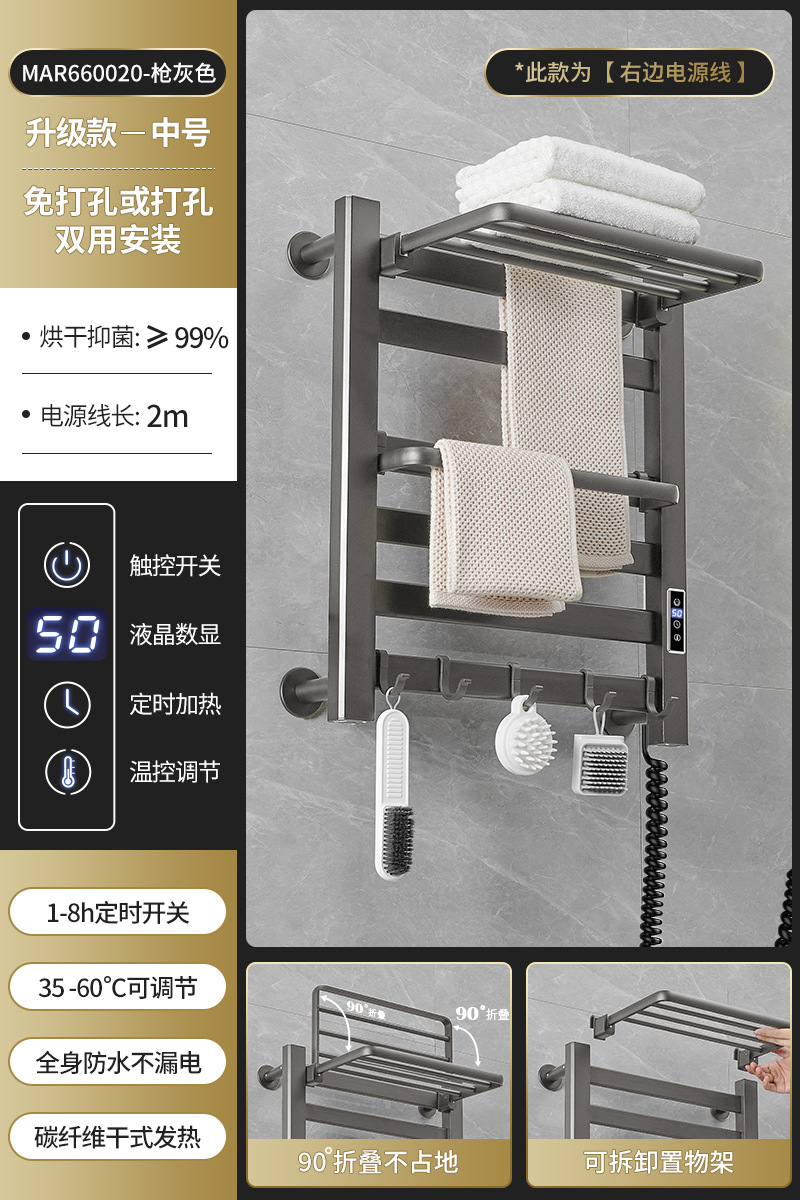 跨境电热毛巾架浴室置物架白色碳纤维酒店卫生间智能烘干架神器