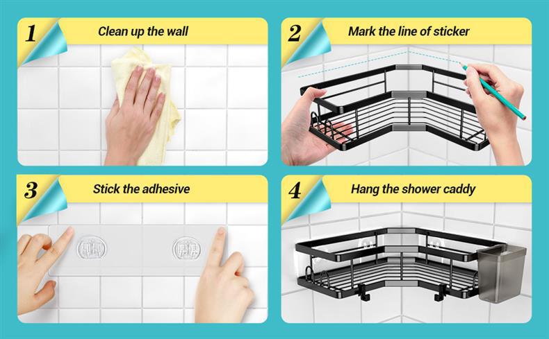 跨境厨房转角架淋浴房收纳架子免打孔卫生间浴室三角置物架壁挂式