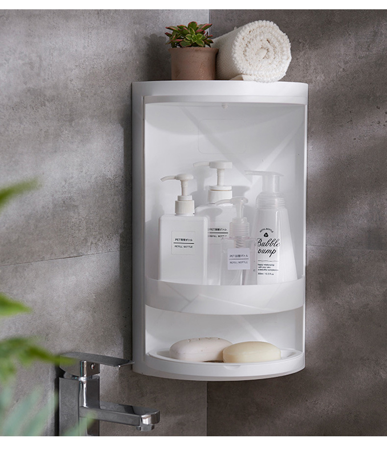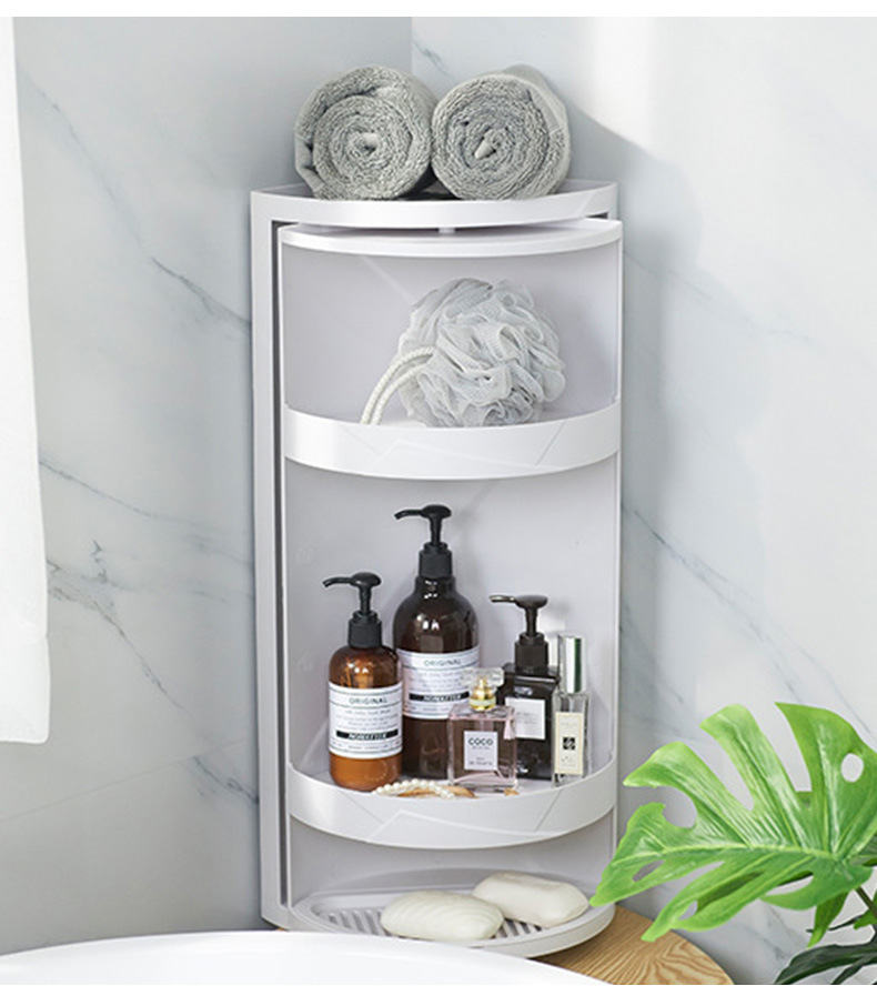 批发创意浴室旋转置物架 三角塑料厨房收纳架 卫生间护肤品整理架