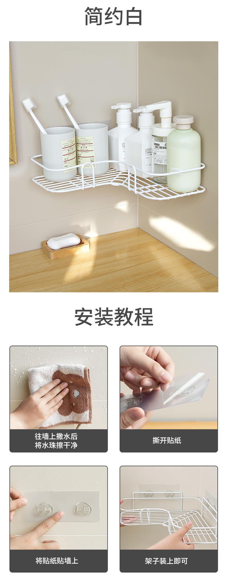 免打孔卫生间置物架墙上厨房浴室厕所沥水篮牙刷架洗手间三角壁挂