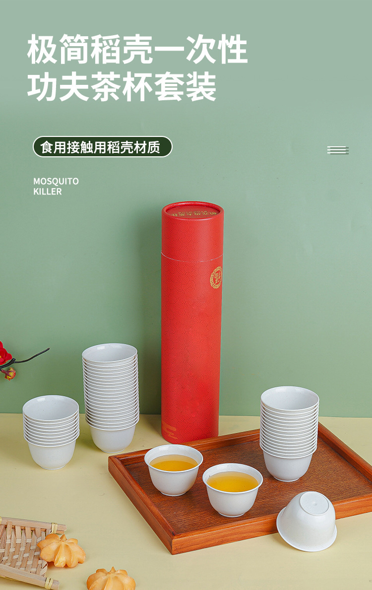 2024年新款茶杯杯架极简加厚耐高温一次性可降解稻壳功夫茶杯套装