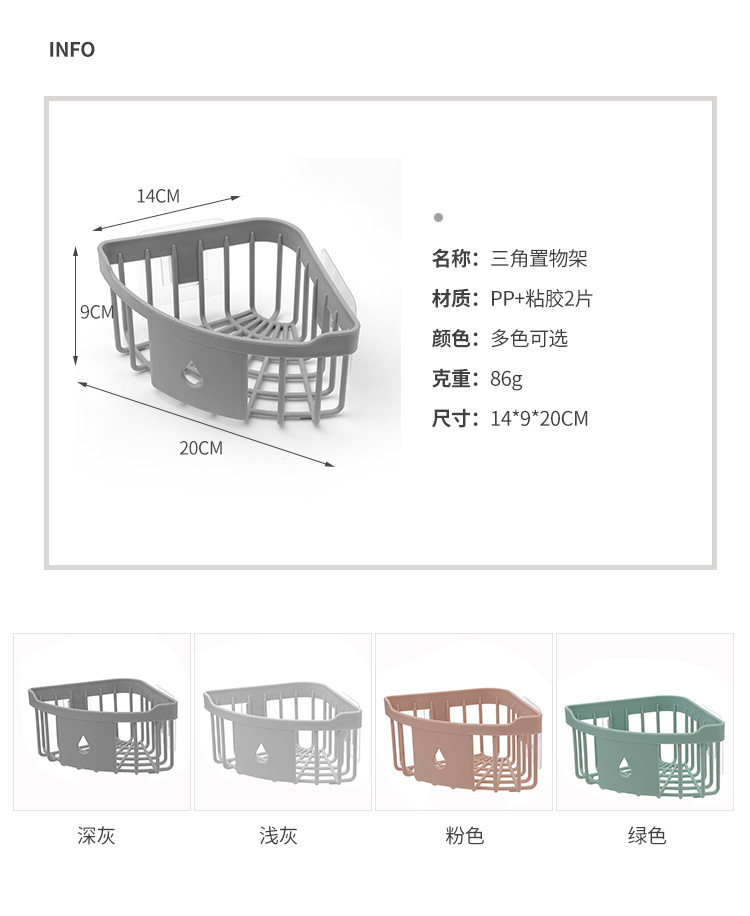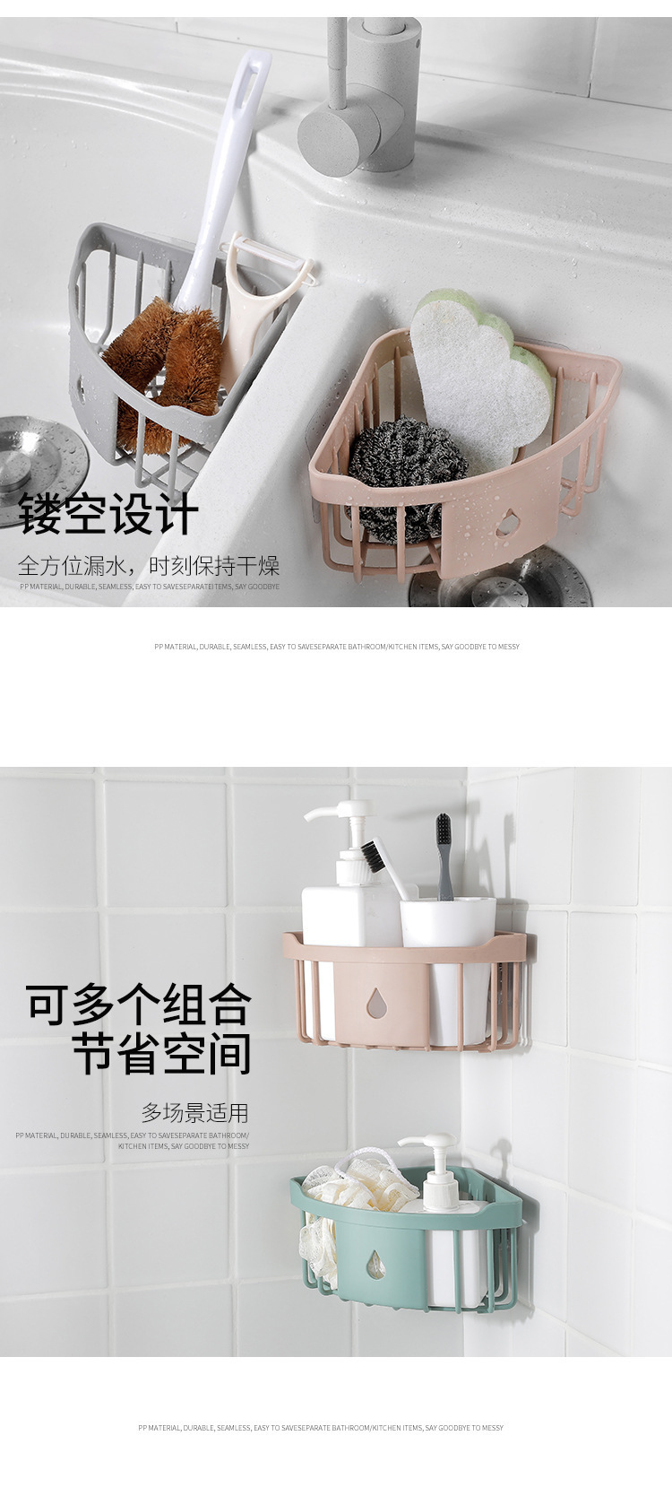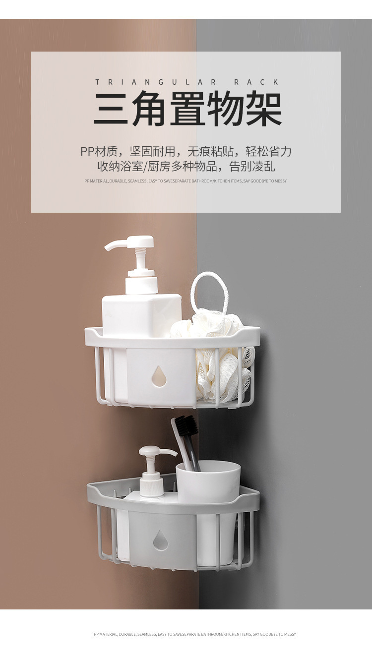 卫生间浴室置物架壁挂免打孔厕所墙角洗手间洗澡洗漱台三角收纳架