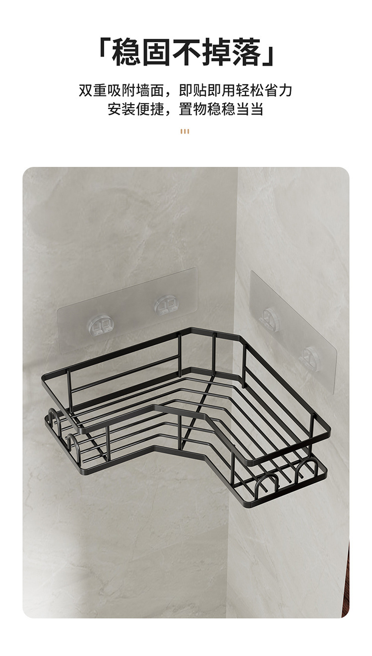 跨境专供浴室三角置物架卫生间免打孔转角置物架淋浴房墙角收纳架