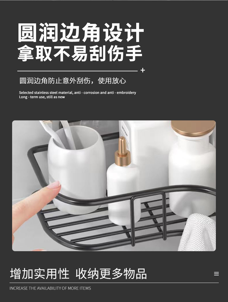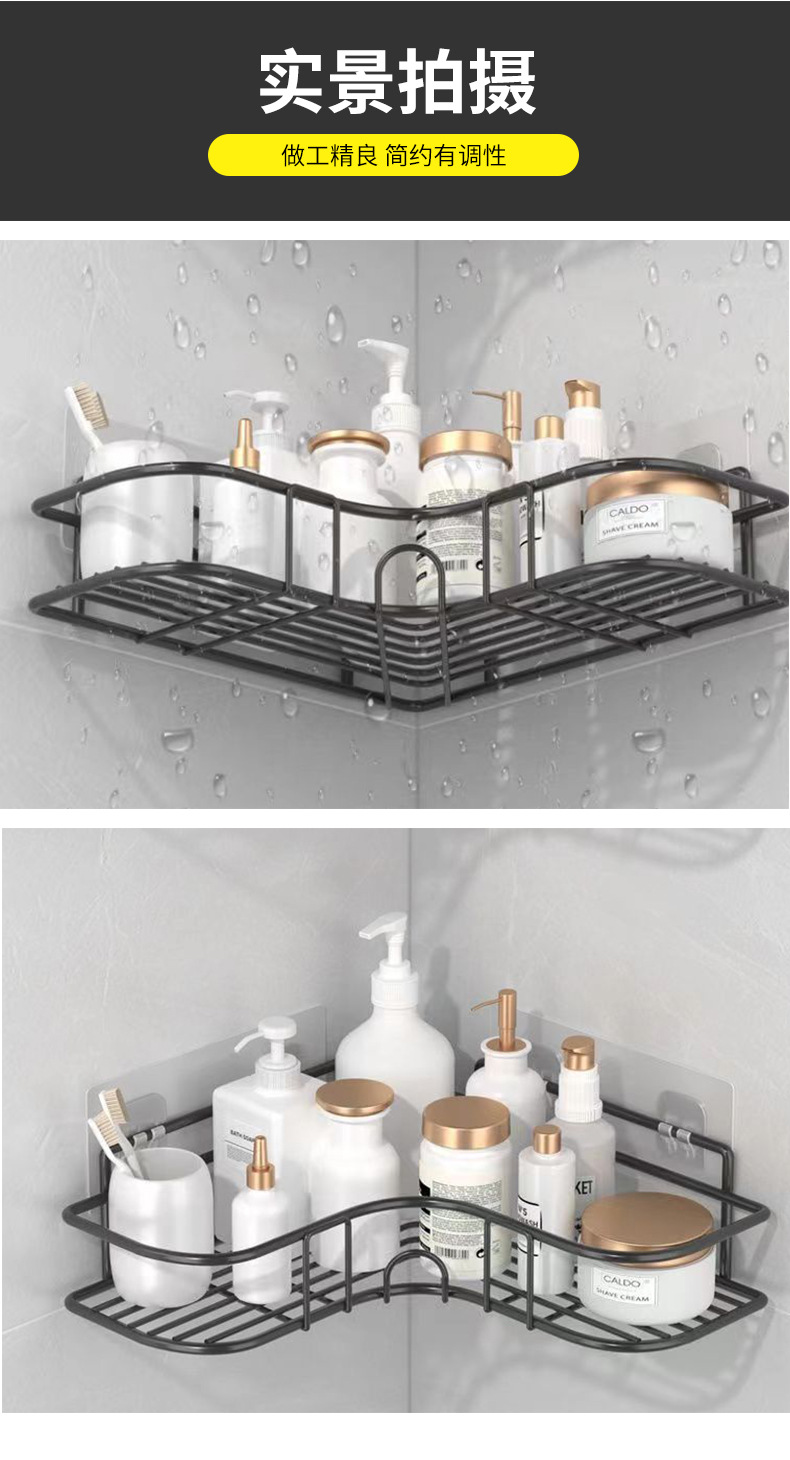 跨境三角壁挂免打孔收纳架卫生间浴室转角置物架厕所洗澡间收纳