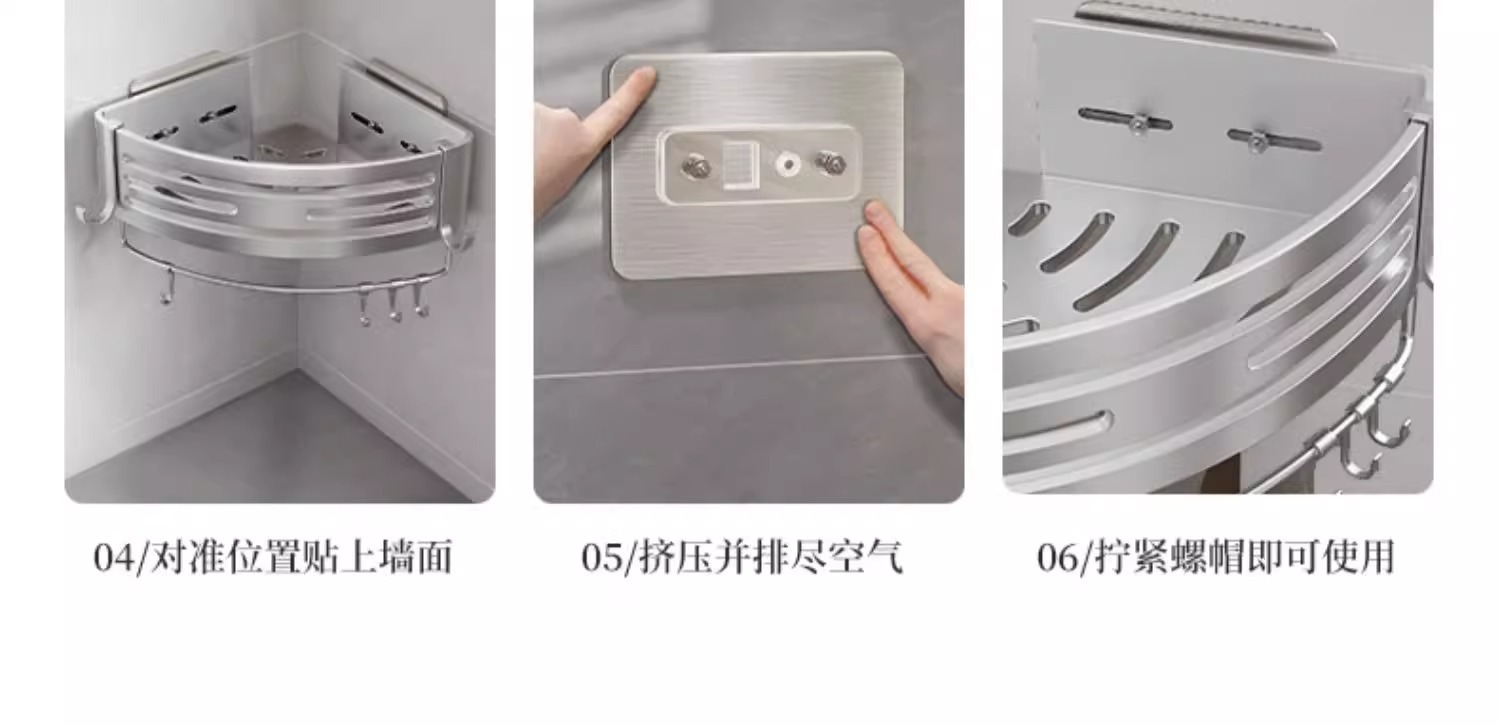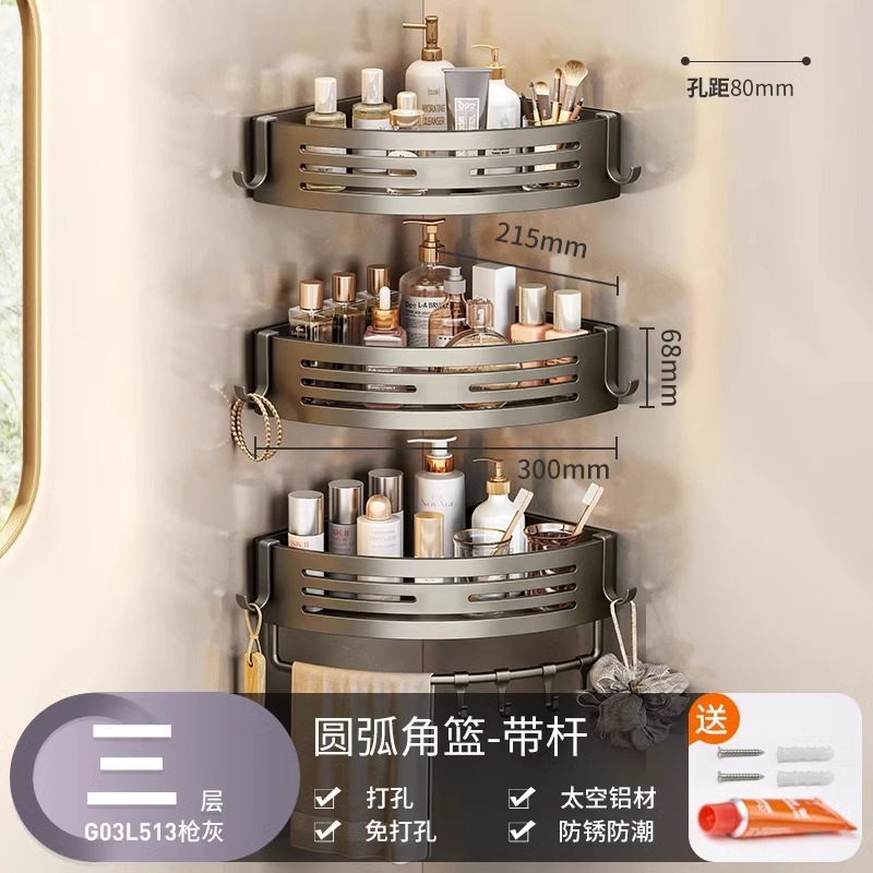 枪灰浴室置物架太空铝免打孔三角转角篮厕所洗漱壁挂收纳蓝卫生间