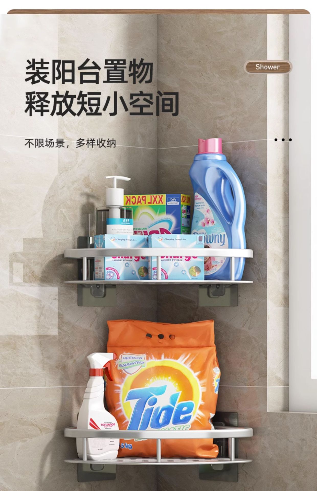 免打孔卫生间浴室三角置物架壁挂式厕所洗手间洗漱台墙上收纳挂架