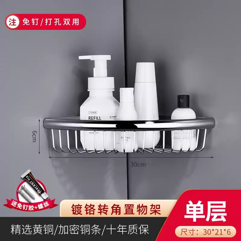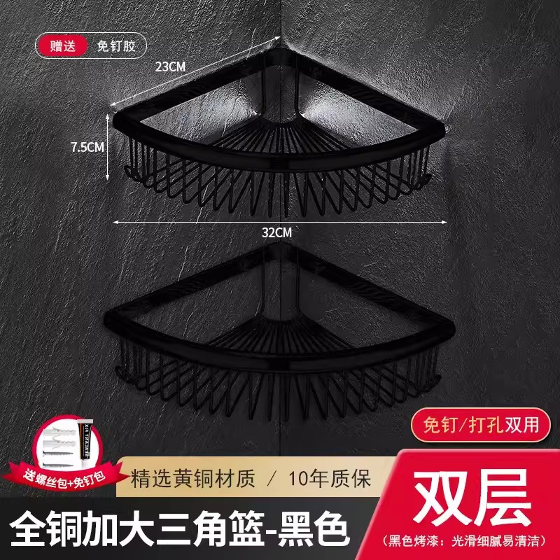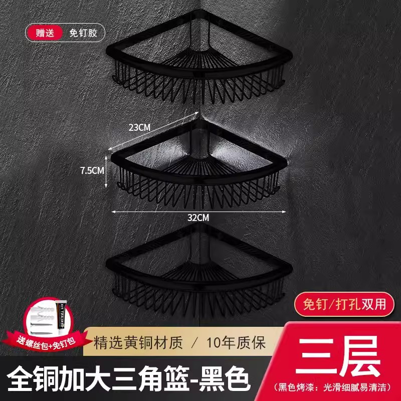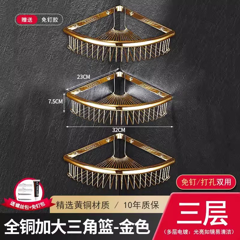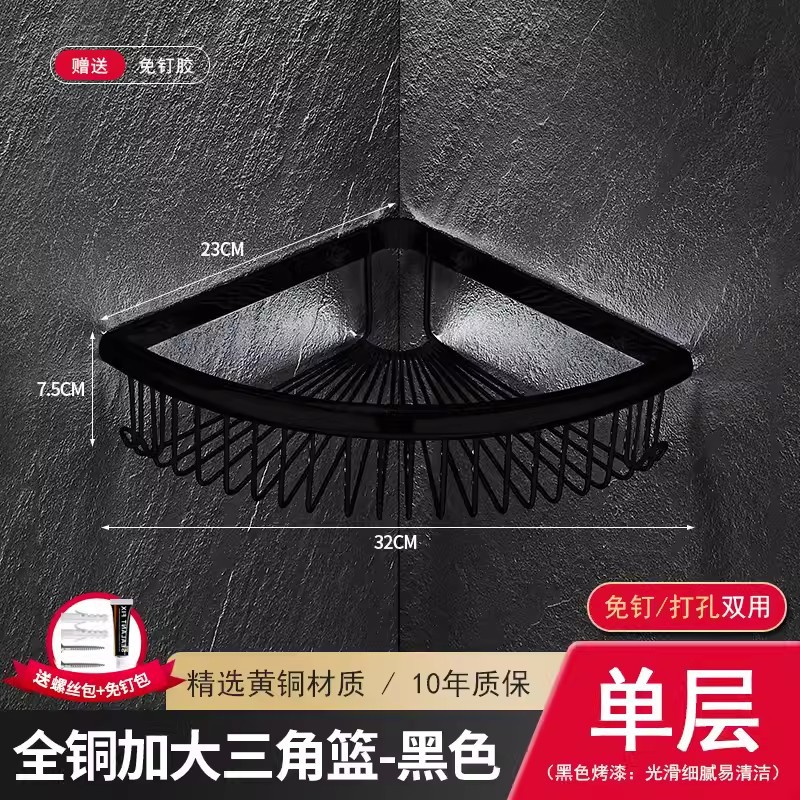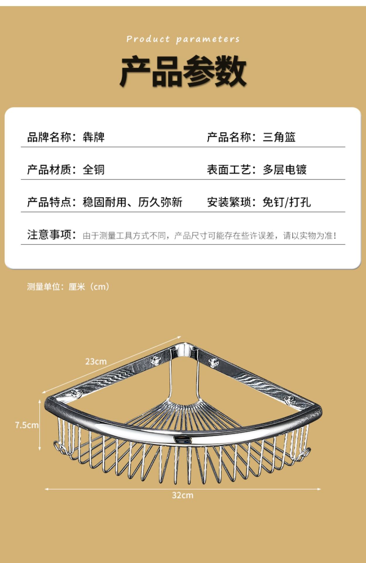 全铜浴室置物架免打孔卫生间壁挂三角篮厕所壁挂转角收纳架子网篮