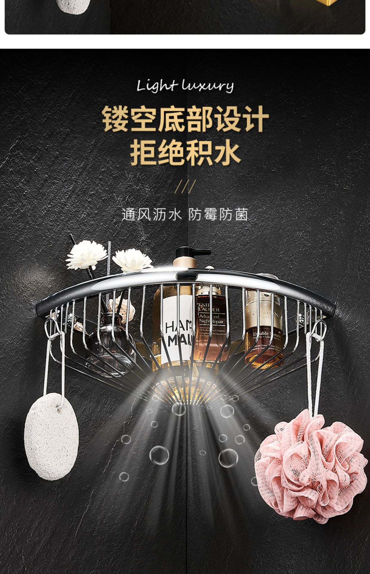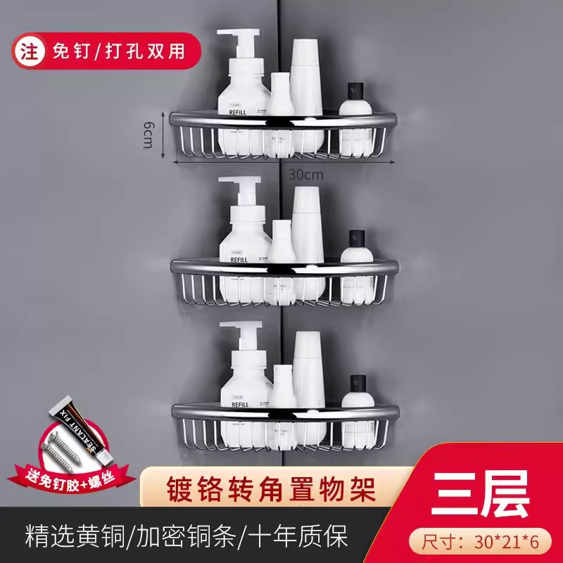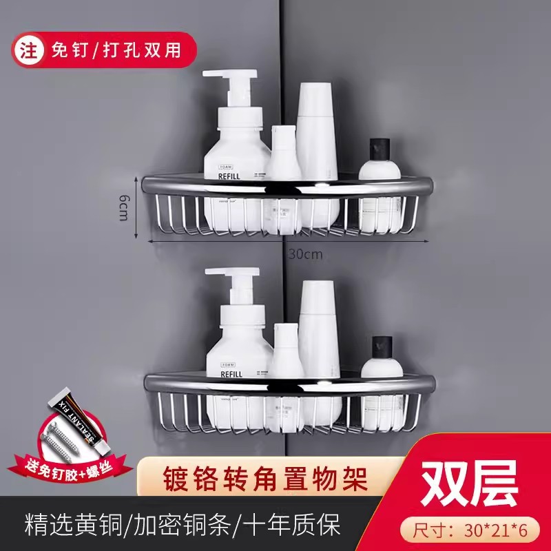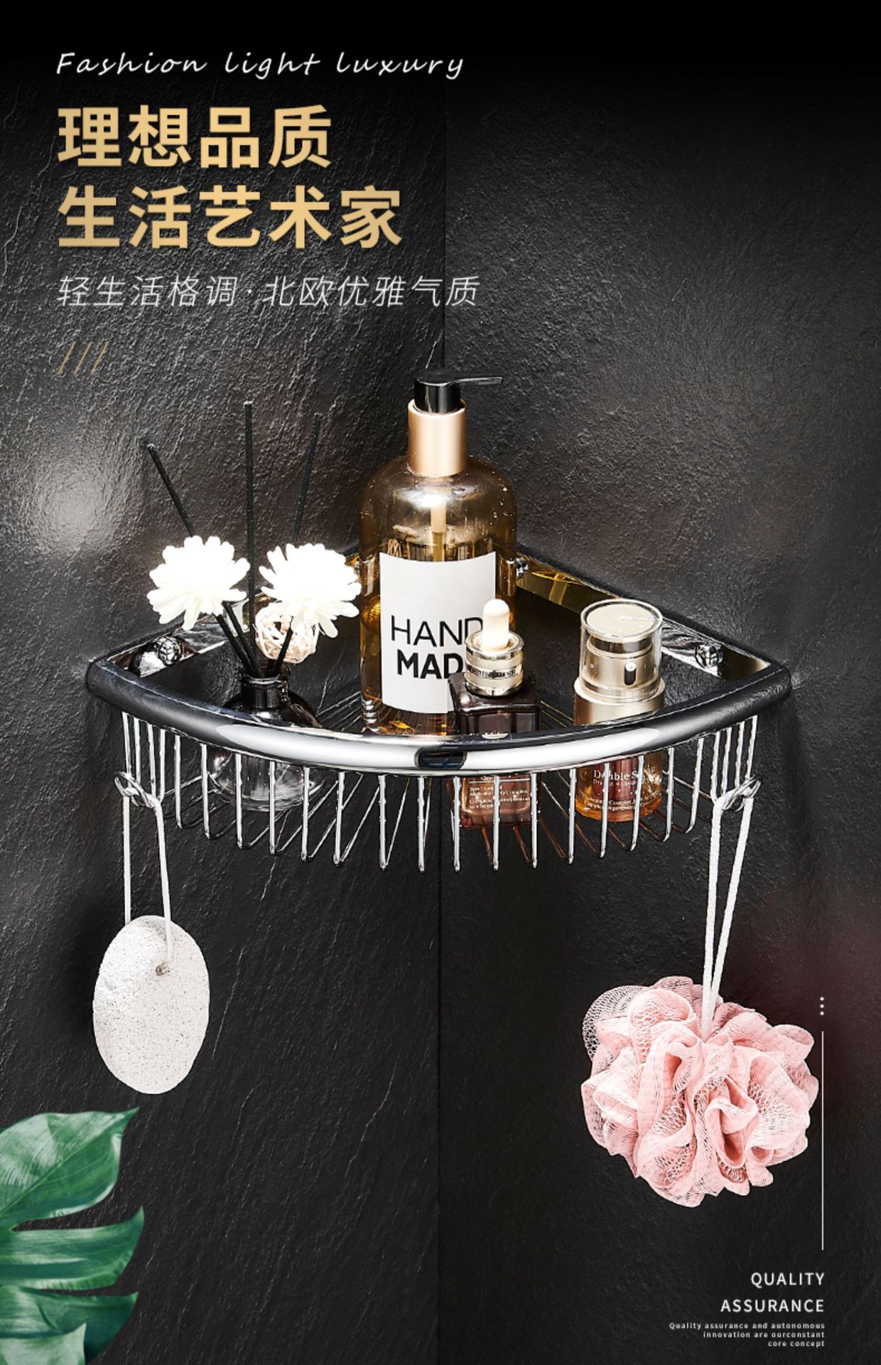 全铜浴室置物架免打孔卫生间壁挂三角篮厕所壁挂转角收纳架子网篮