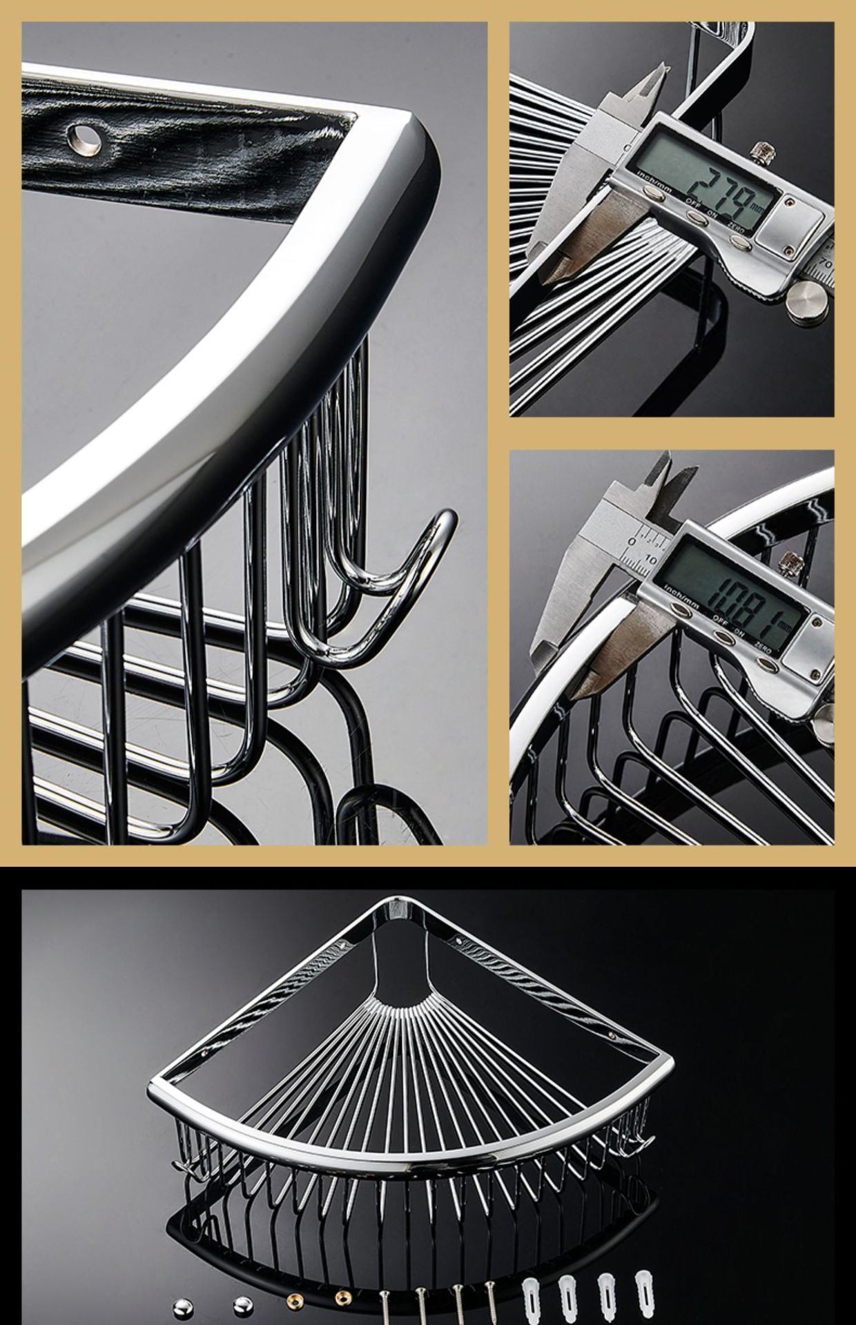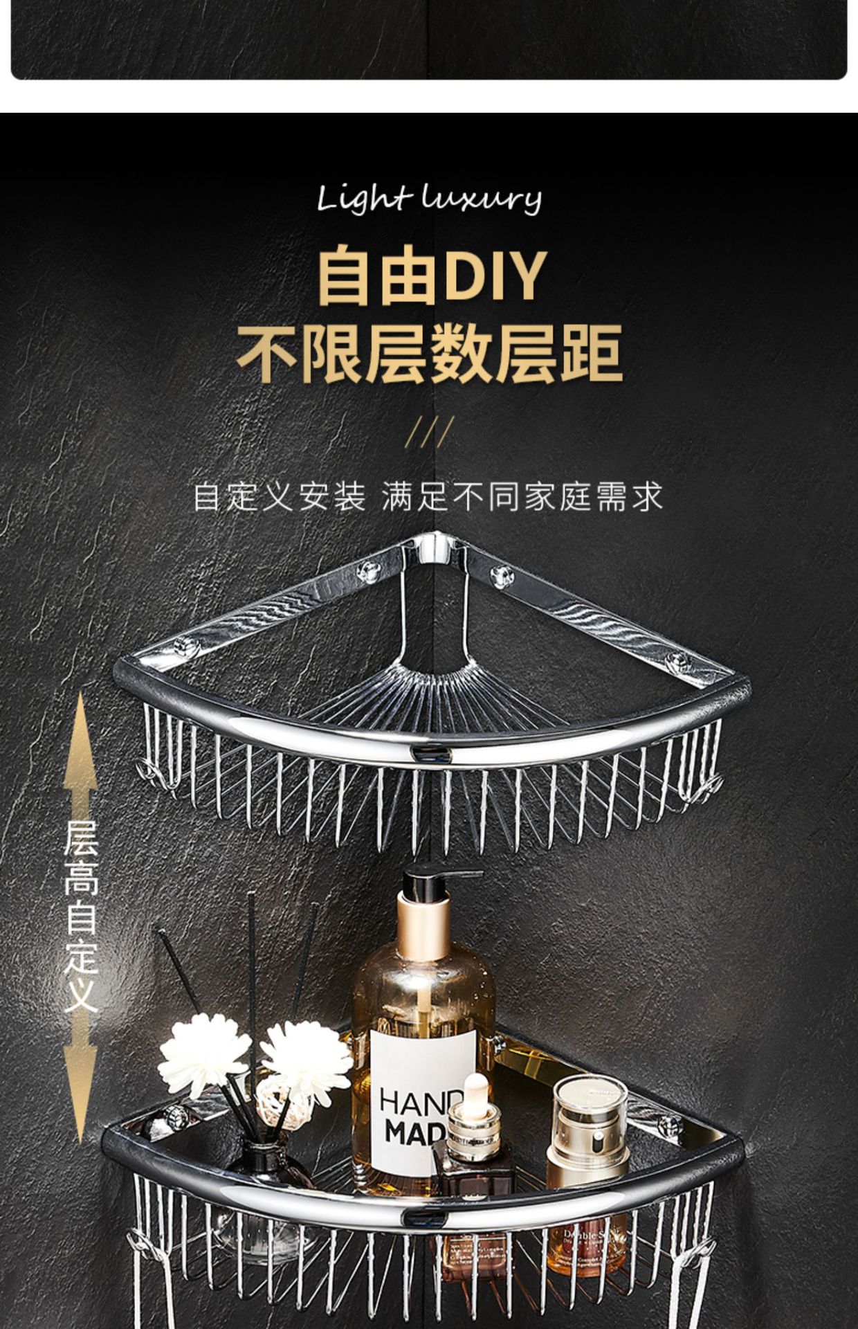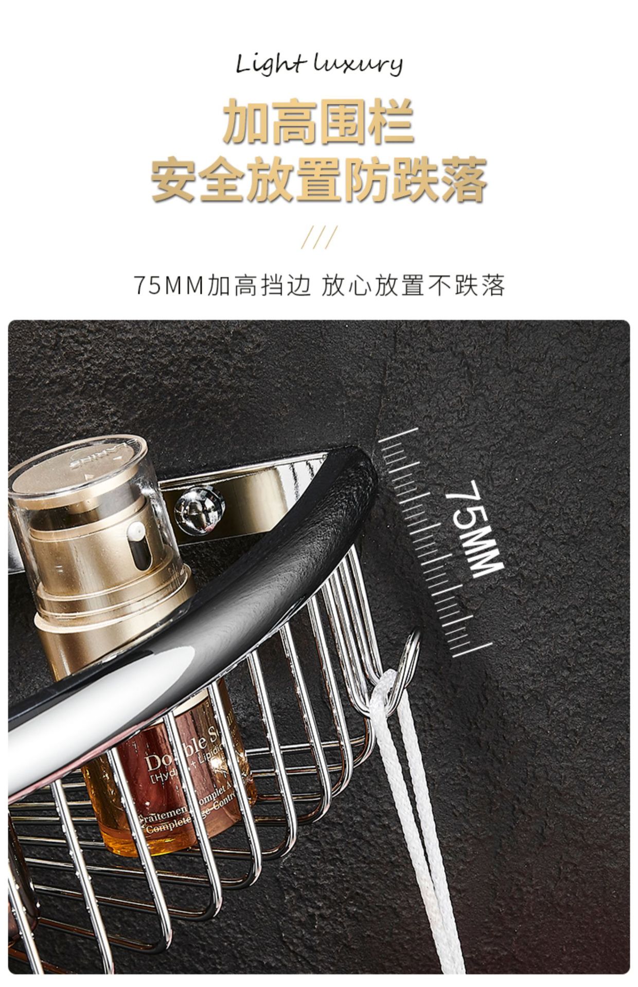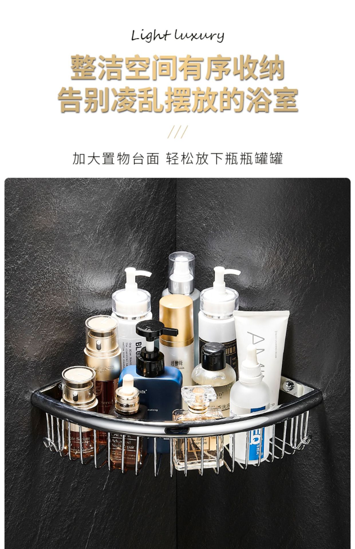 全铜浴室置物架免打孔卫生间壁挂三角篮厕所壁挂转角收纳架子网篮