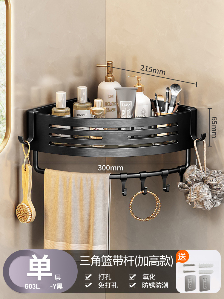 奶油风浴室三角置物架卫生间免打孔太空铝白色转角篮三脚厕所收纳