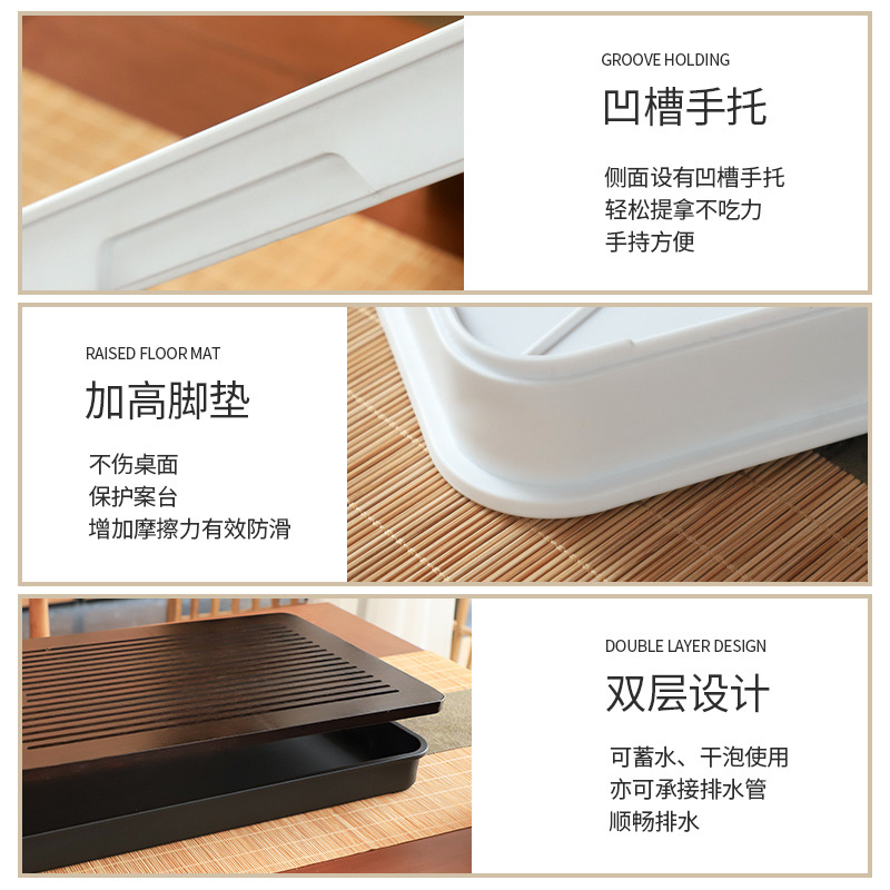 茶盘家用沥水盘密胺茶托盘简易轻奢小茶盘工厂批发排水式干泡台