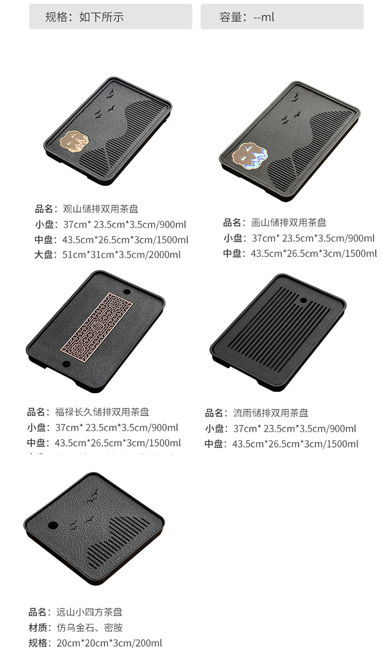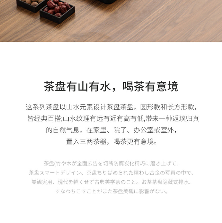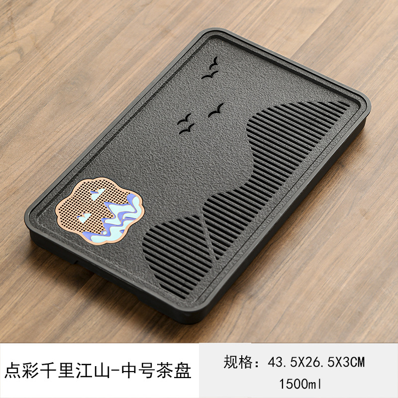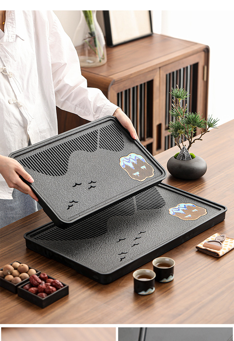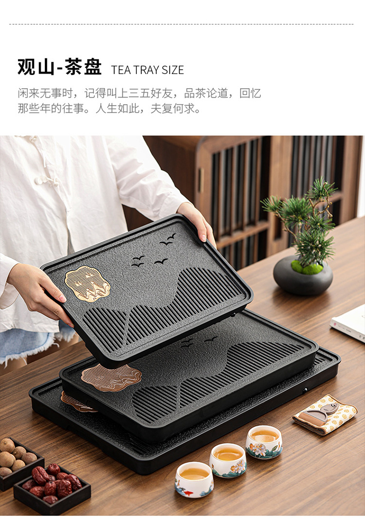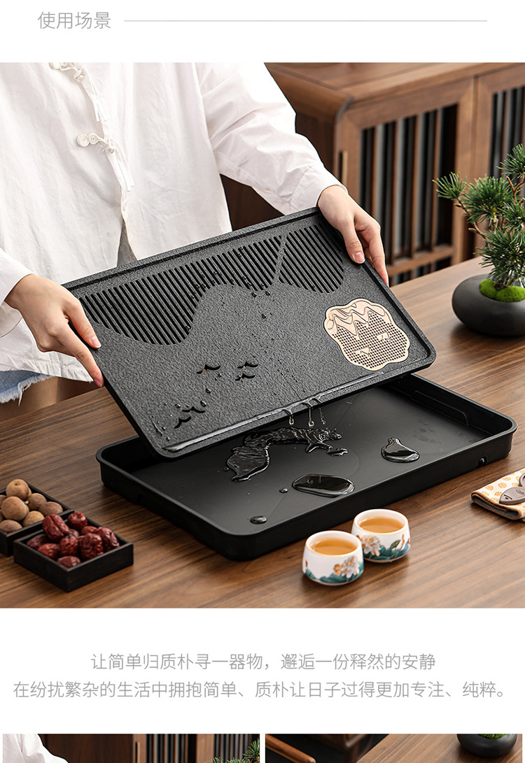 2024新款乌金磁石茶盘家用简约长方形茶具托盘功夫茶具套装干泡台