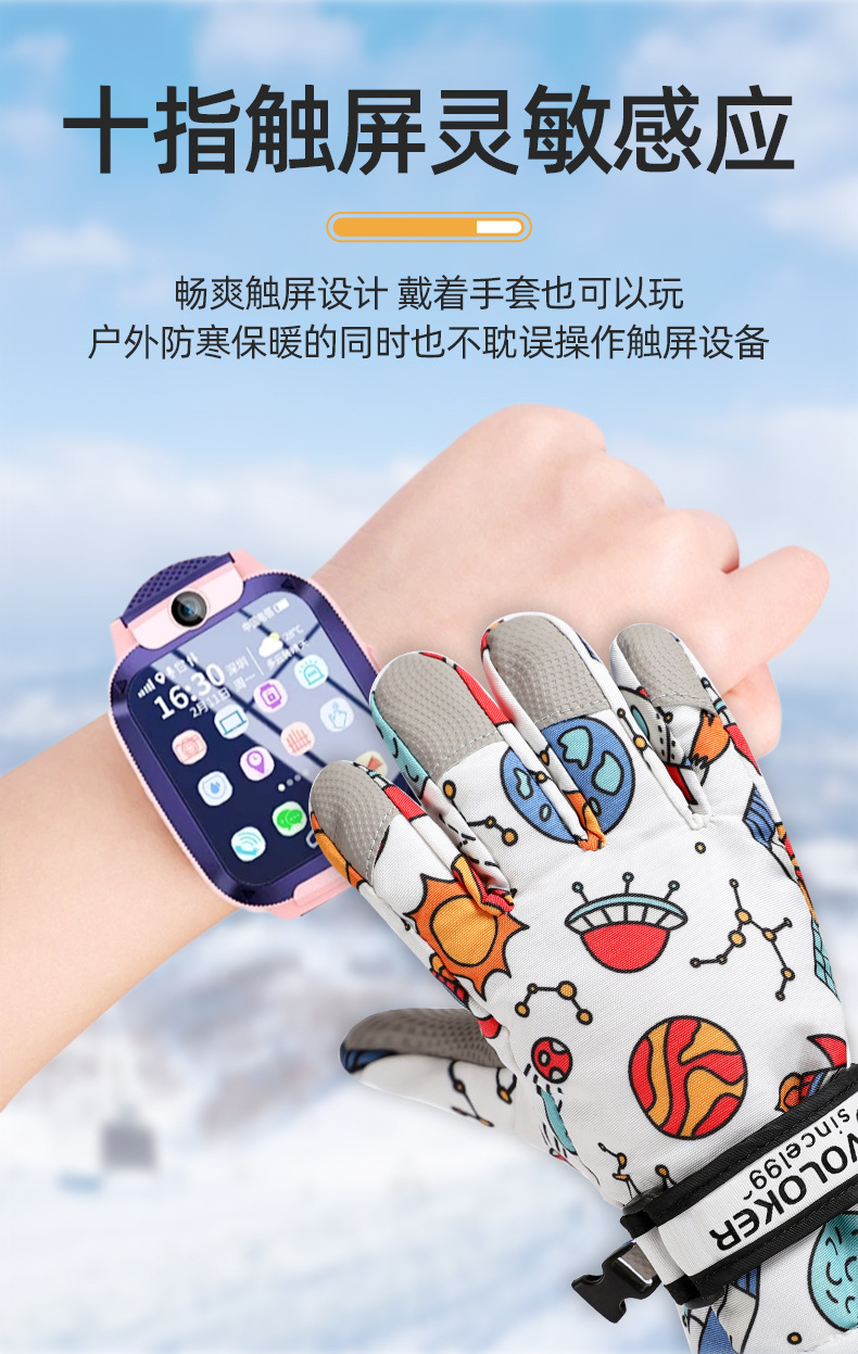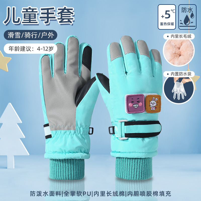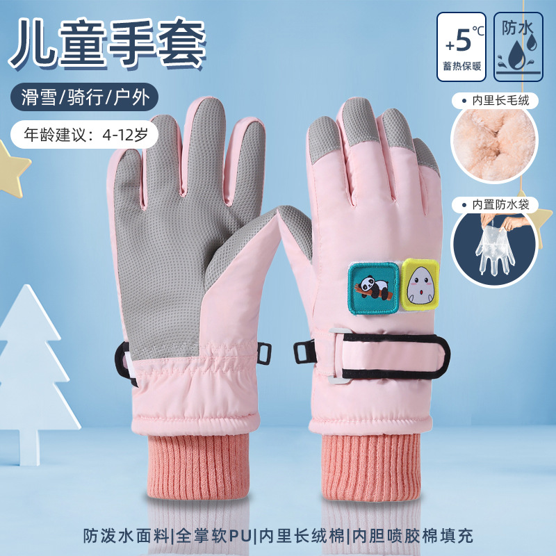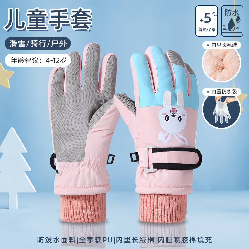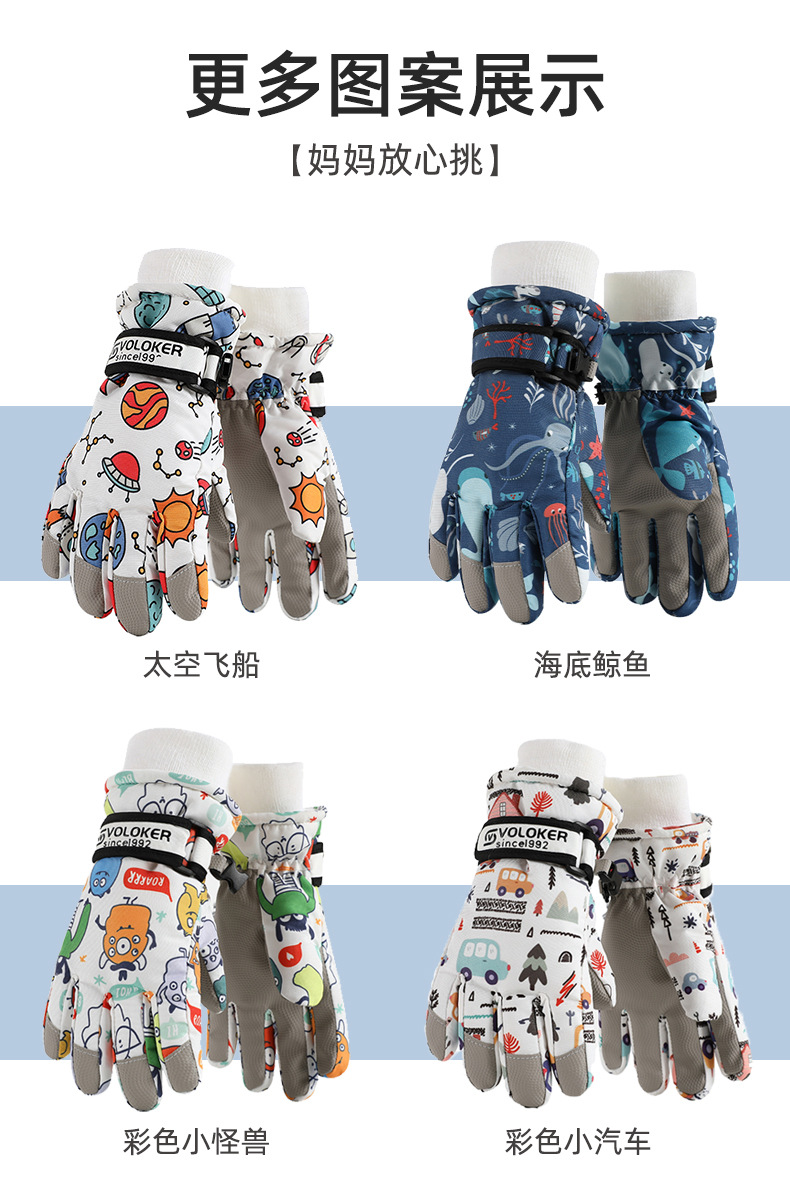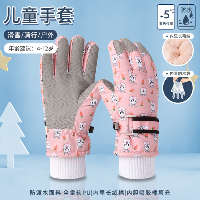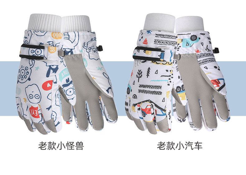 儿童手套滑雪手套卡通保暖手套加绒防寒防水冬季儿童骑行手套全指