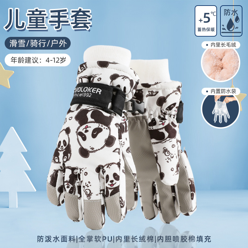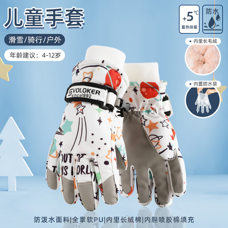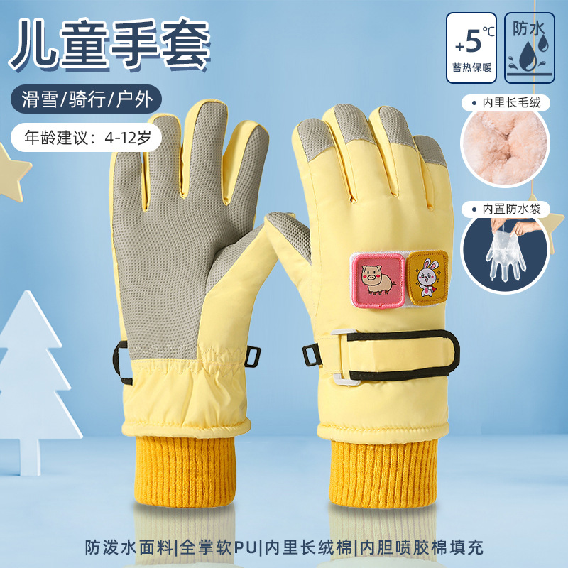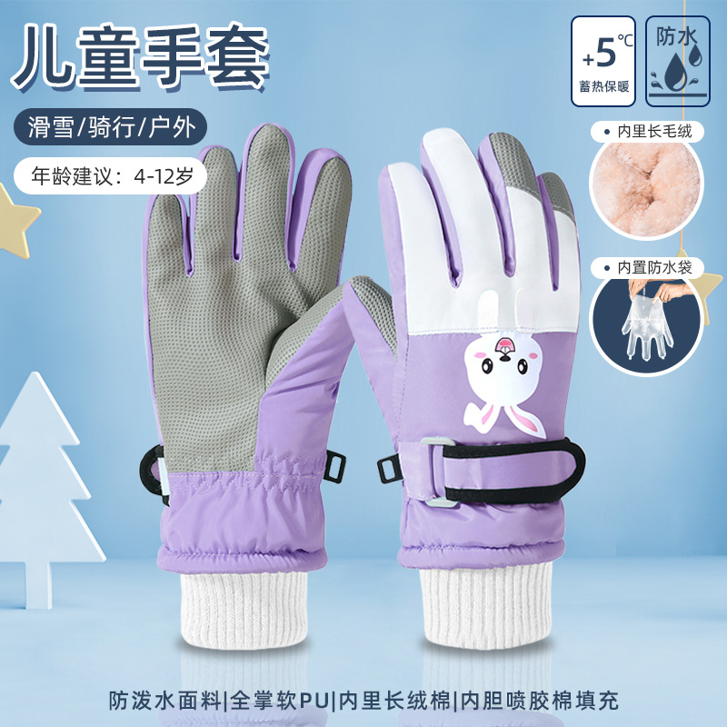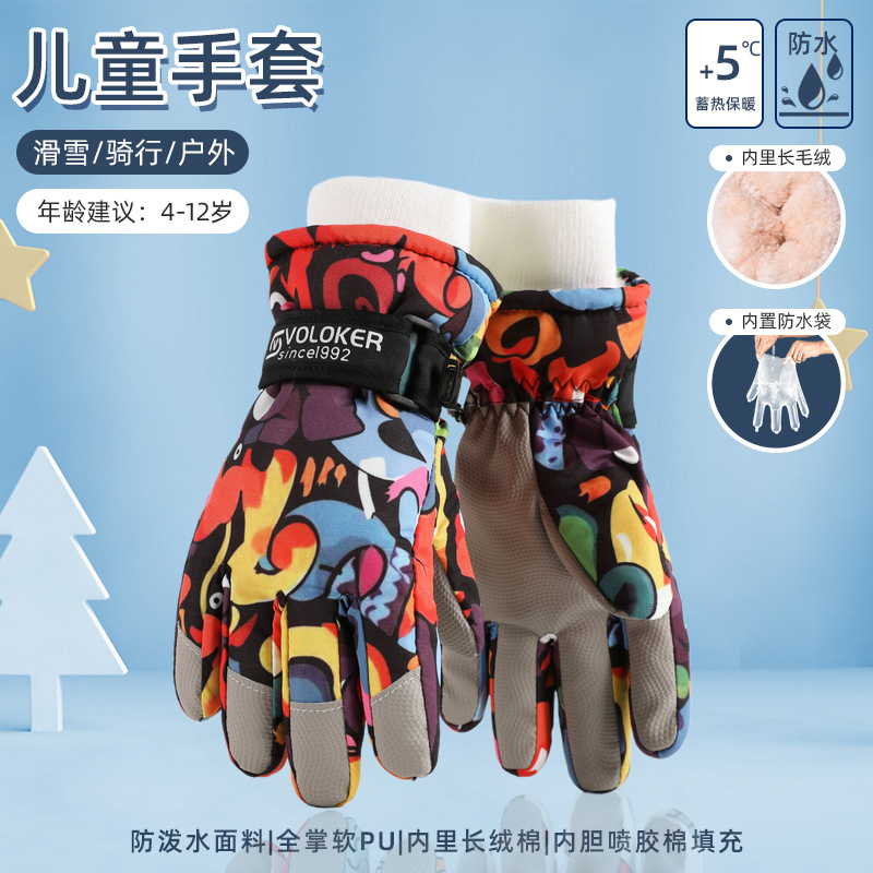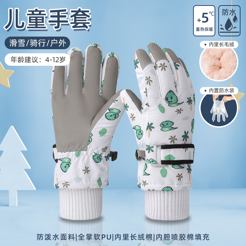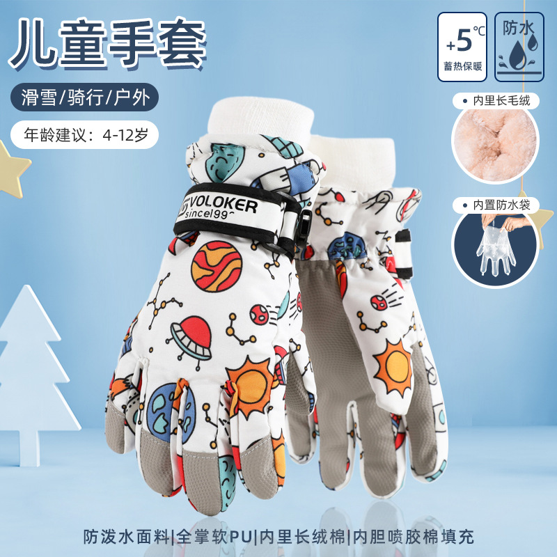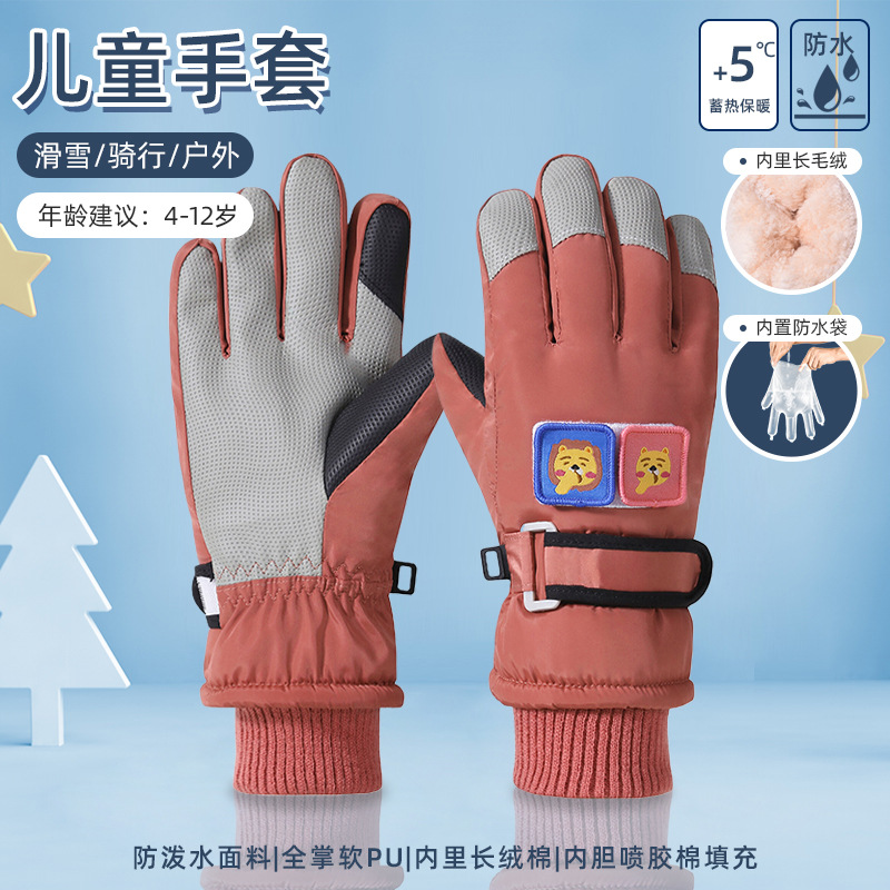 儿童手套滑雪手套卡通保暖手套加绒防寒防水冬季儿童骑行手套全指