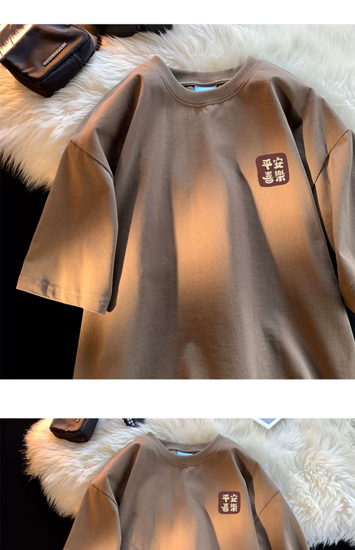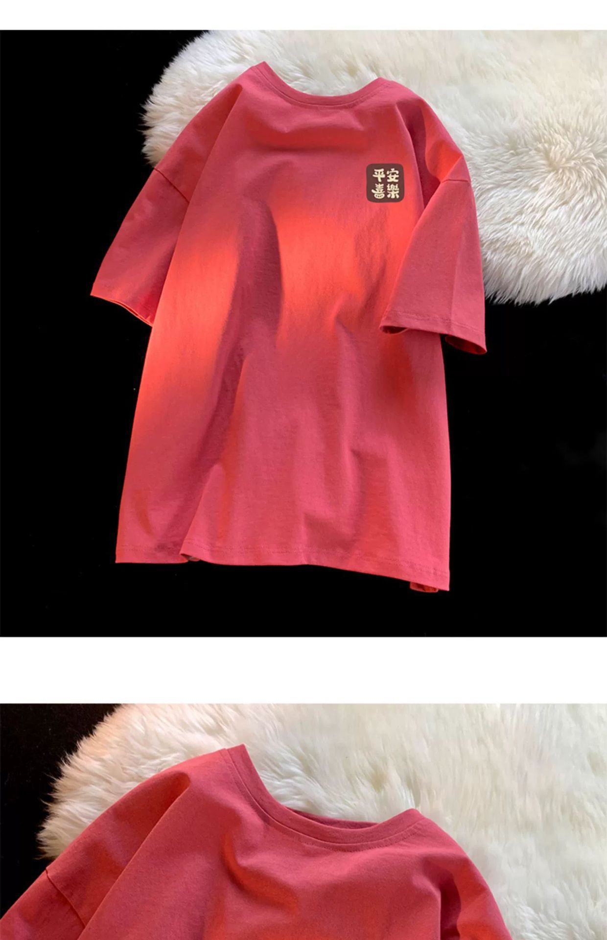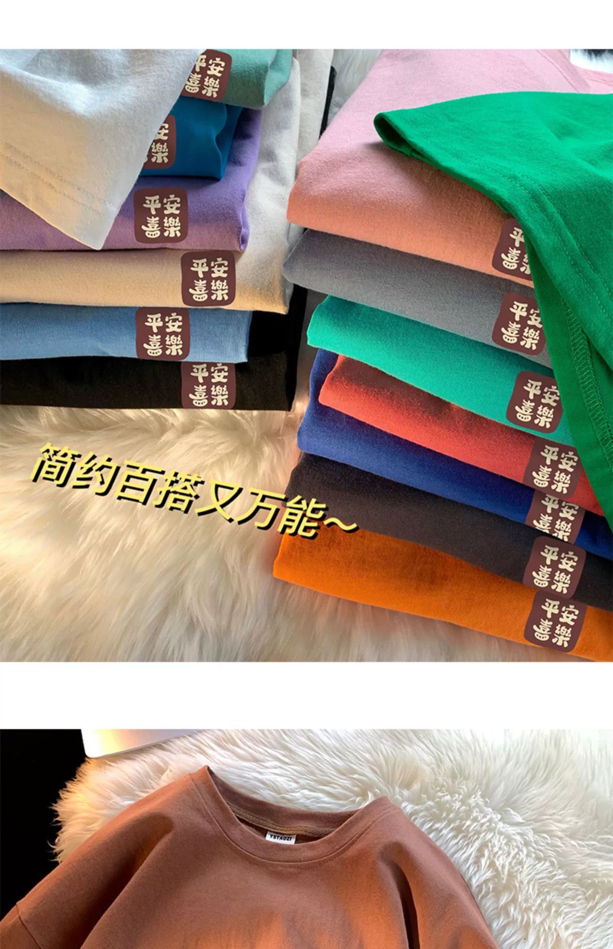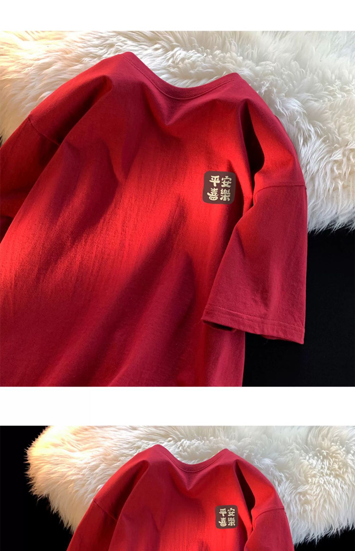 酒红色220g重磅t恤男潮牌夏季纯棉平安喜乐短袖美式复古高街半袖