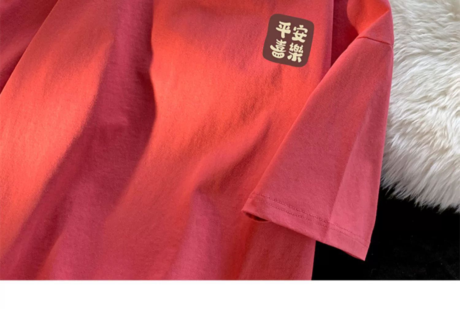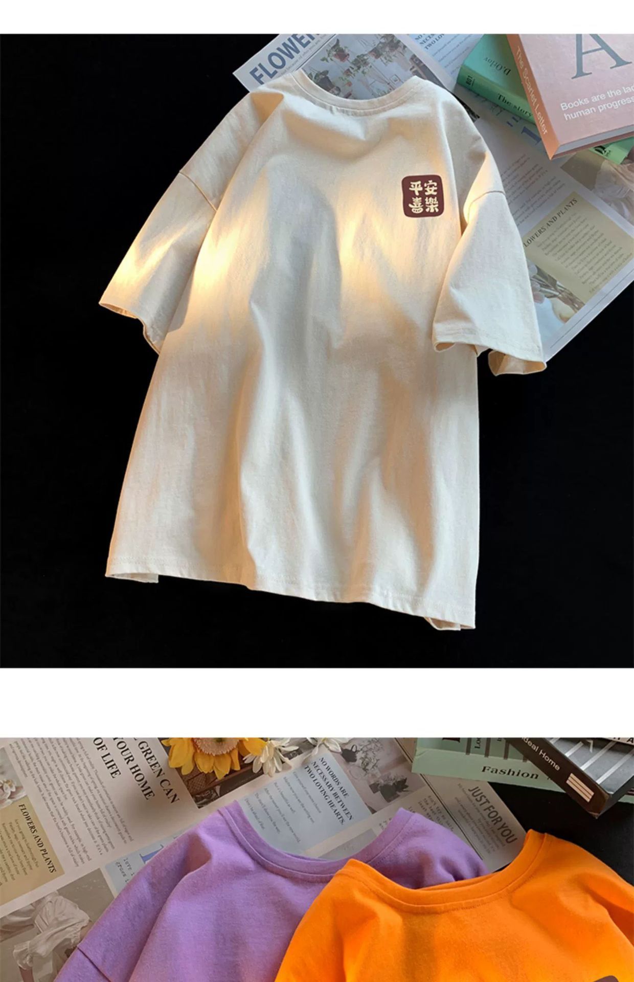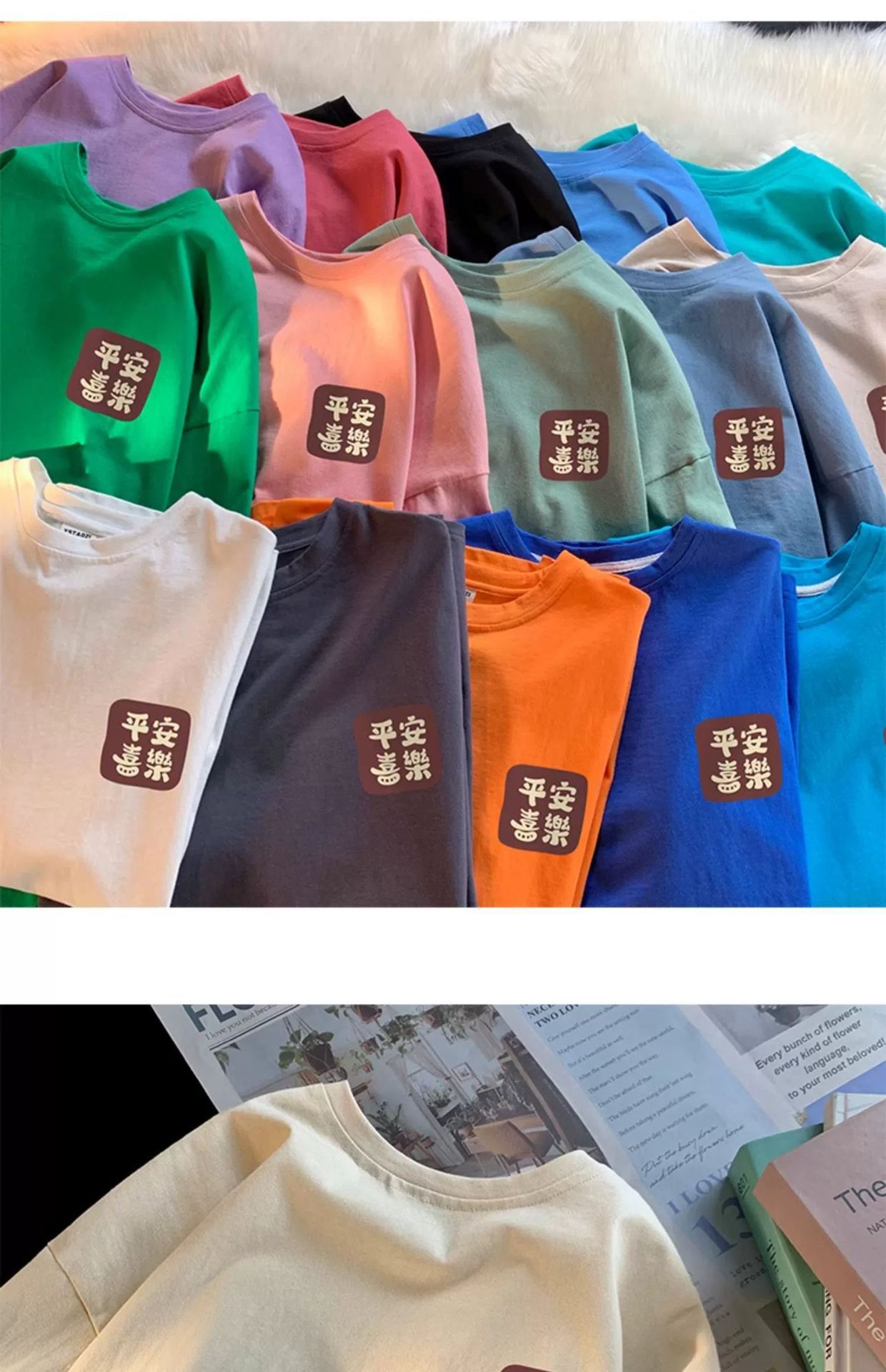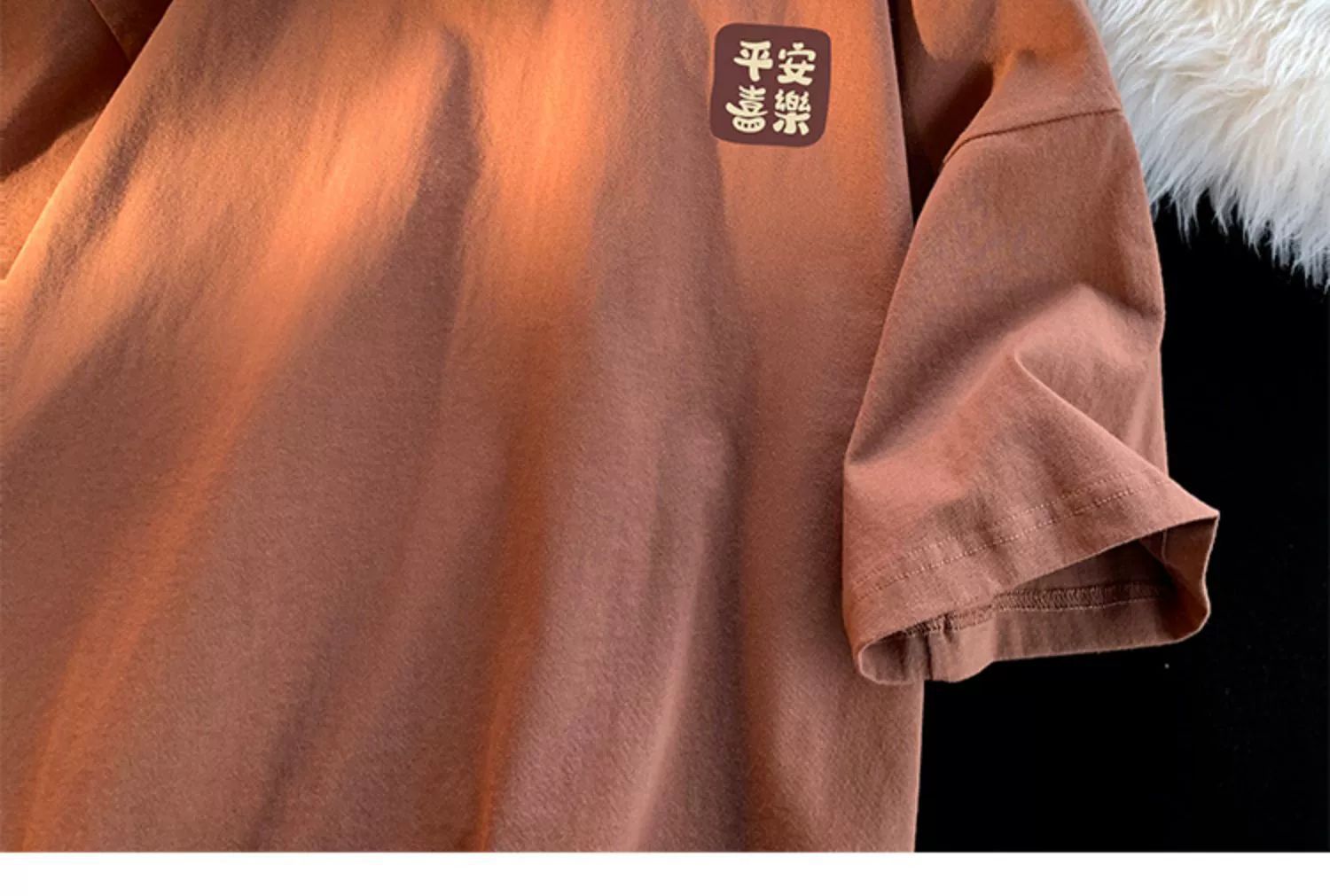 酒红色220g重磅t恤男潮牌夏季纯棉平安喜乐短袖美式复古高街半袖